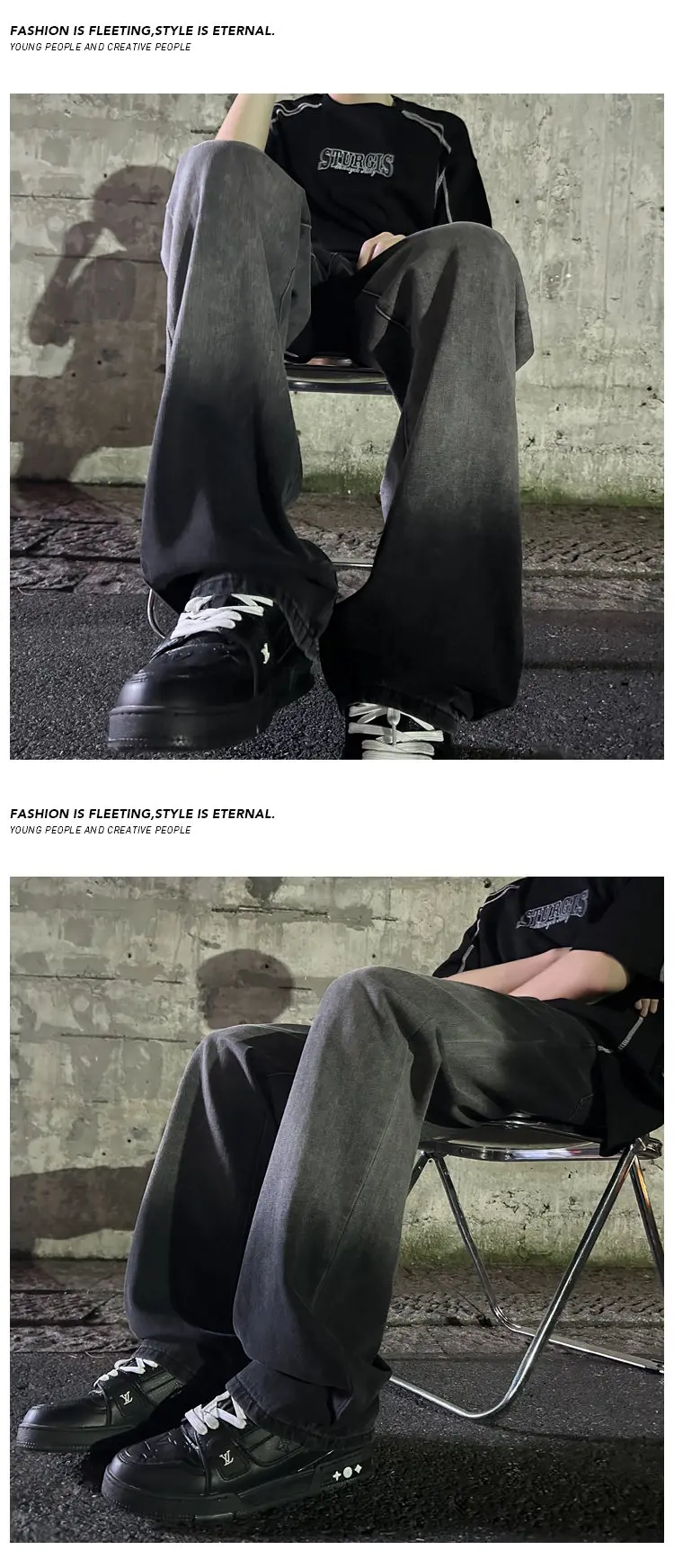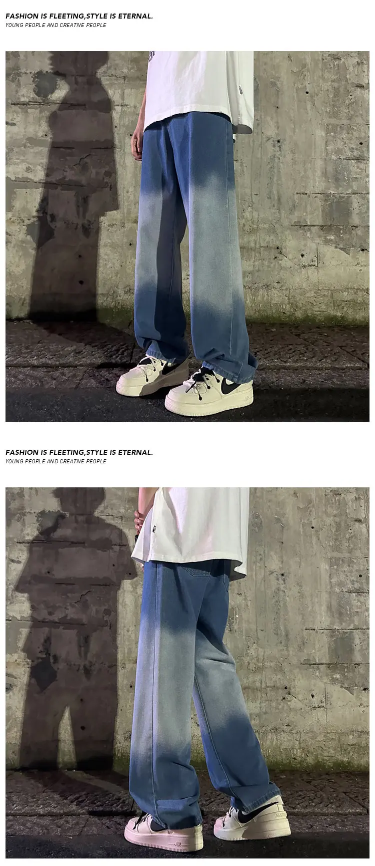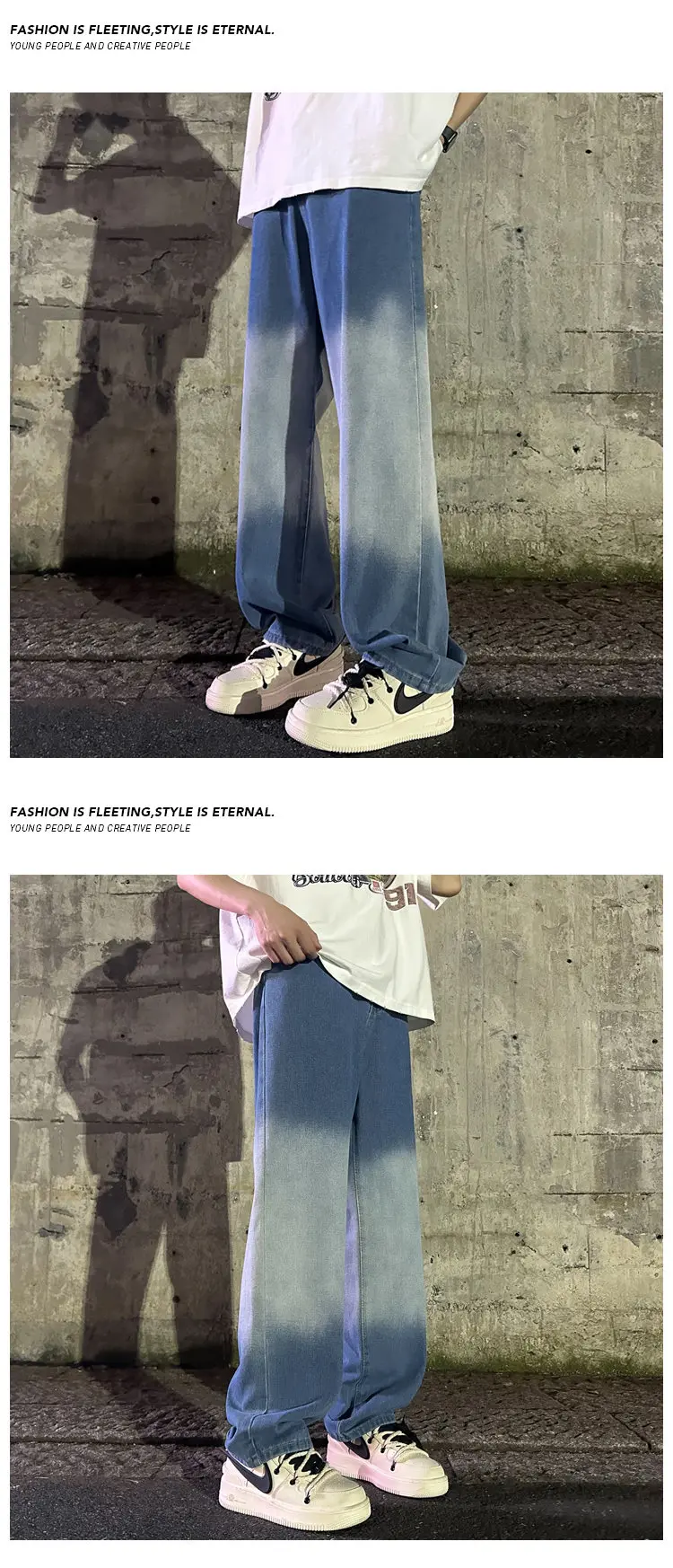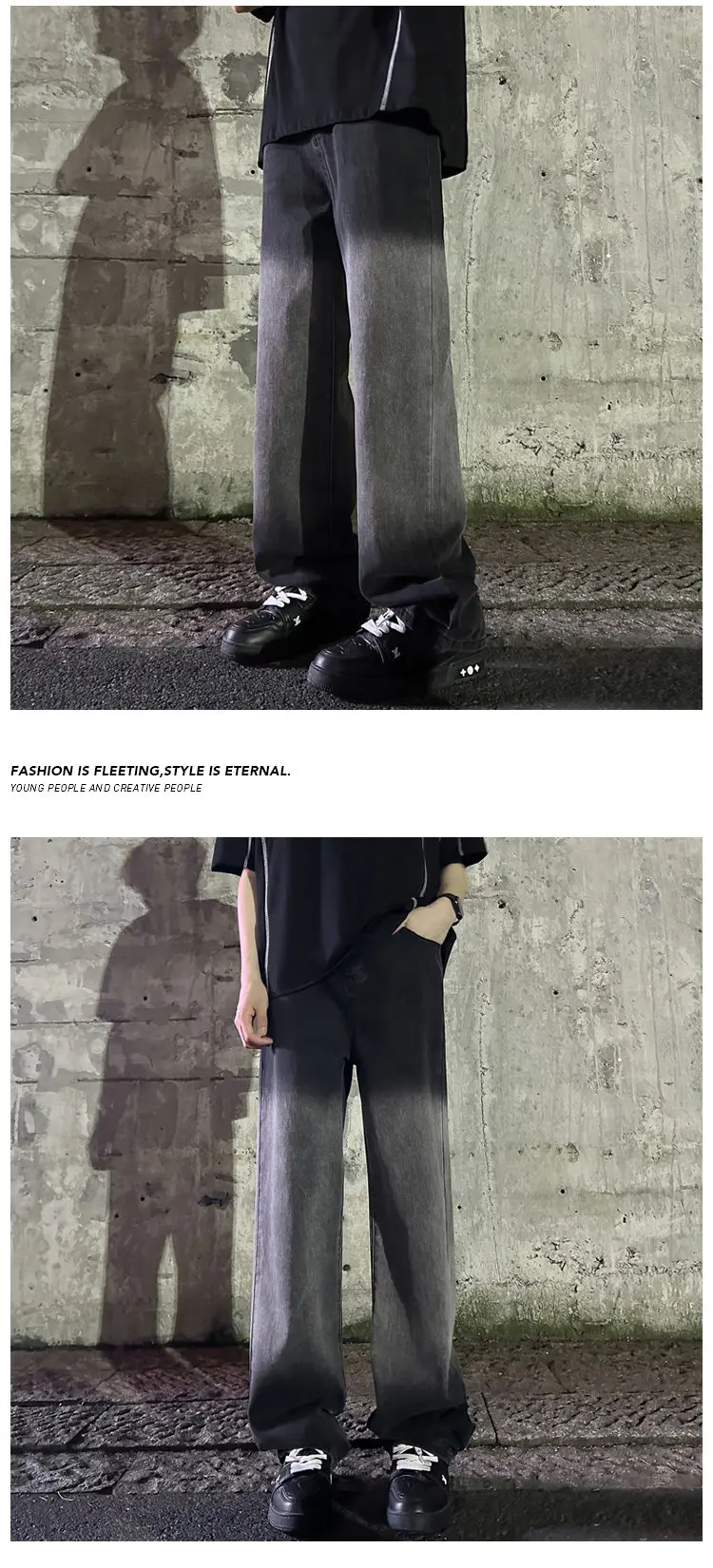 Hearujoy Blue Black Baggy Jeans Men Fashion Retro Wide Leg Jeans Men Streetwear Hip-hop Loose Gradient Jeans Mens Denim Trousers M-3XL