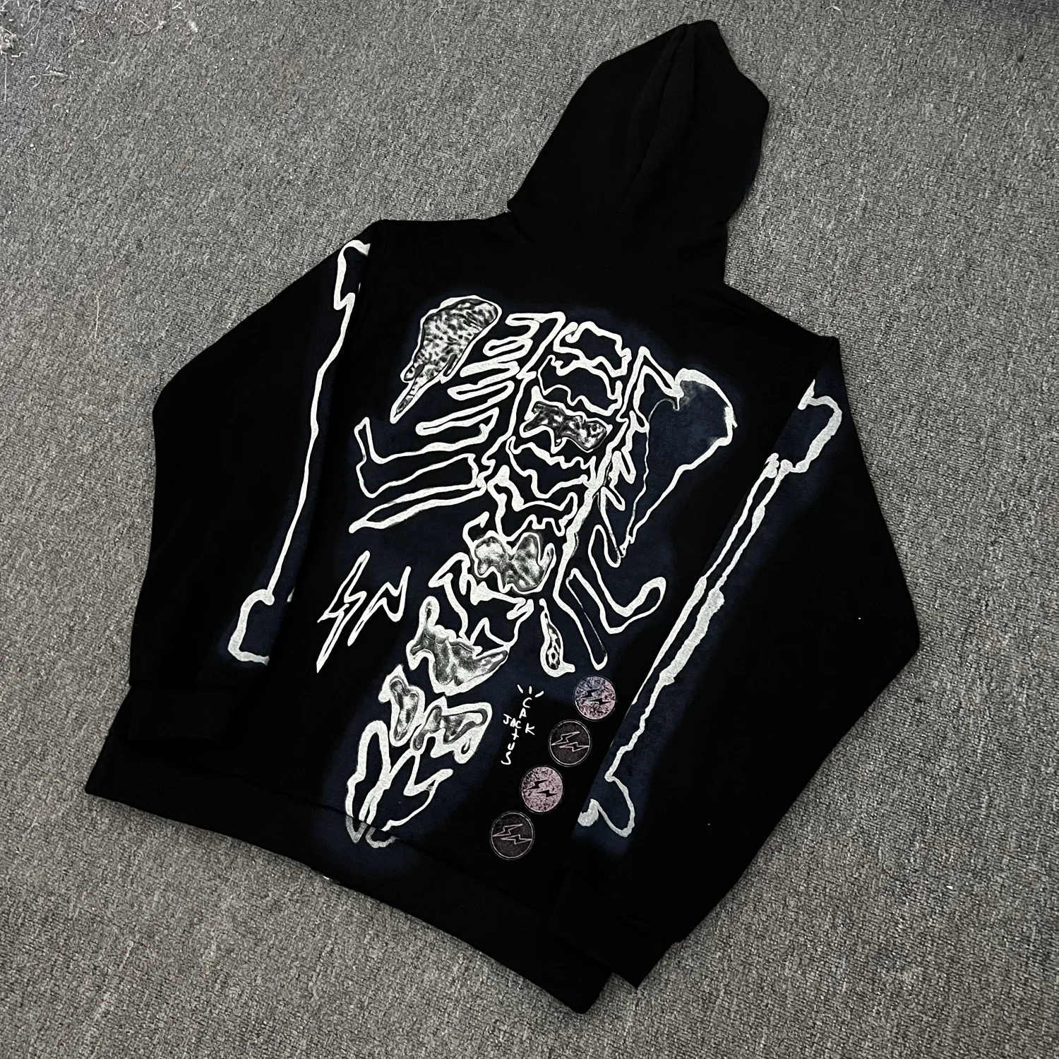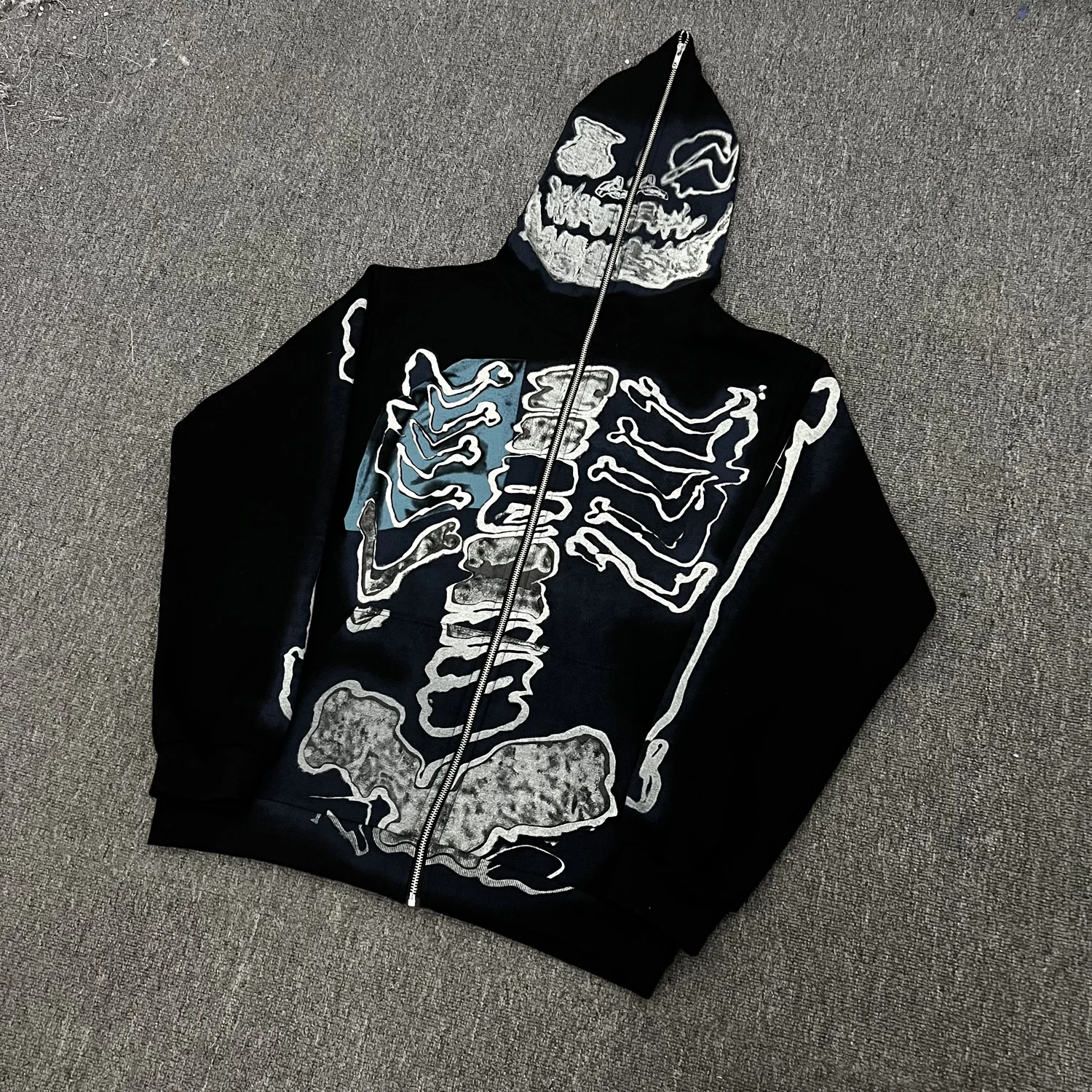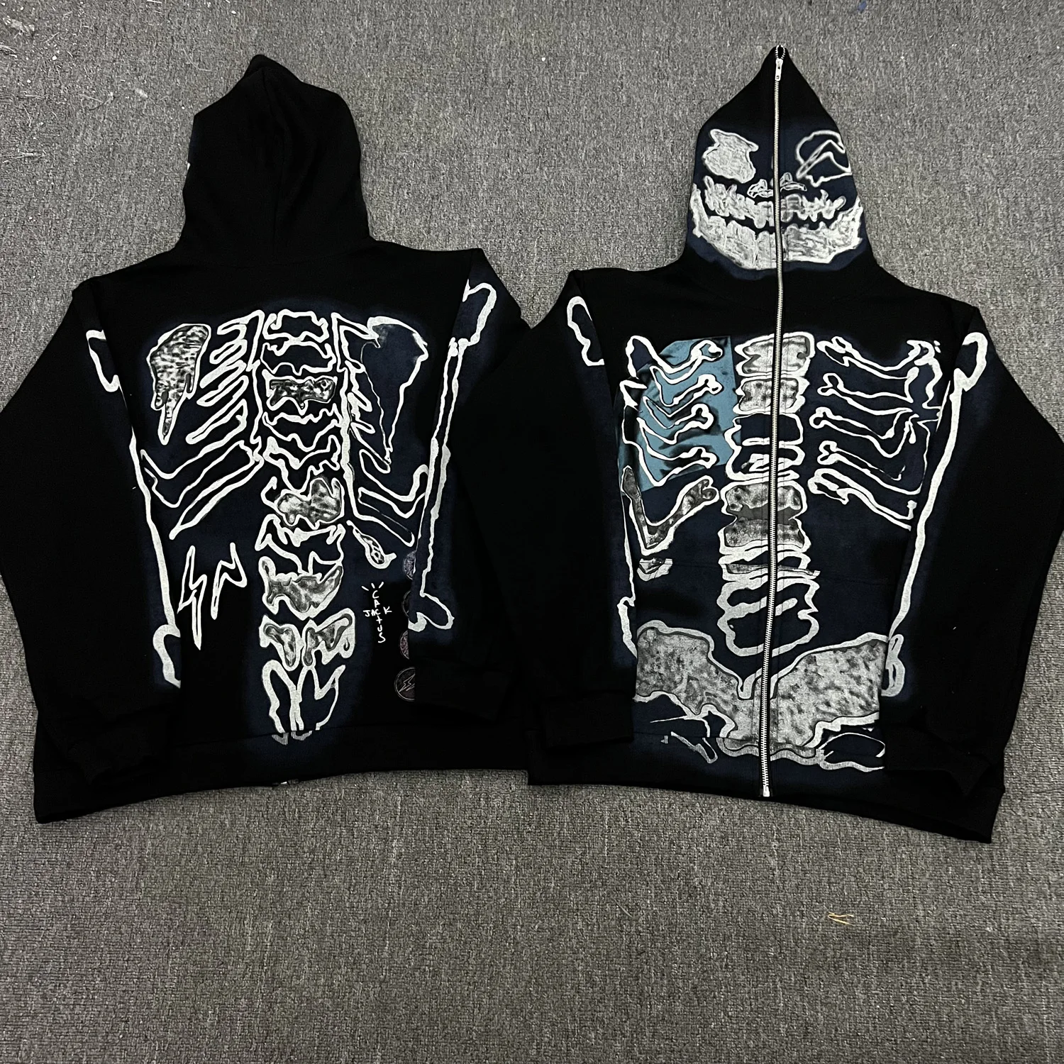 Hearujoy Cactus Jack Fashion Skull Skeleton Hoodie Zip Up Plush Hoodie Cardigan Kanye Oversized Zipper Hoodies Y2k Men Black Clothes
