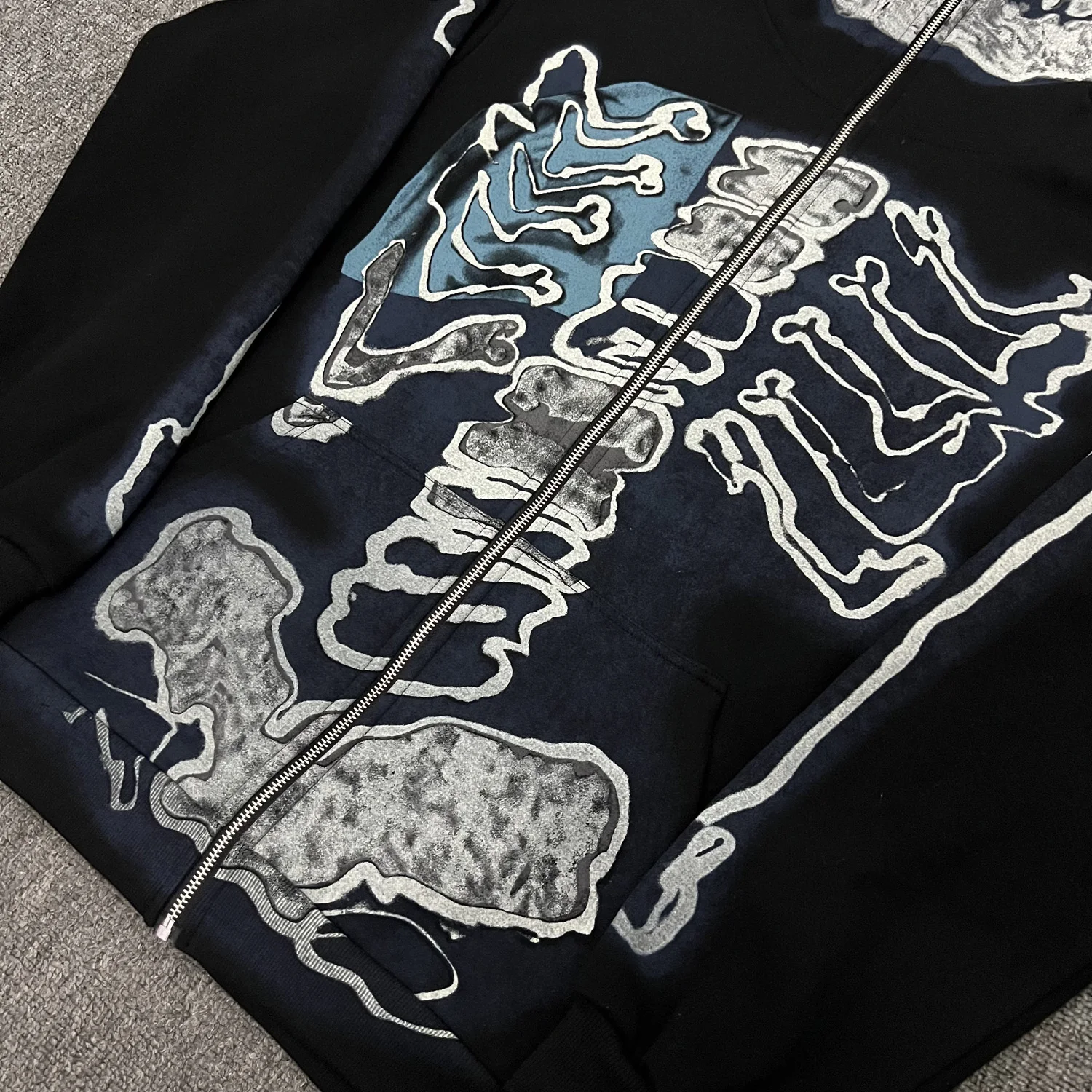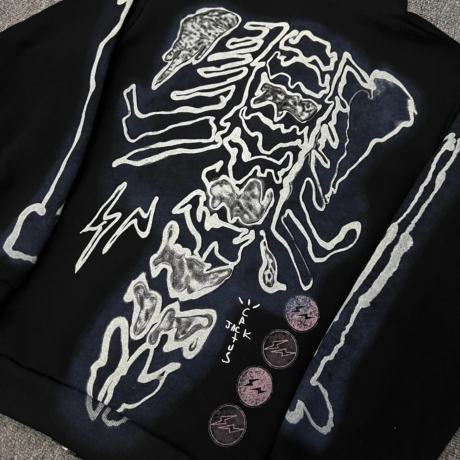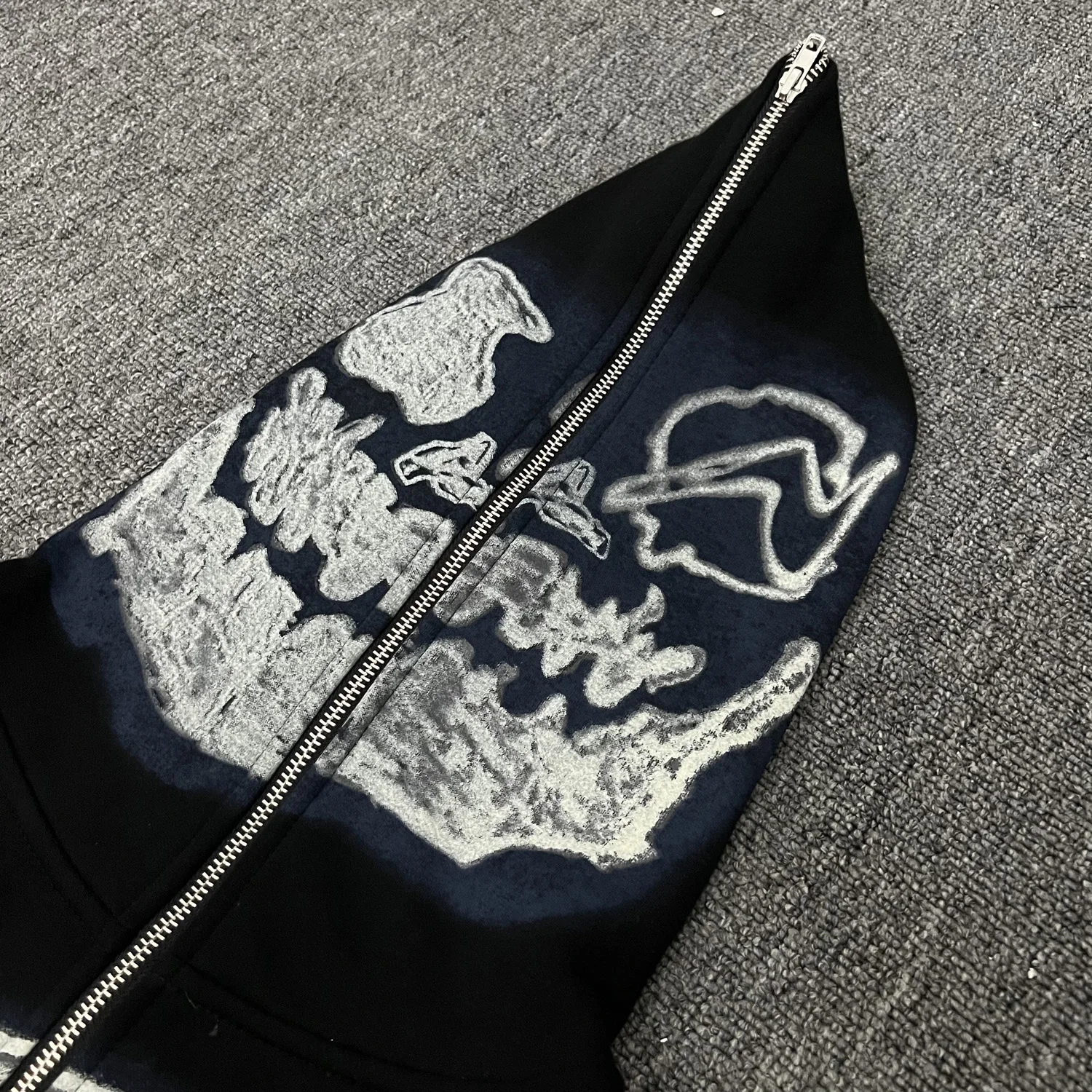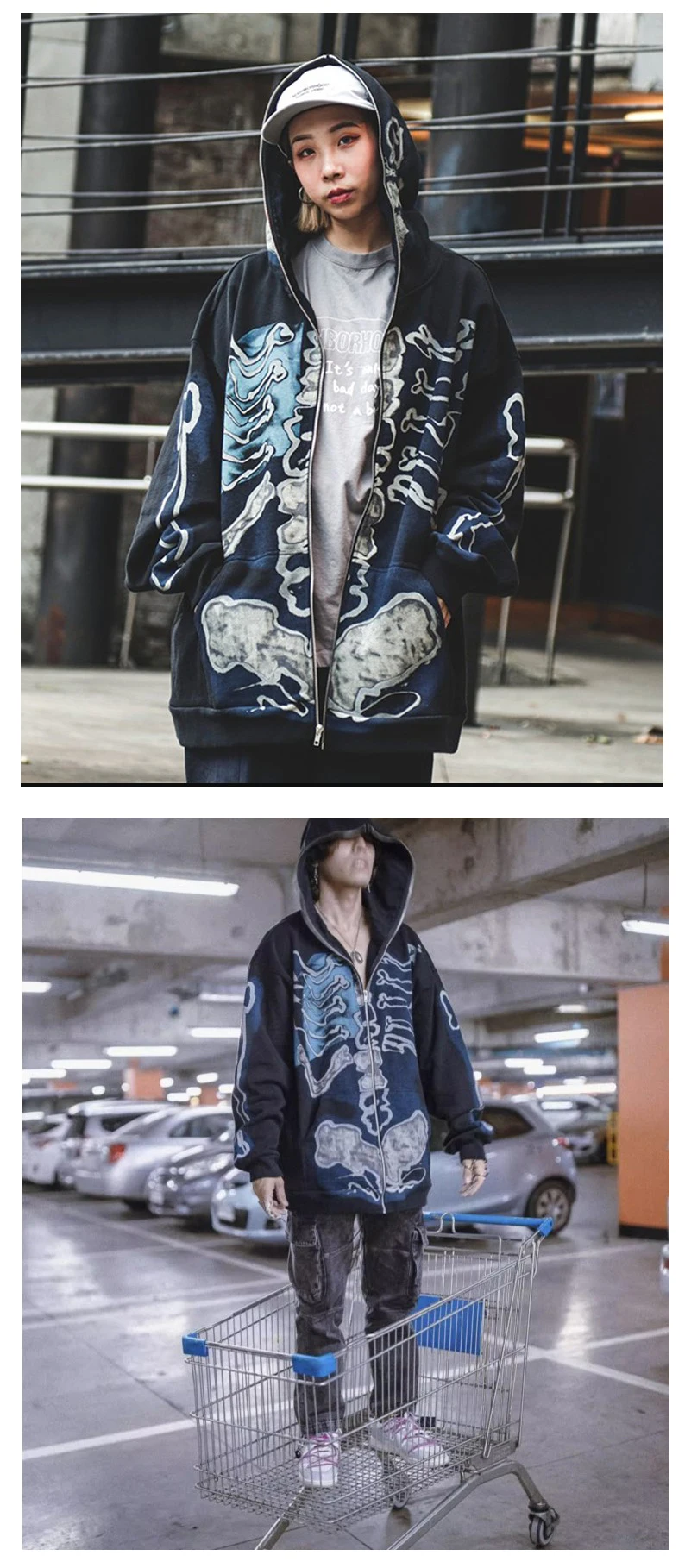 Hearujoy Cactus Jack Fashion Skull Skeleton Hoodie Zip Up Plush Hoodie Cardigan Kanye Oversized Zipper Hoodies Y2k Men Black Clothes