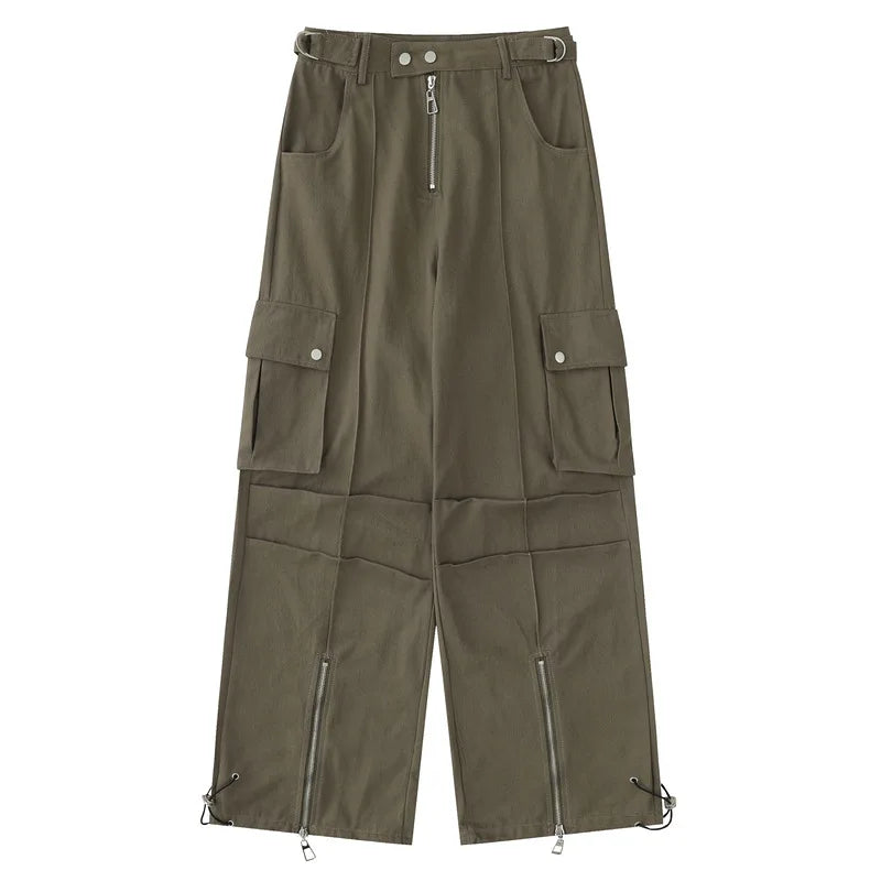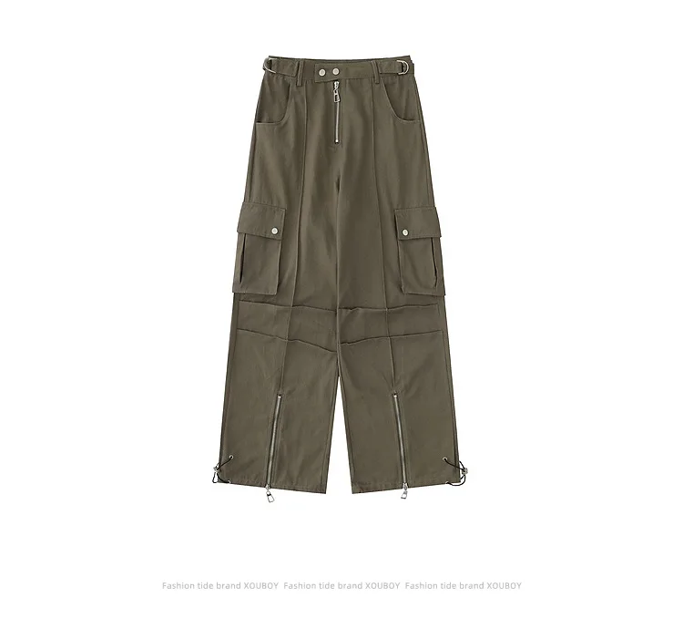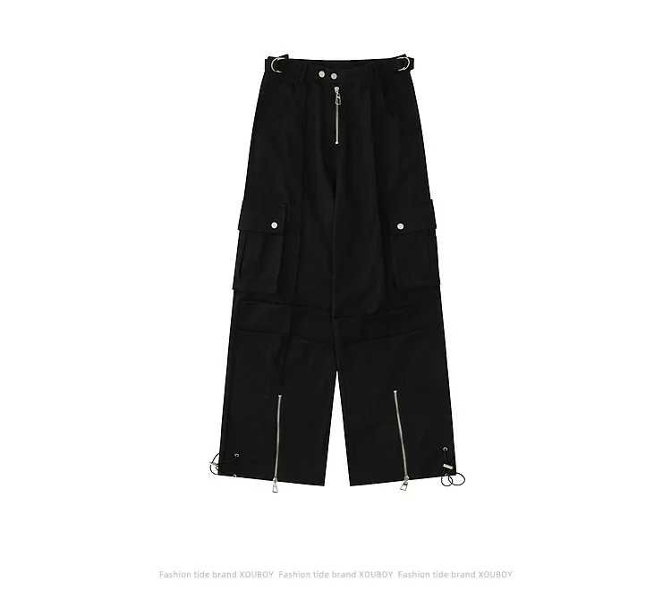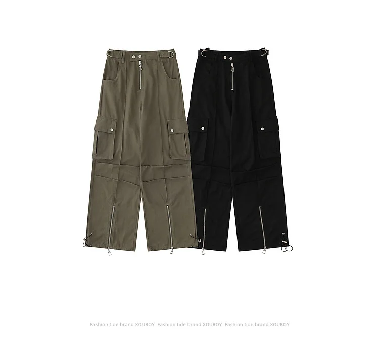 Hearujoy Cargo Pants Men Hip Hop Zipper Wide Leg Trousers Male Japanese Oversize Outdoor Loose Casual Bottom Streetwear Pocket