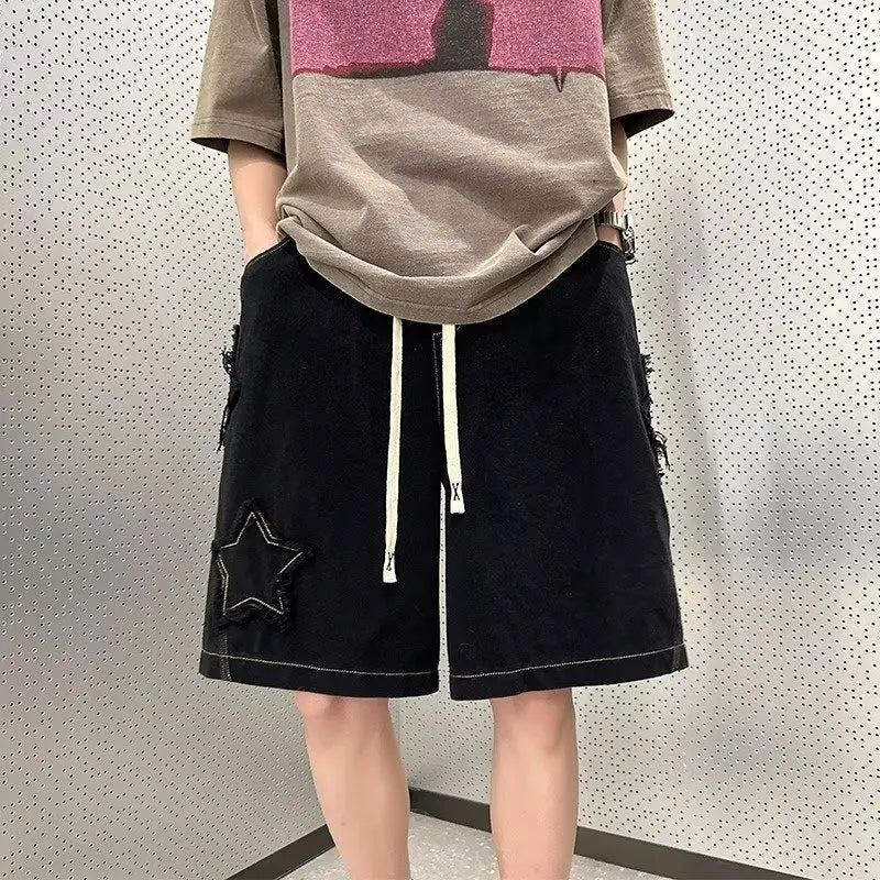 Hearujoy Cargo Shorts Men's Retro Denim Summer Basic Style Simple And Versatile Hot Selling High Waist Casual Street Fashion Chic Shorts