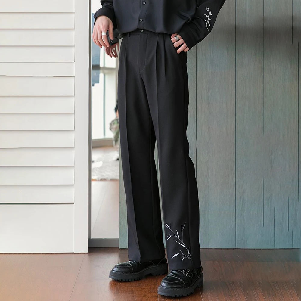 Hearujoy Casual Loose Straight Trousers Leisure High Waist Men Long Pants 2024 Retro Trend Thin Embroidered LGBT Suit Trousers Neutral