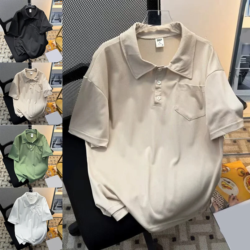 HEARUJOY - Casual Outing 2XL Men Summer T-Shirt Men's Casual Summer Tops Short Sleeve Shirt Casual Fashion Lapel Neckline Regular Length