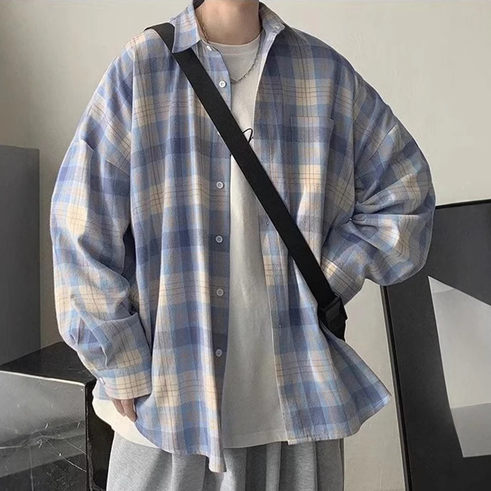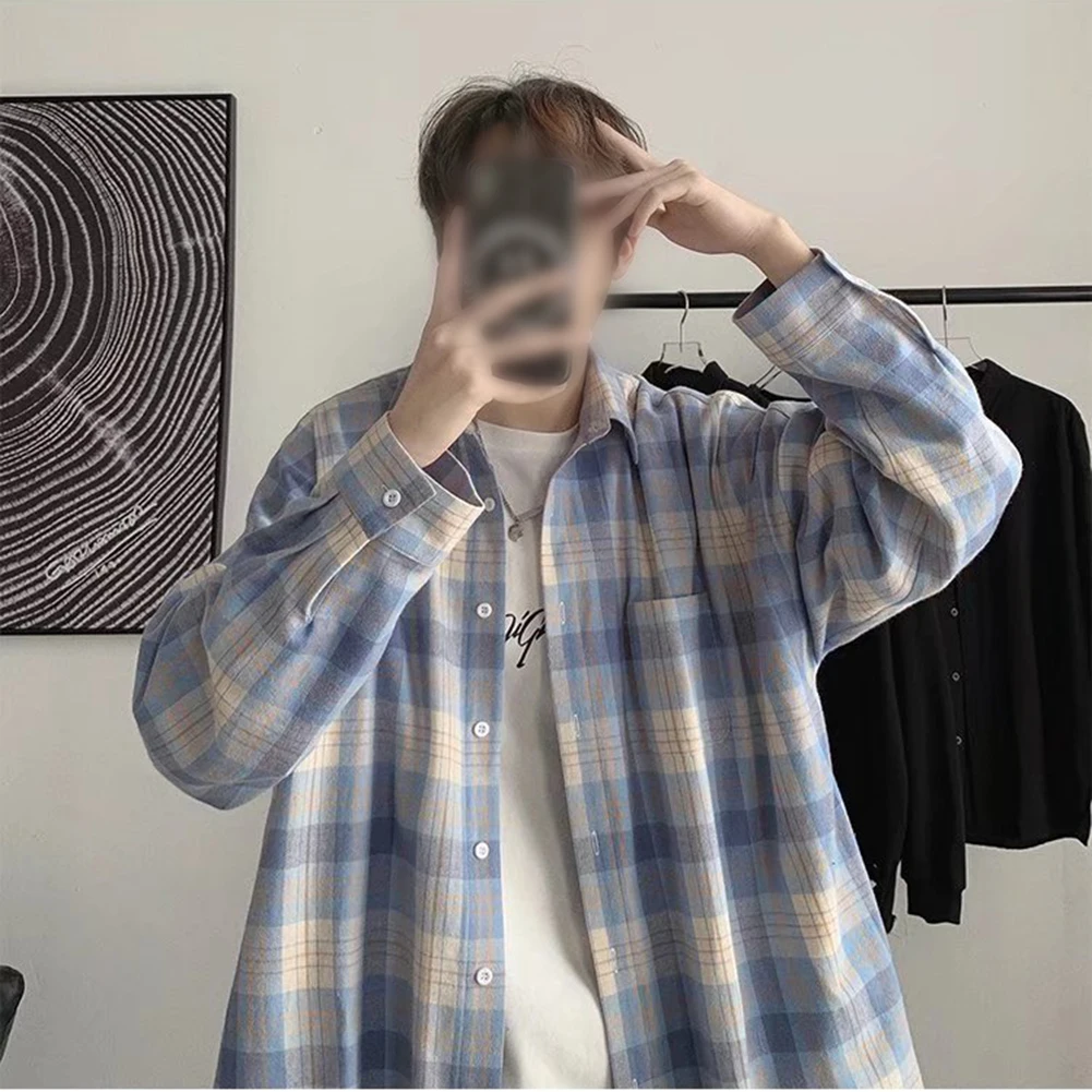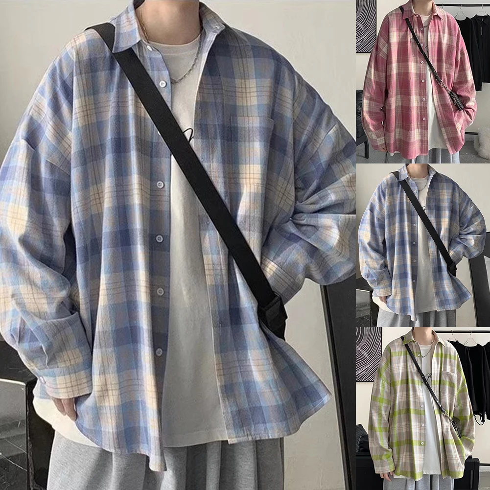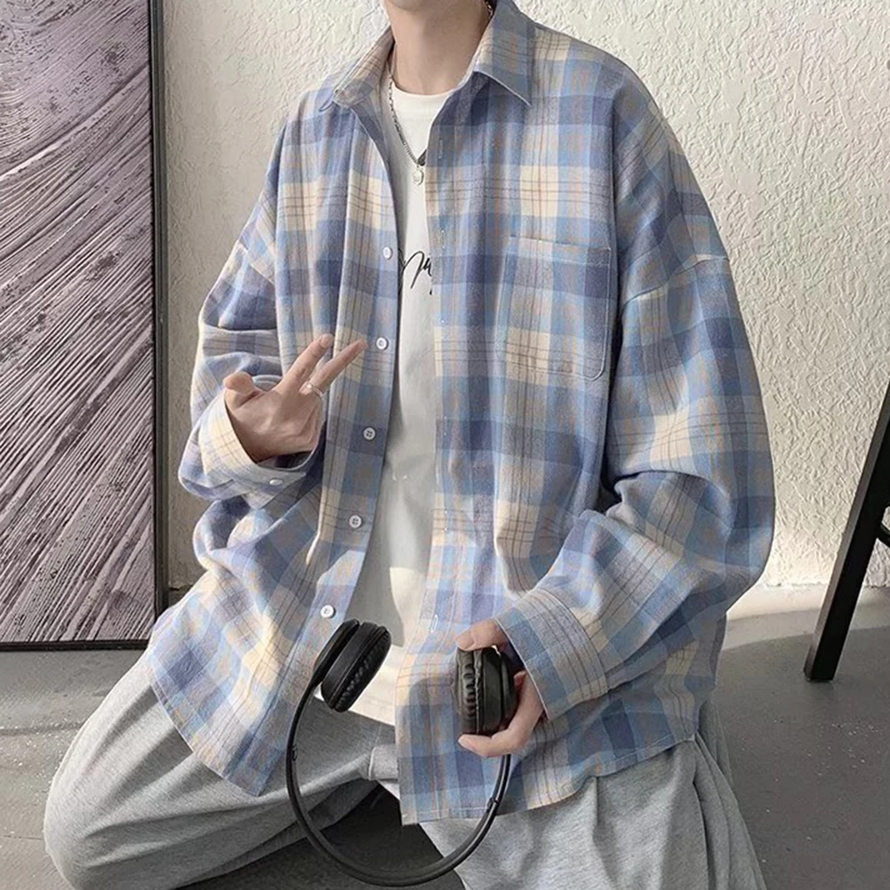 HEARUJOY - Casual Outing XL Blue Plaid Casual Top Men Plaid Long Sleeve Shirt Long Sleeve Casual Style Daily Use Shirt Lapel Neckline