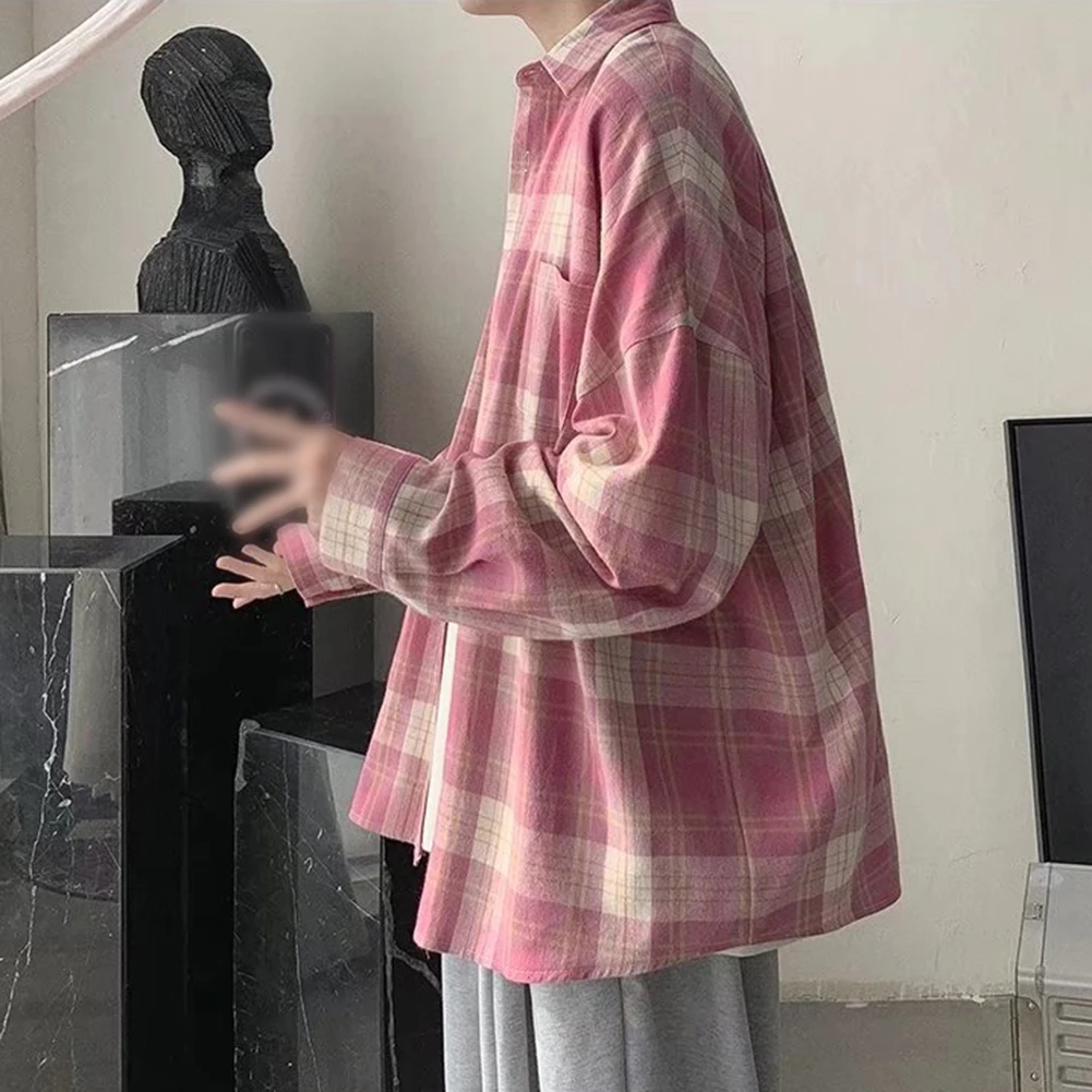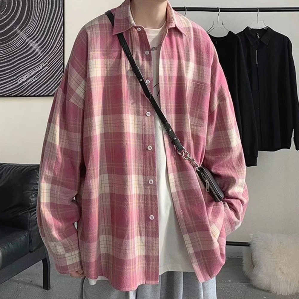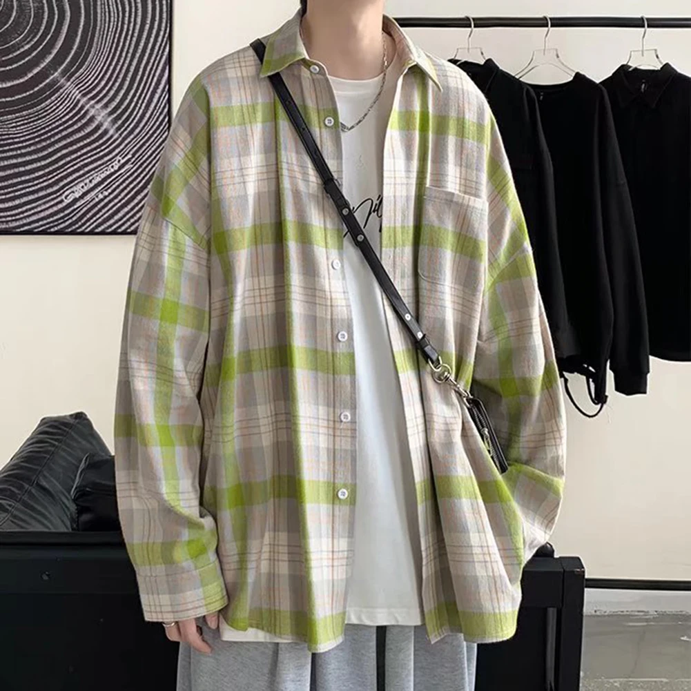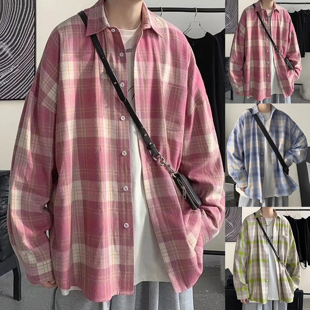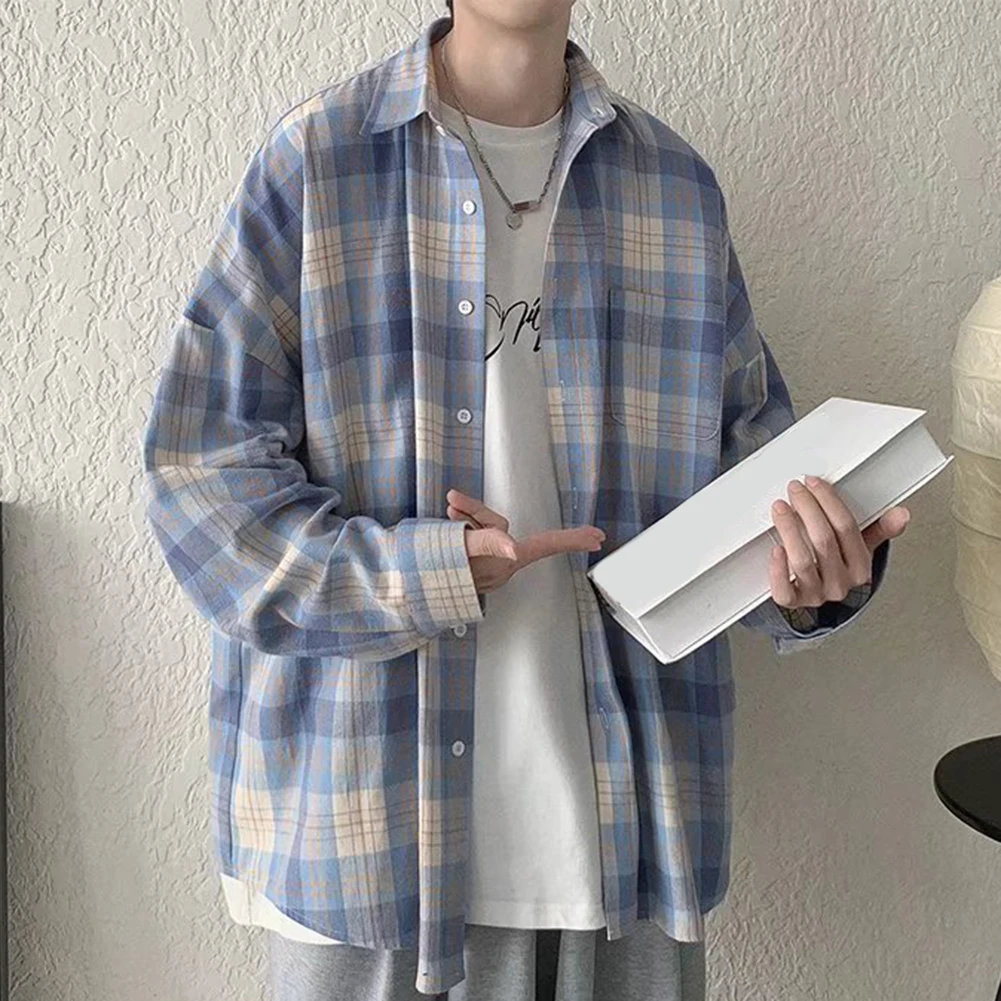 HEARUJOY - Casual Outing XL Blue Plaid Casual Top Men Plaid Long Sleeve Shirt Long Sleeve Casual Style Daily Use Shirt Lapel Neckline