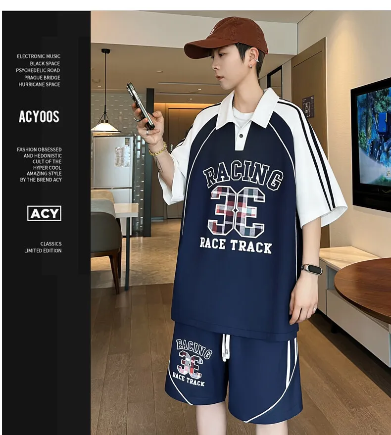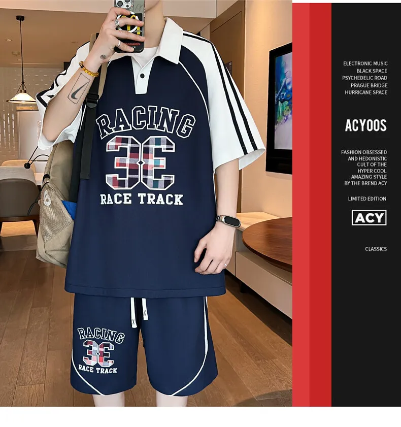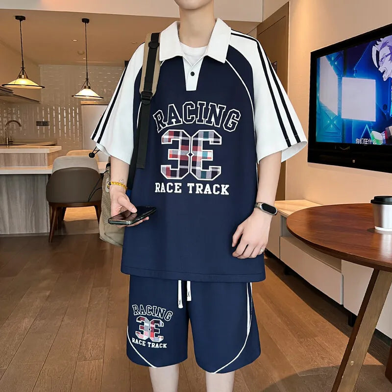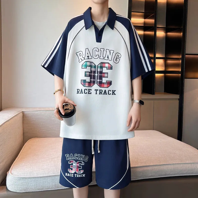 HEARUJOY - Casual Short Sleeved Polos Shorts Men's Sets 2025 Summer Streetwear Tee-Shirt & Pant 2-Piece Tracksuit Outdoor POLO Set