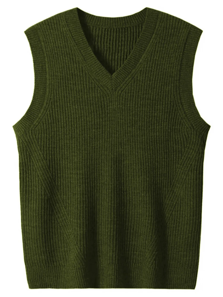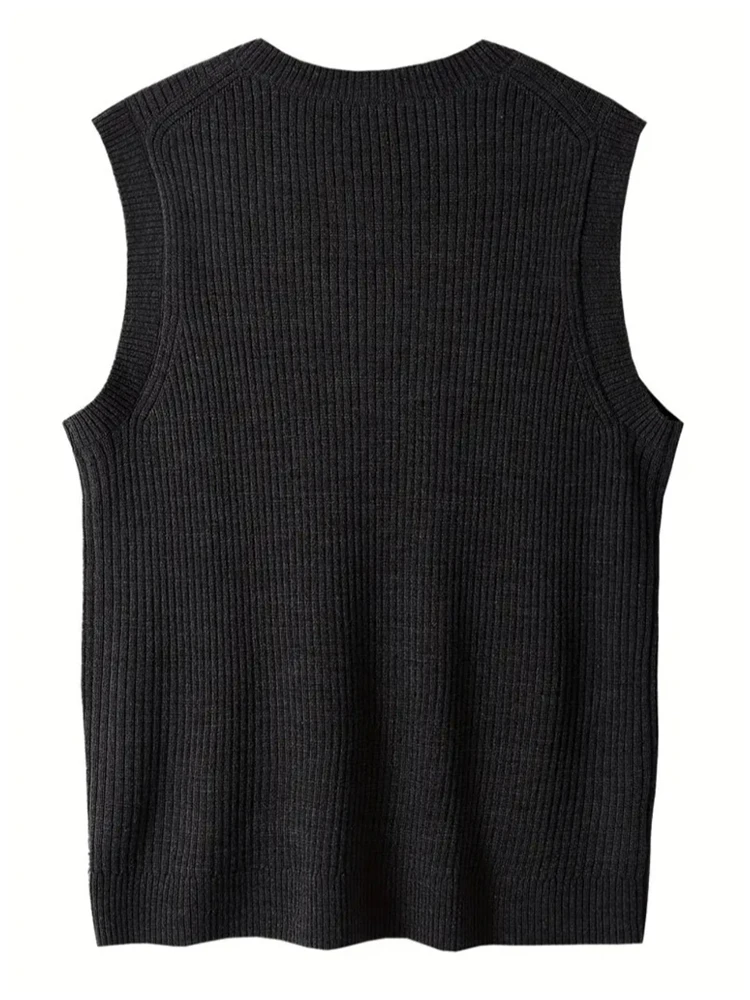 HEARUJOY - Casual Simple Solid Color All-match Knit Vest Mens Autumn Trendy Slim V Neck Tank Tops Men Leisure Sleeveless Knitted Camisoles