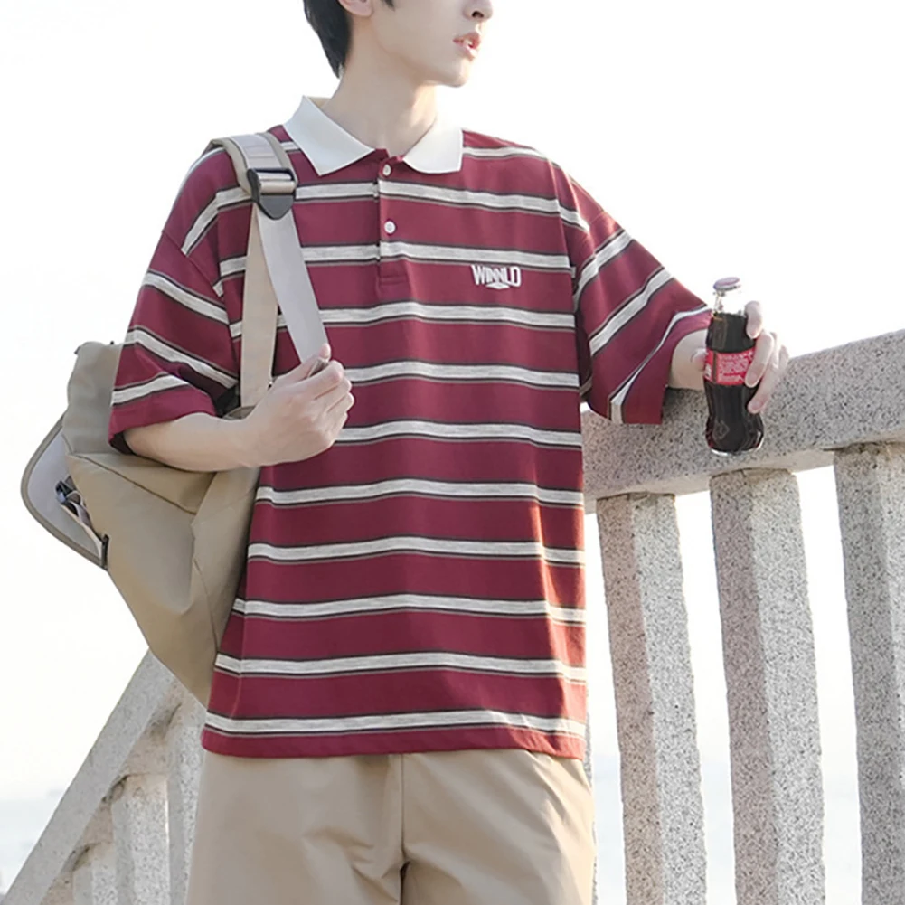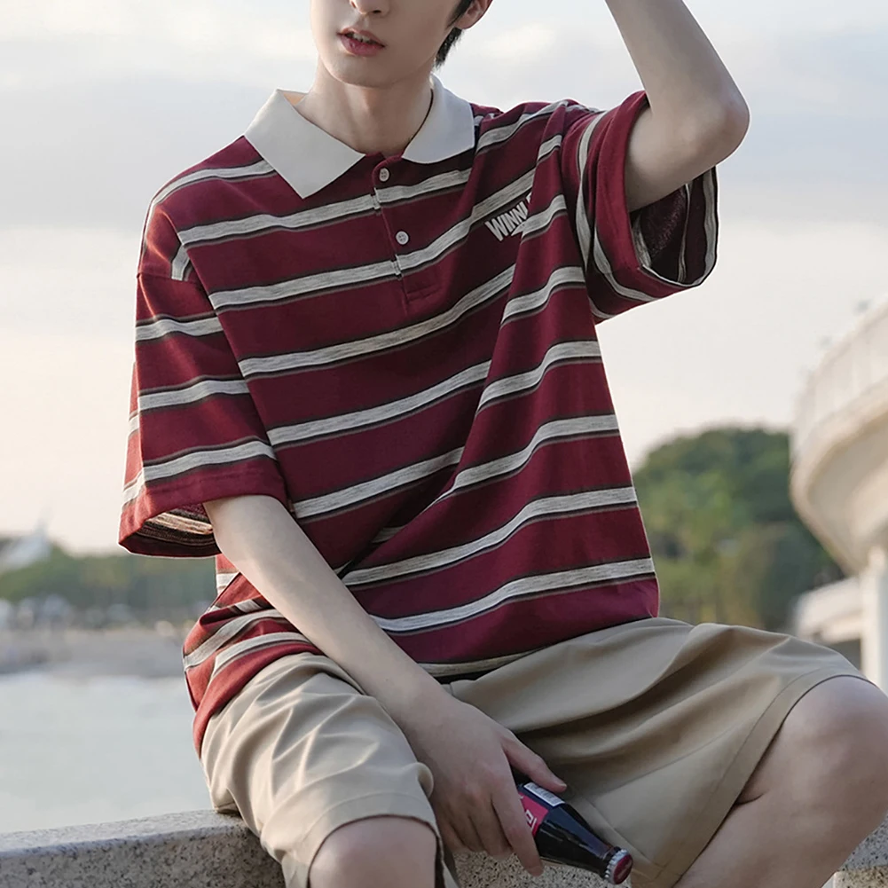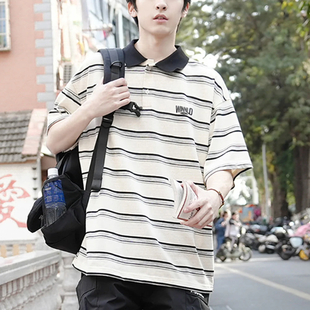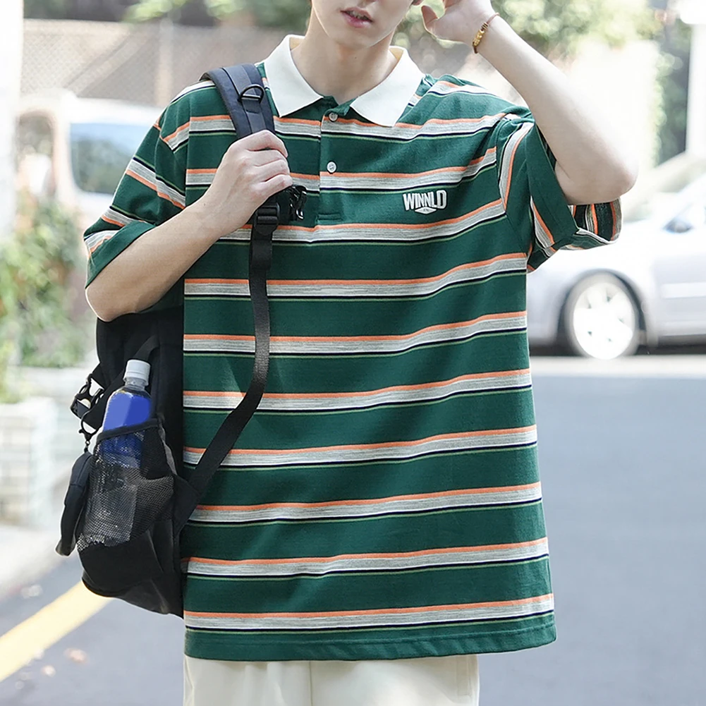 HEARUJOY - Casual Summer 2XL Mens Summer T-Shirts Casual Striped Short Sleeve Shirts Vintage Short Sleeve Tops Lapel Neckline
