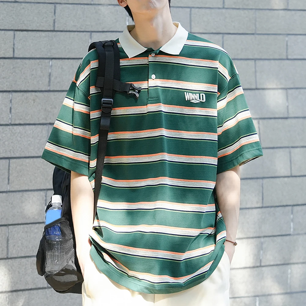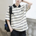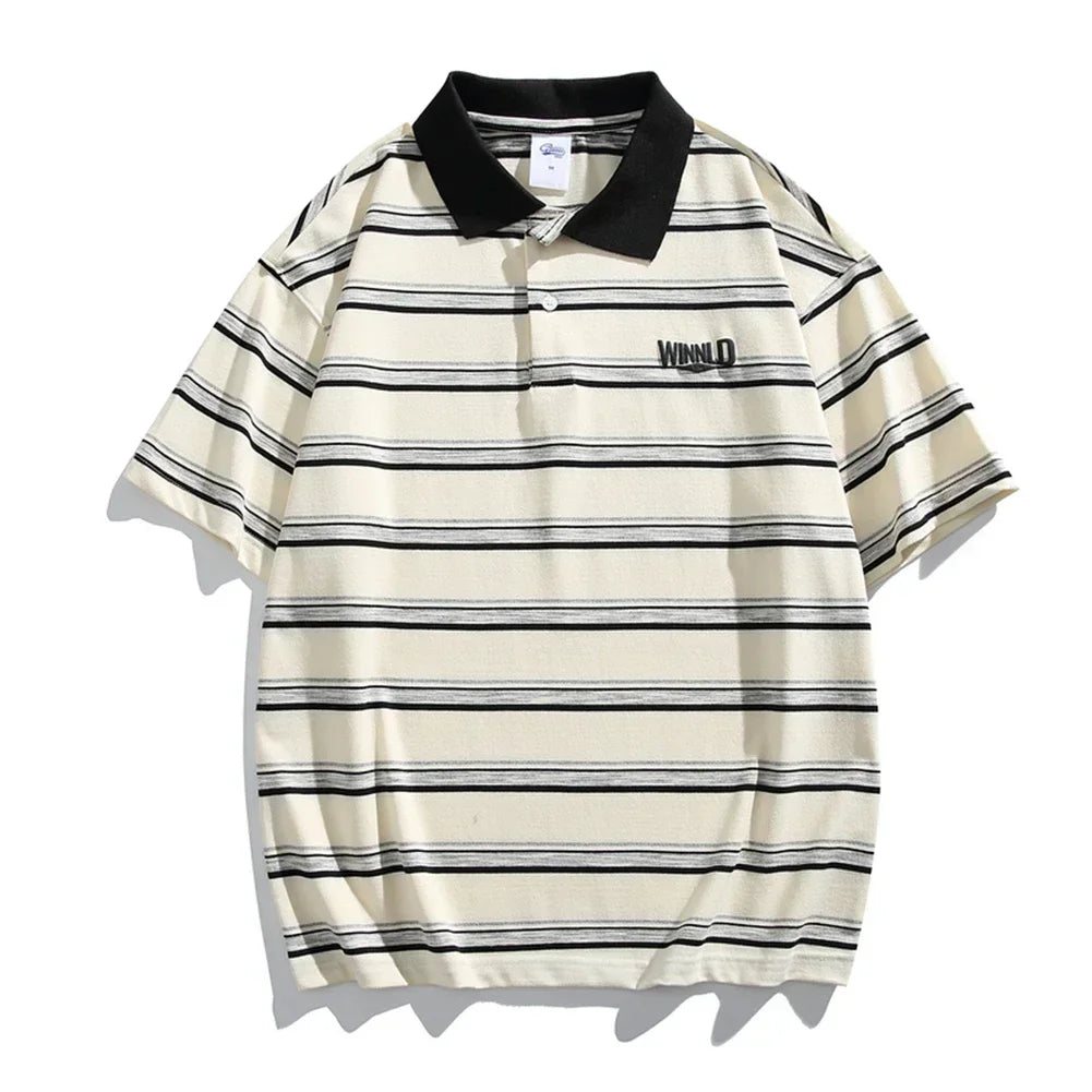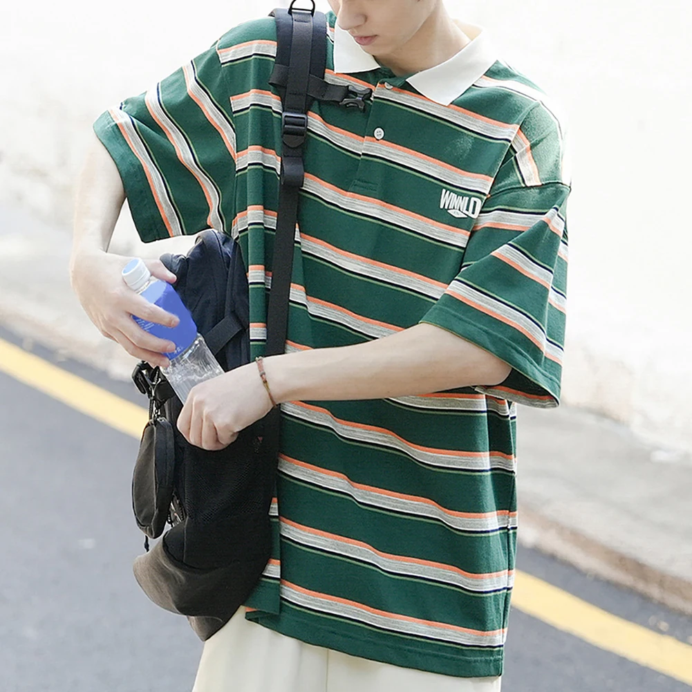 HEARUJOY - Casual Summer 2XL Mens Summer T-Shirts Casual Striped Short Sleeve Shirts Vintage Short Sleeve Tops Lapel Neckline