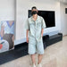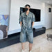 HEARUJOY - Casual Summer Short Sleeve Denim Shirts & Shorts Men's Sets Sreetwear Cotton Top Tee-Shirt Jean & Pant Two Piece Clothing