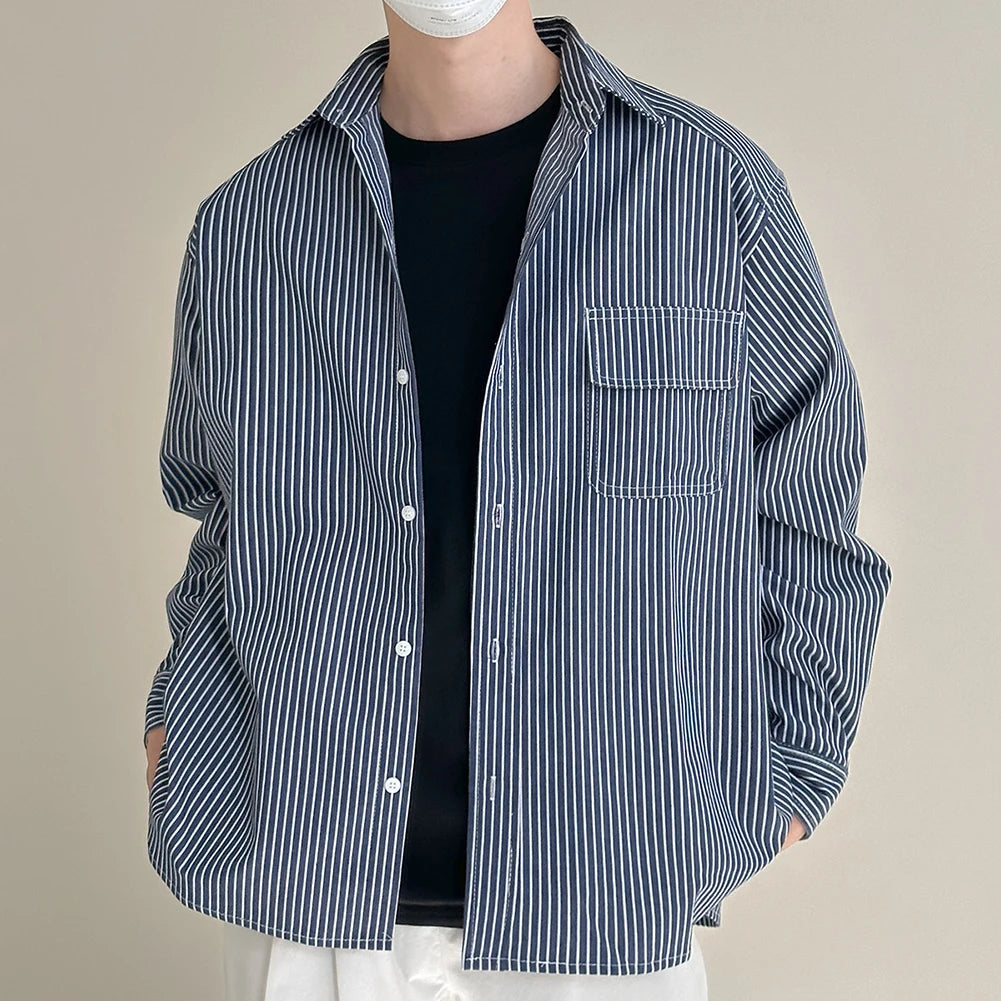 HEARUJOY - Casual Vacation Look Striped Long Sleeve Spring Autumn Top Comfortable Fit Daily Wear Shirt Holiday Casual Wear