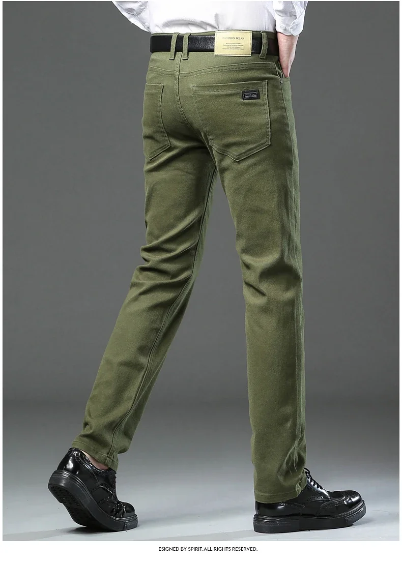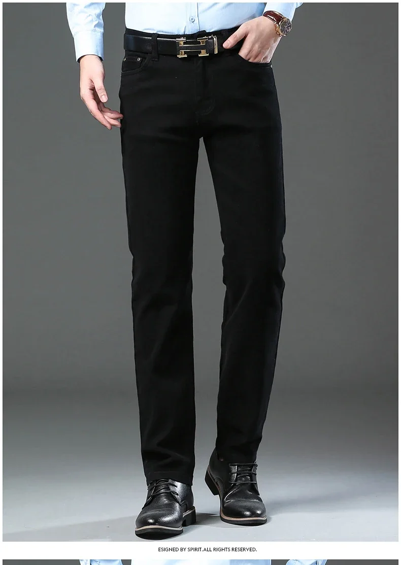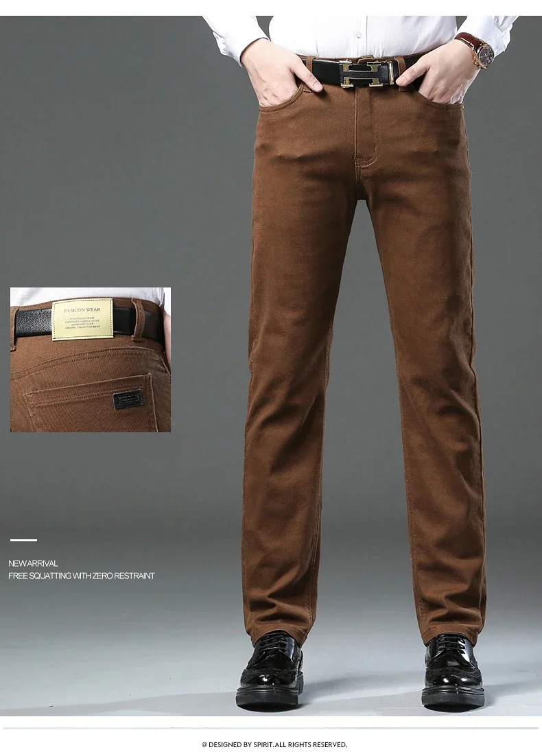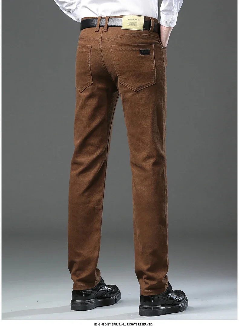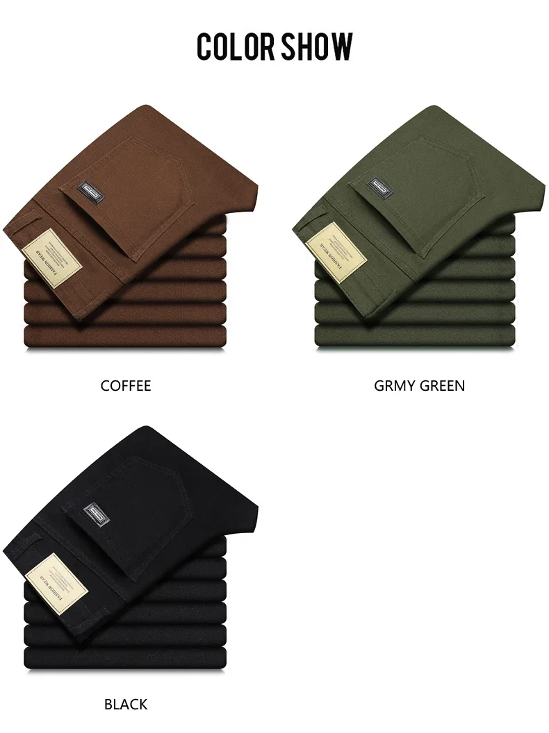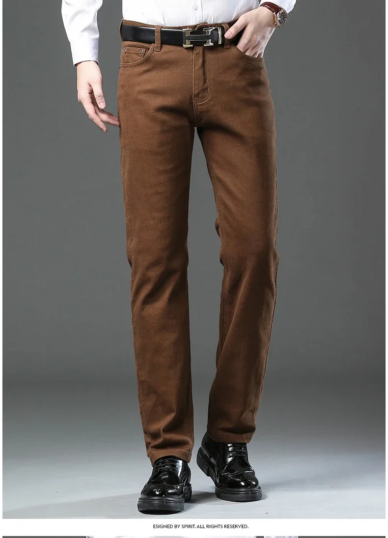HEARUJOY - Classic Style 3 Colors Autumn Men's Slim Brown Jeans High Quality Business Casual High Stretch Denim Pants Male Brand Trousers