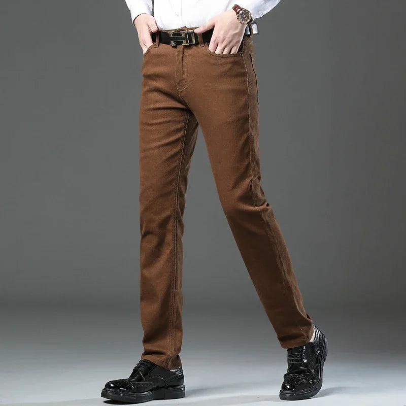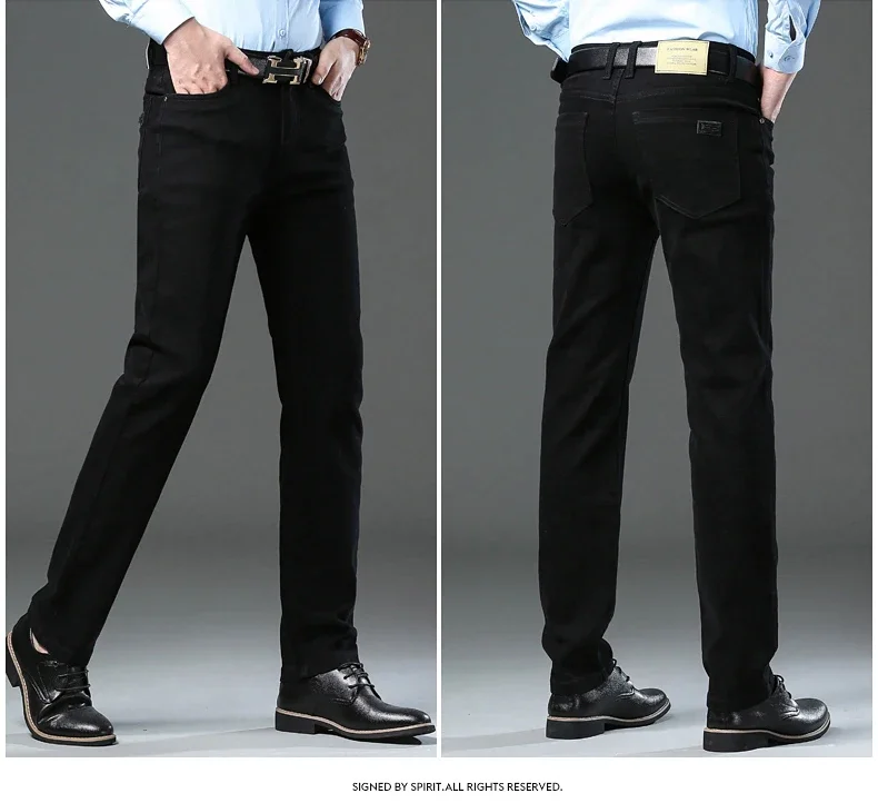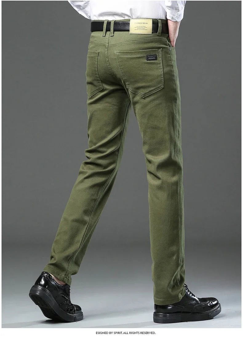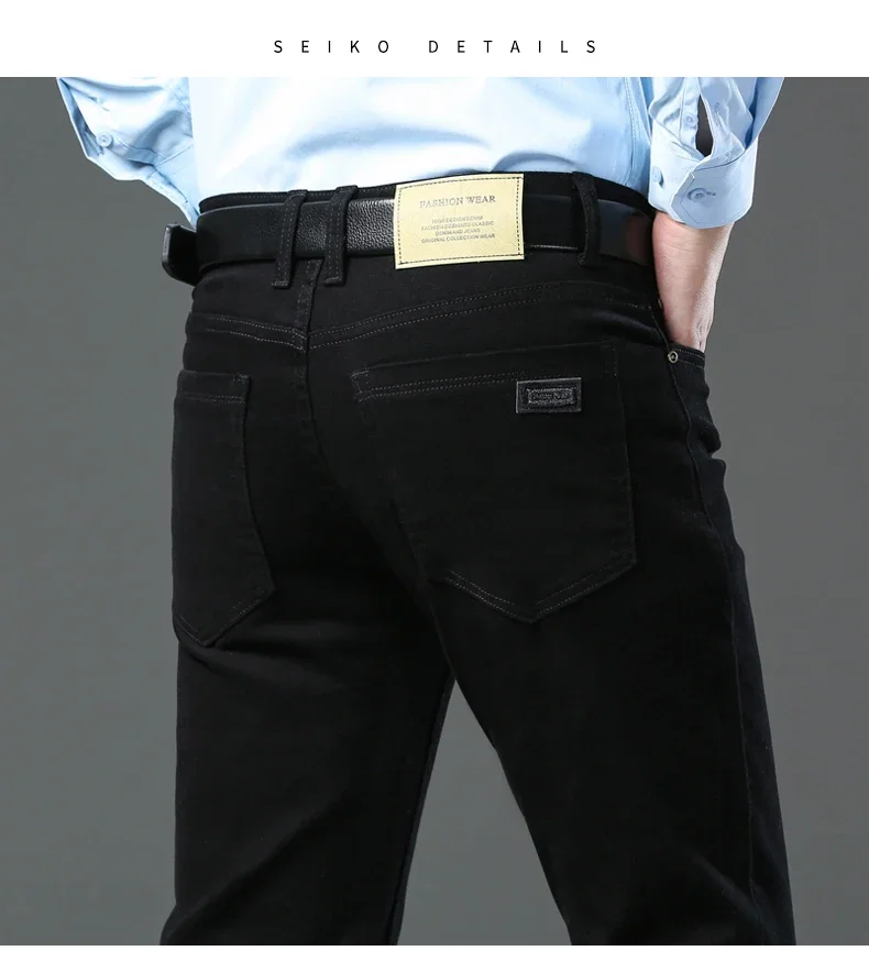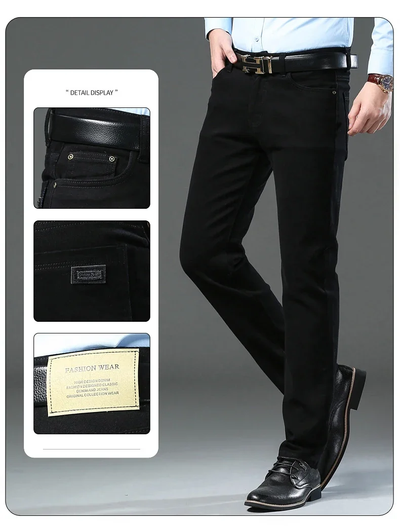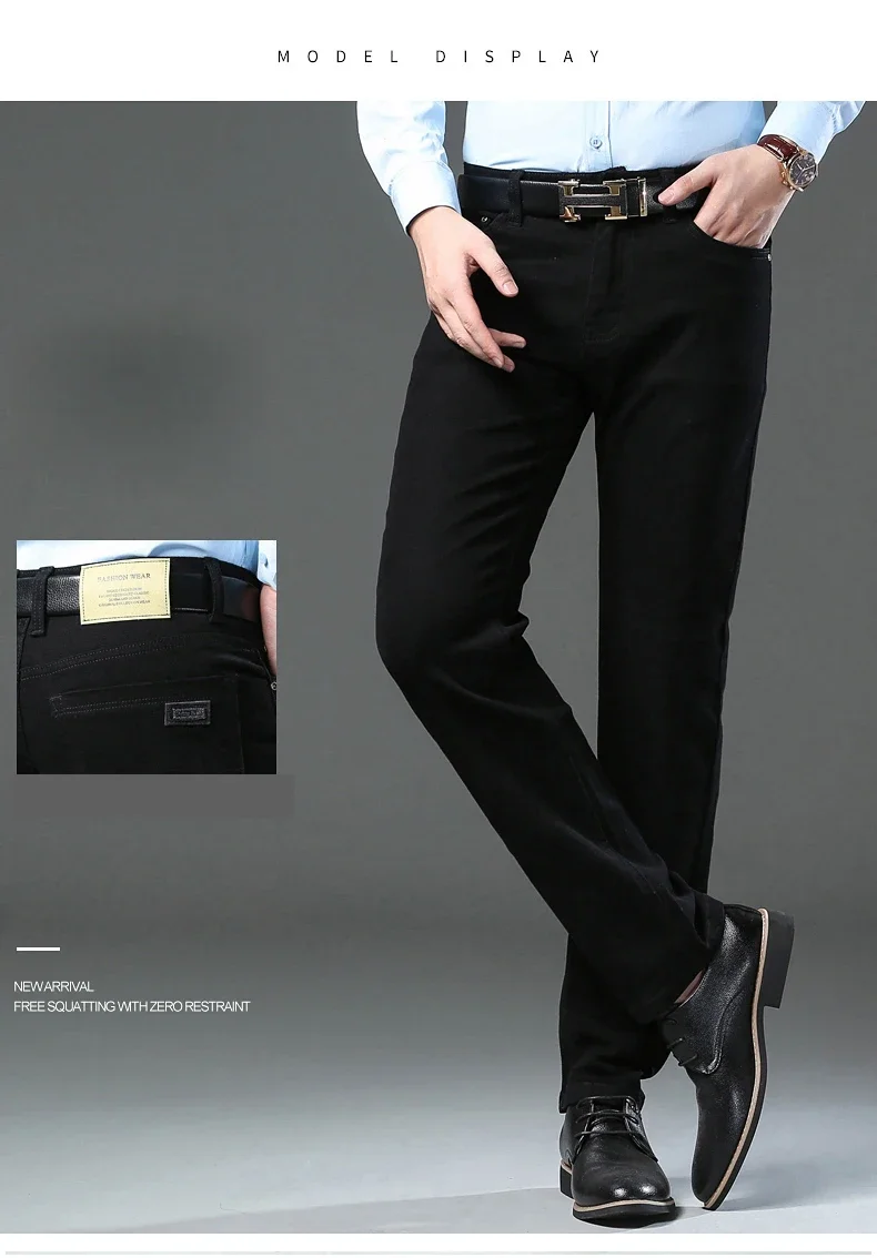 HEARUJOY - Classic Style 3 Colors Autumn Men's Slim Brown Jeans High Quality Business Casual High Stretch Denim Pants Male Brand Trousers