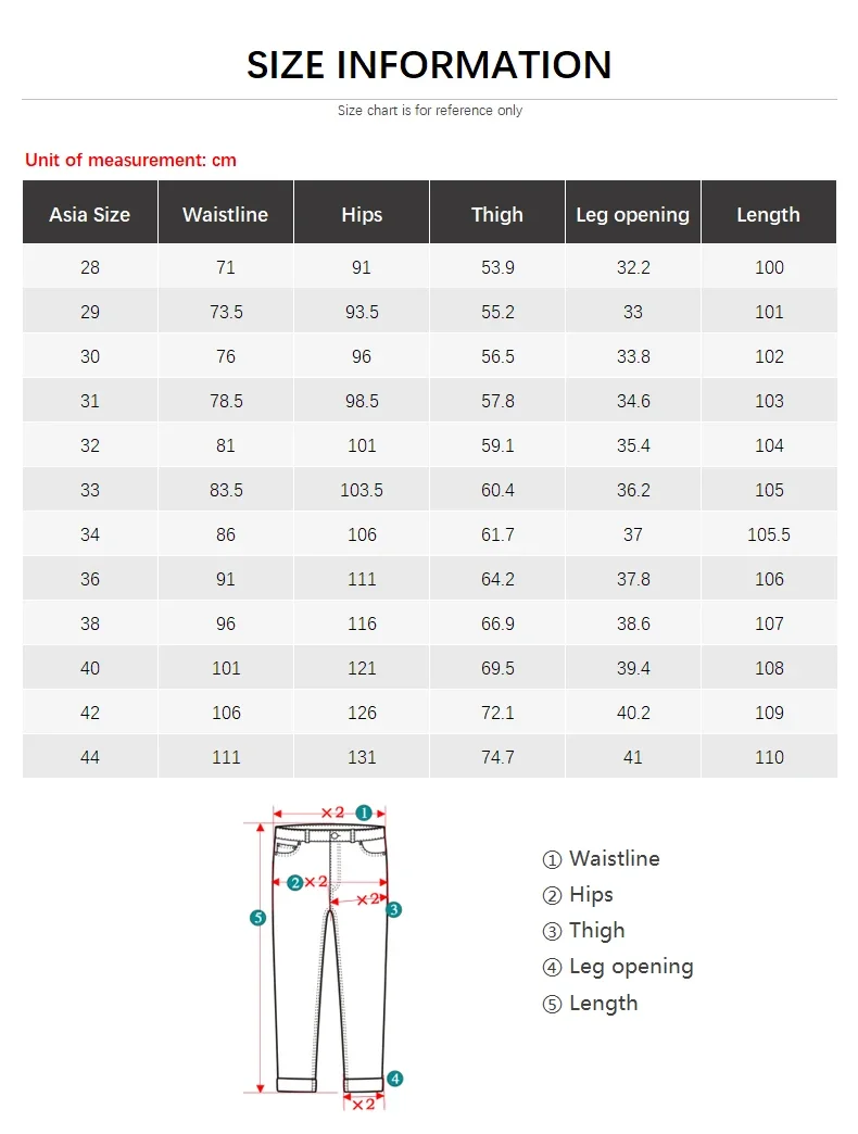 1. The size is Chinese size, pants size 32 = 32 inches waist = 81.5cm waist.