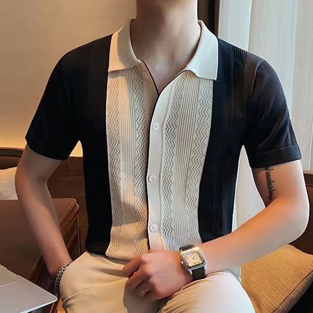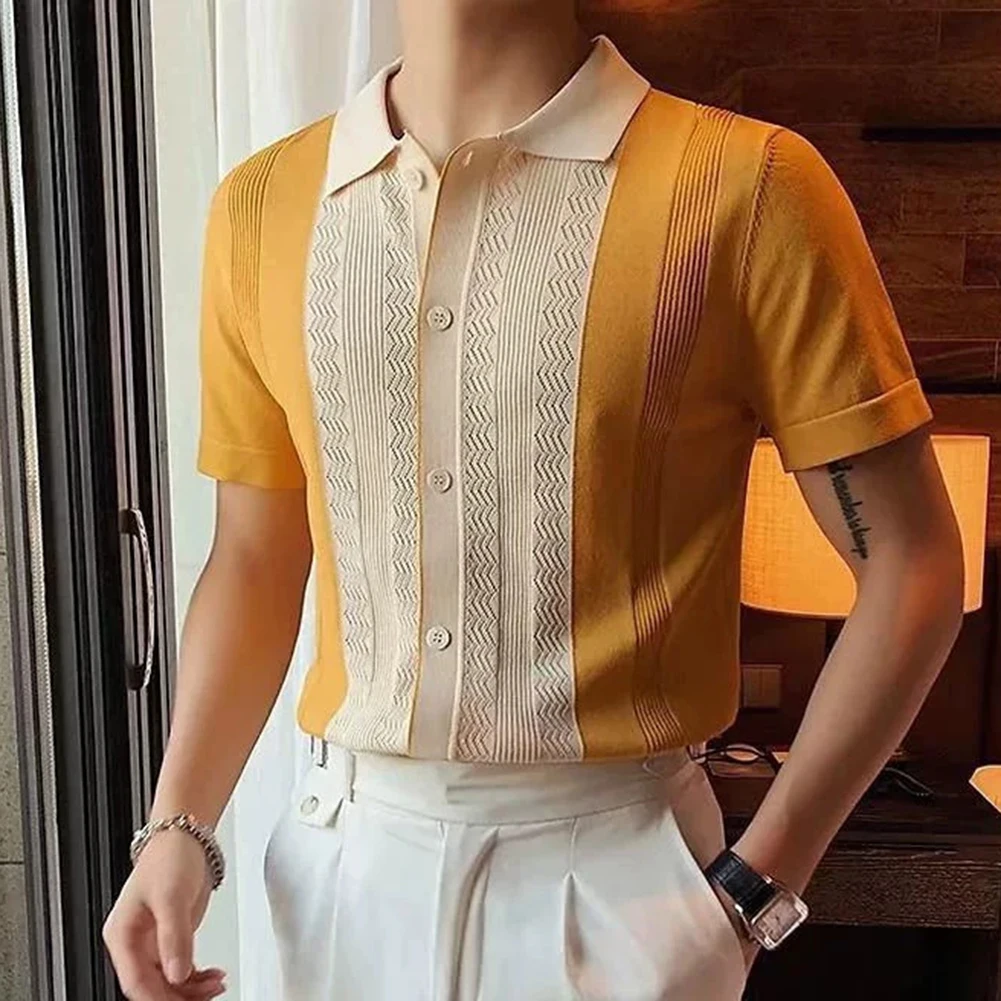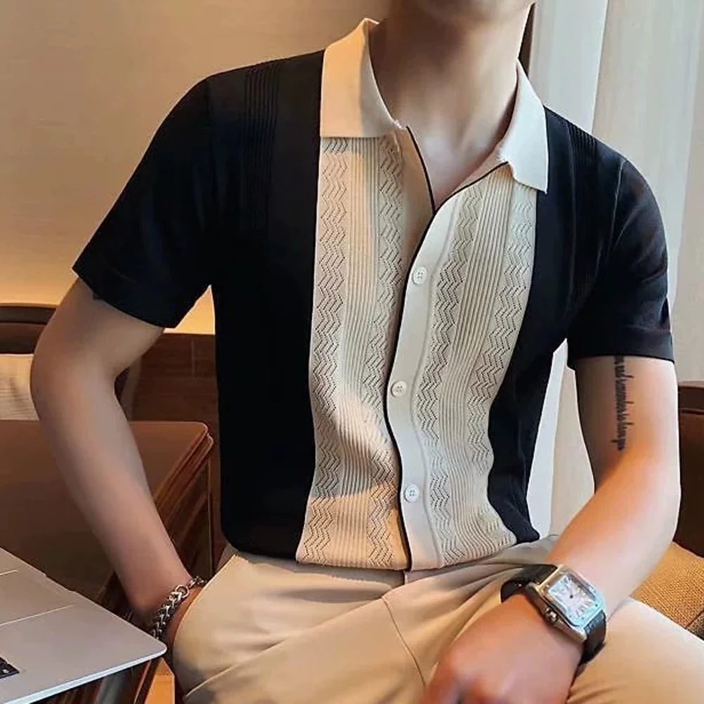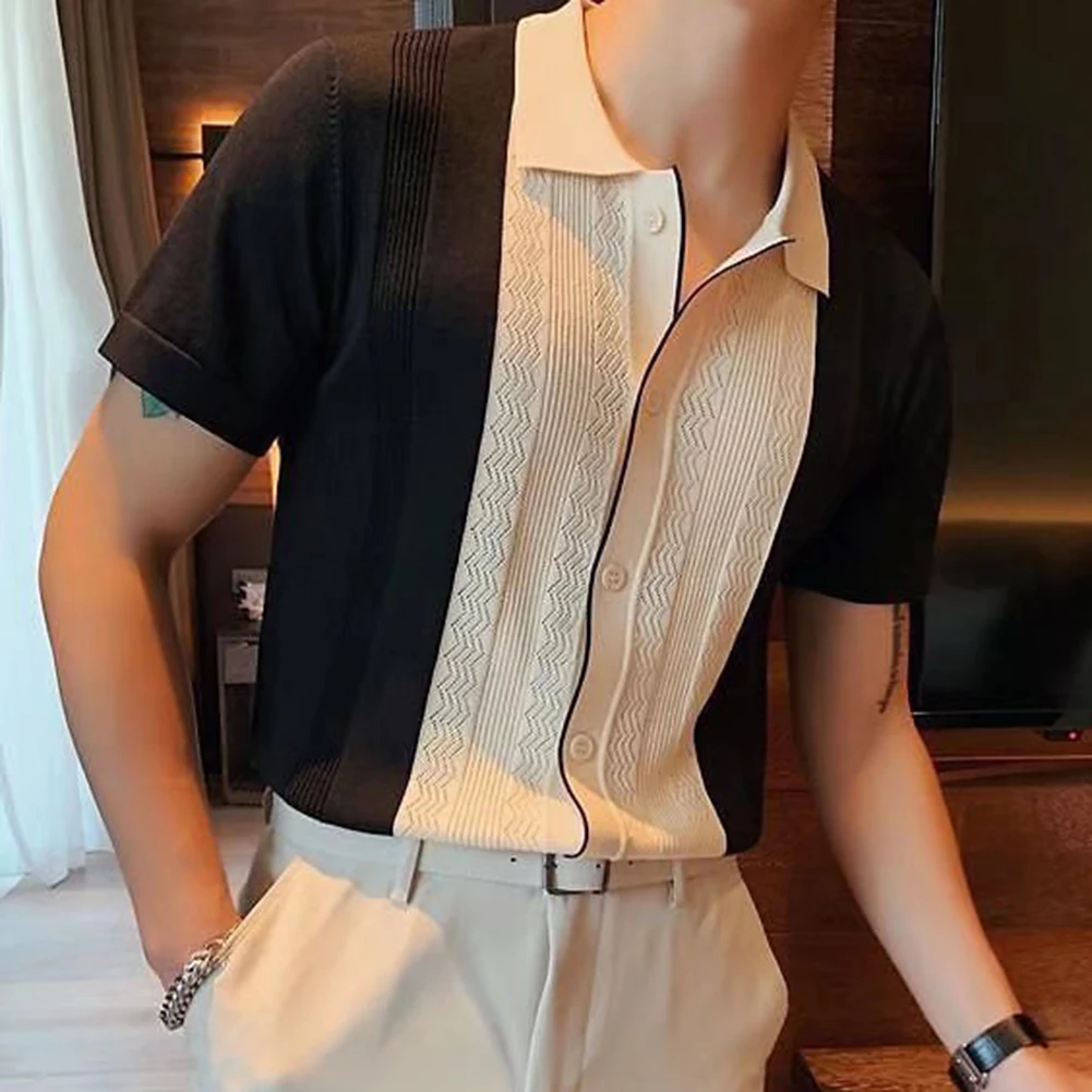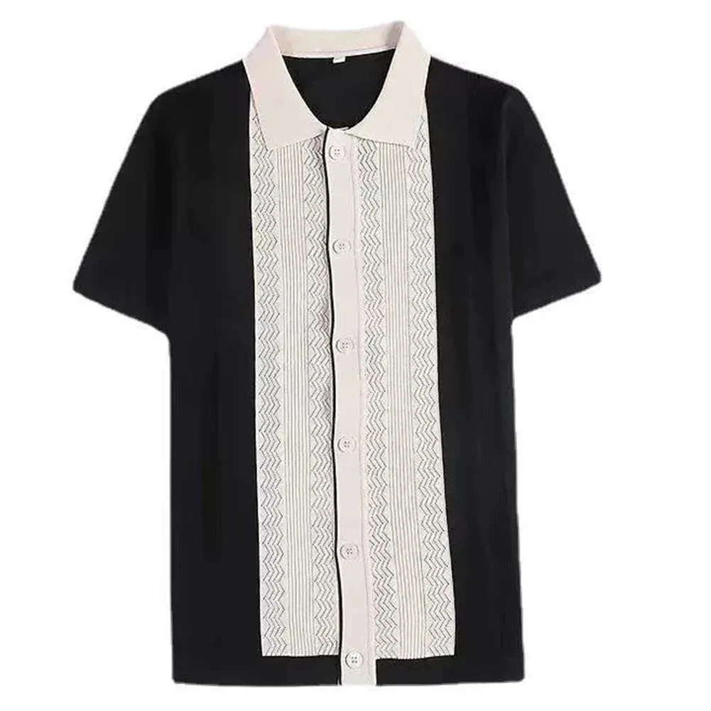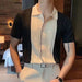 HEARUJOY - Clothing Contrast Color Loose Fit Tops Slight Stretch Vacation Clothing Casual Style Daily Wear Lapel Neckline