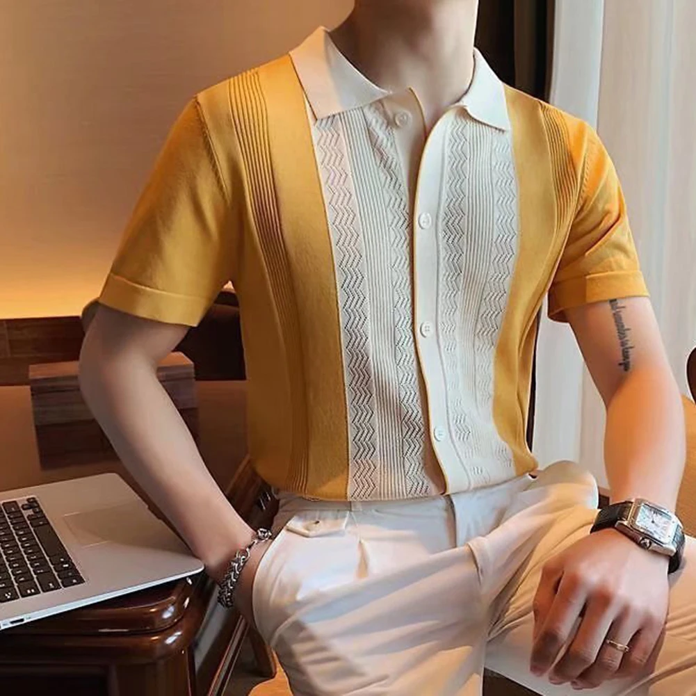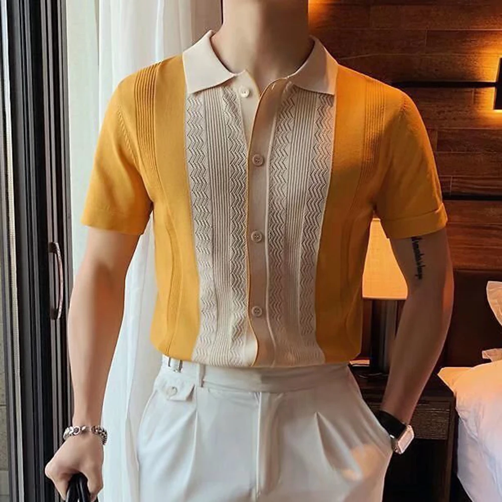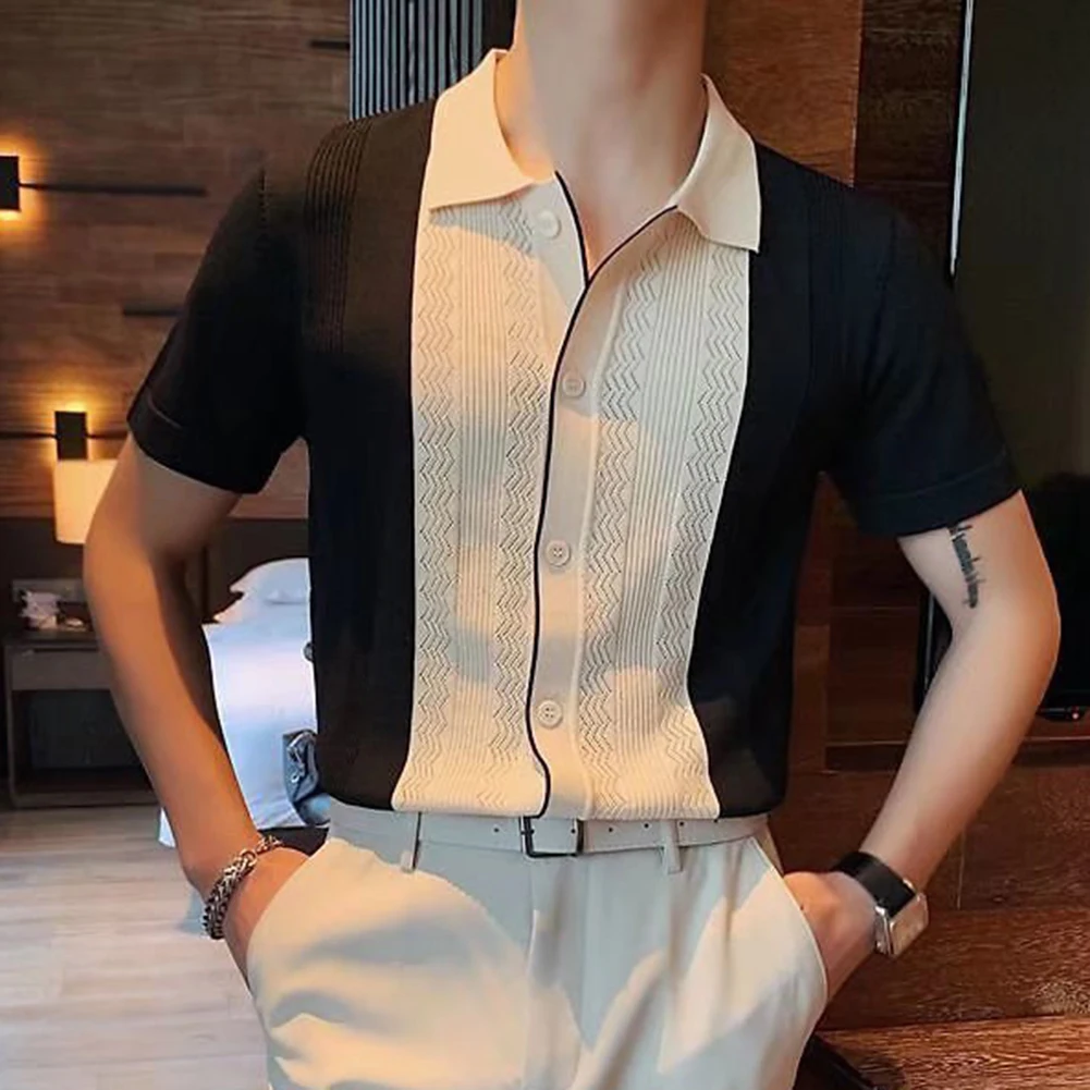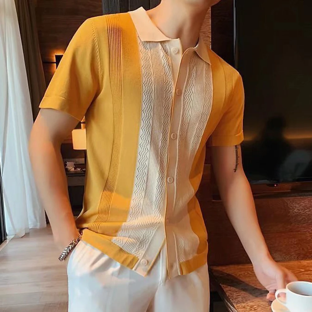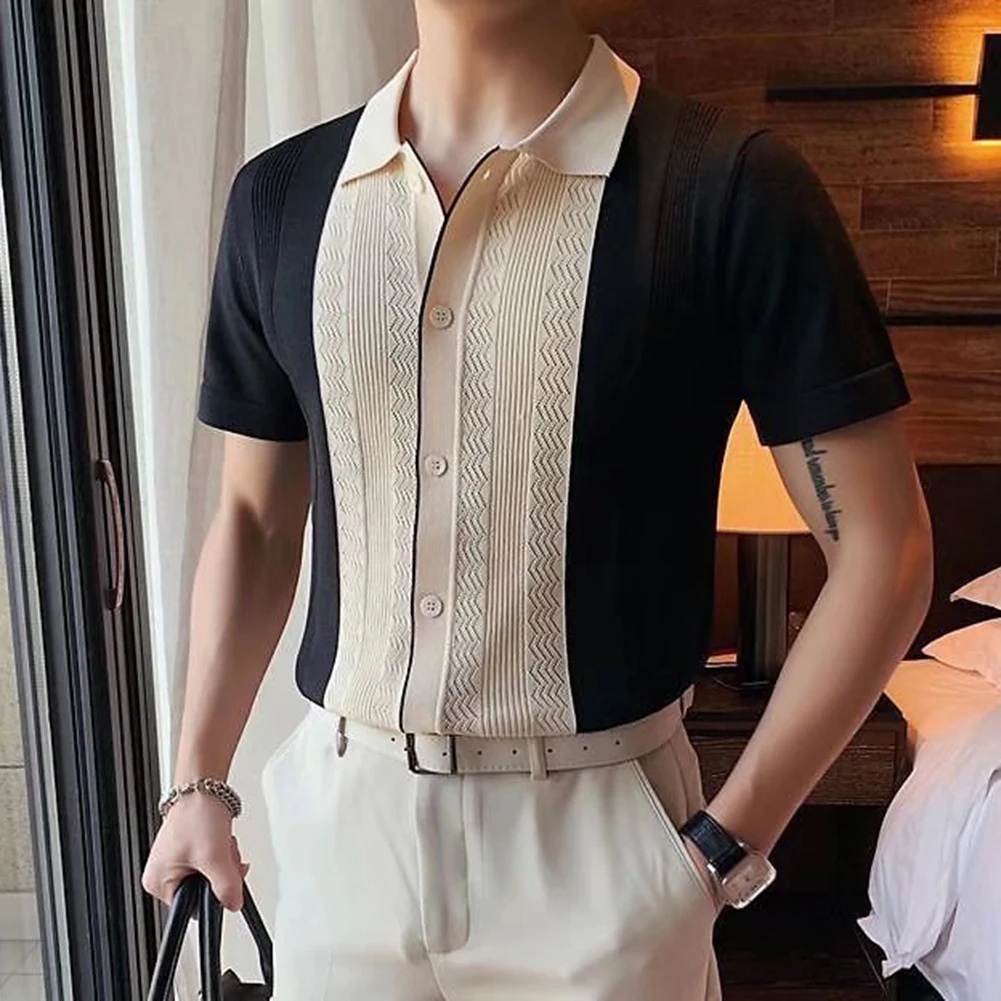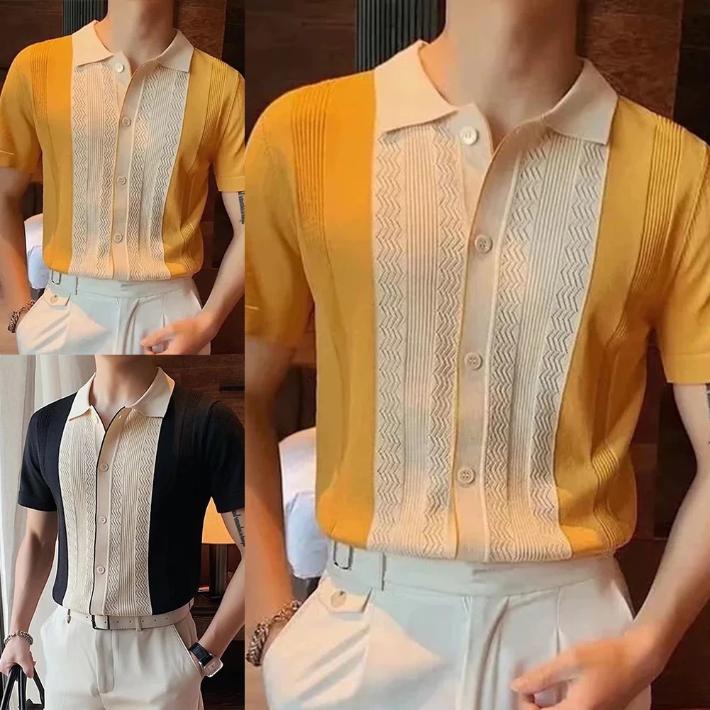 HEARUJOY - Clothing Contrast Color Loose Fit Tops Slight Stretch Vacation Clothing Casual Style Daily Wear Lapel Neckline