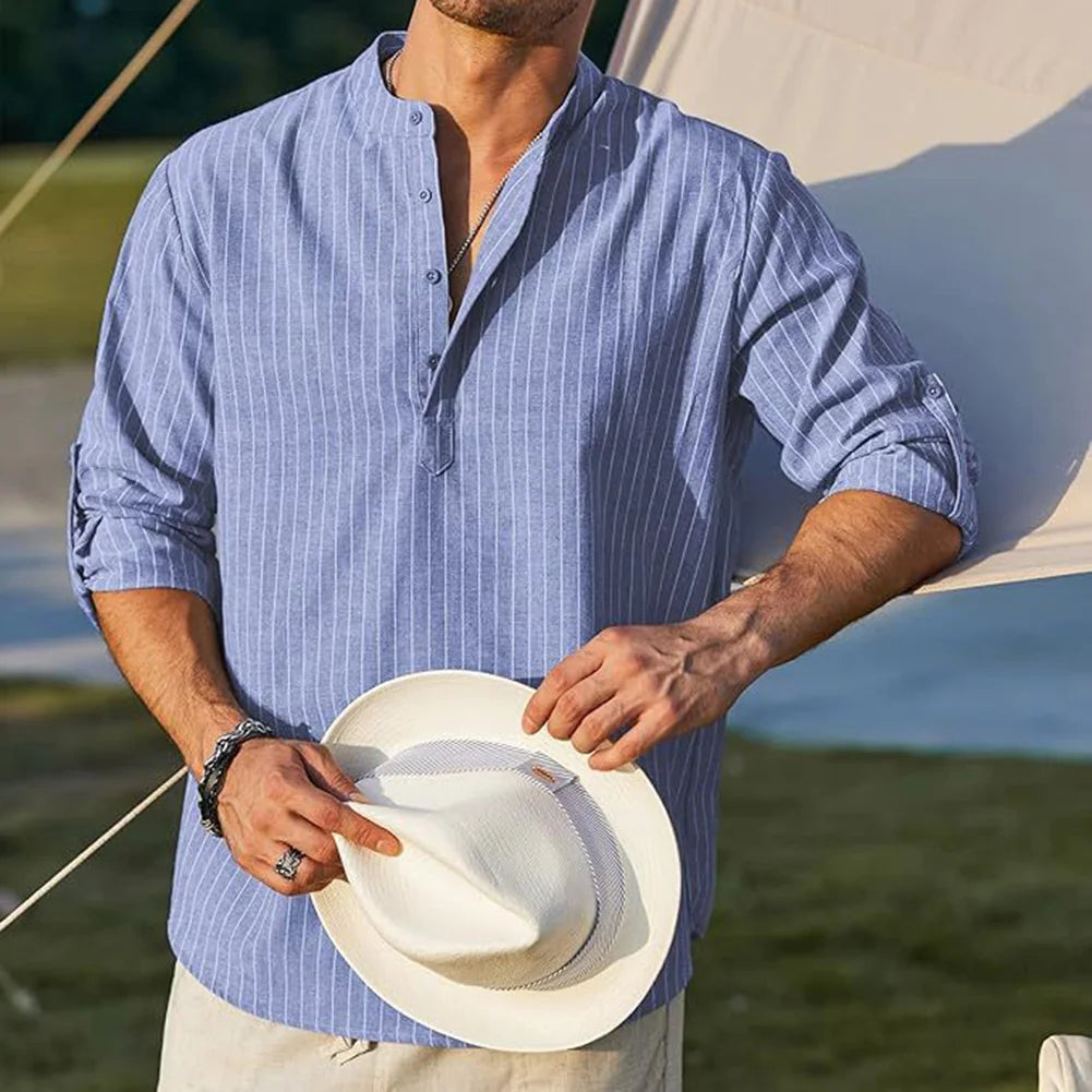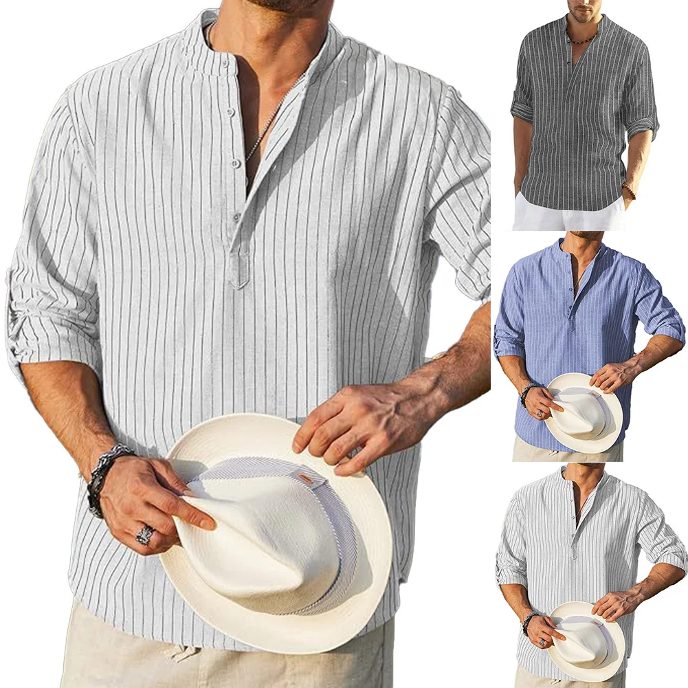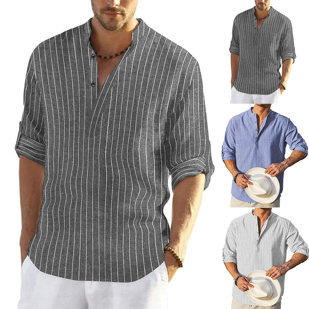 HEARUJOY - Comfy Hot Holiday Daily Vacation Shirt Striped Shirts Tops Brand New Casual Fashion Grandad Collar Long Sleeve