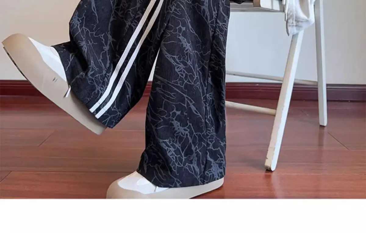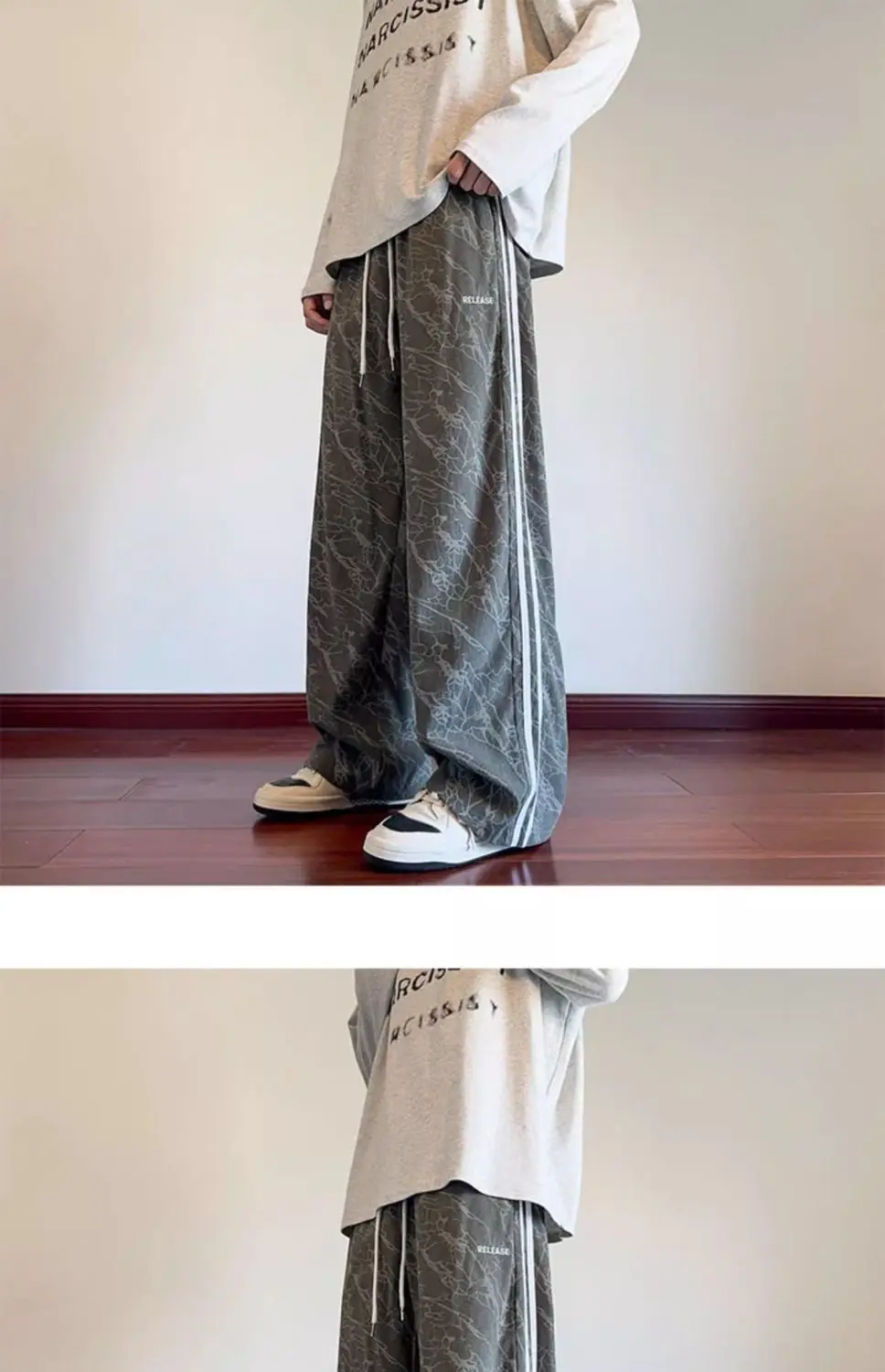 Hearujoy Corduroy Tie Dye Pants for Men with Thick Velvet American Retro Casual Sweatpants Loose Straight Leg Sports Pants