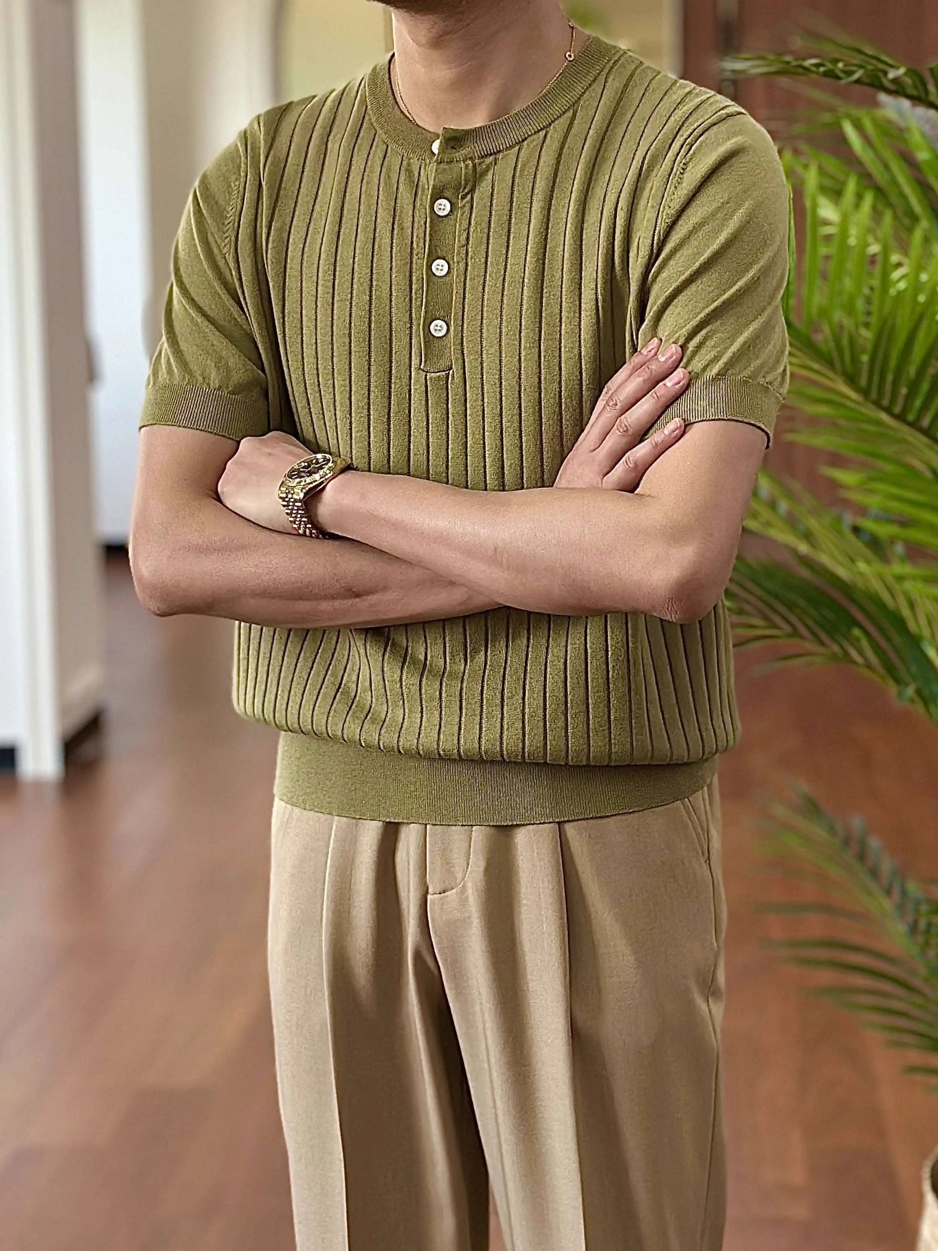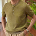 HEARUJOY - Cotton Blend Breathable Comfortable Trendy Knitted T Shirt Homme Top Quality T-Shirt Man Henry Neck Short Sleeved T-shirt Man