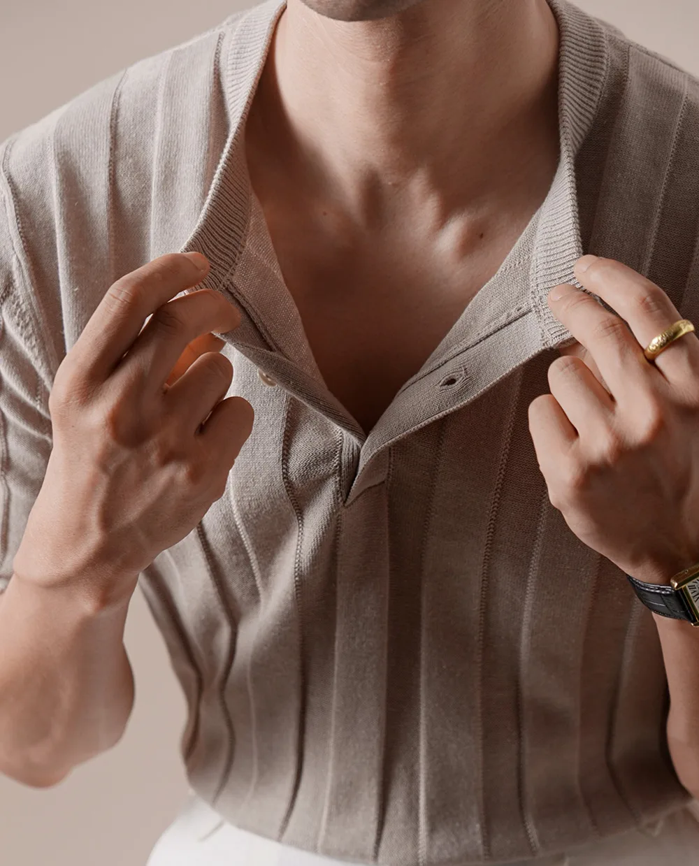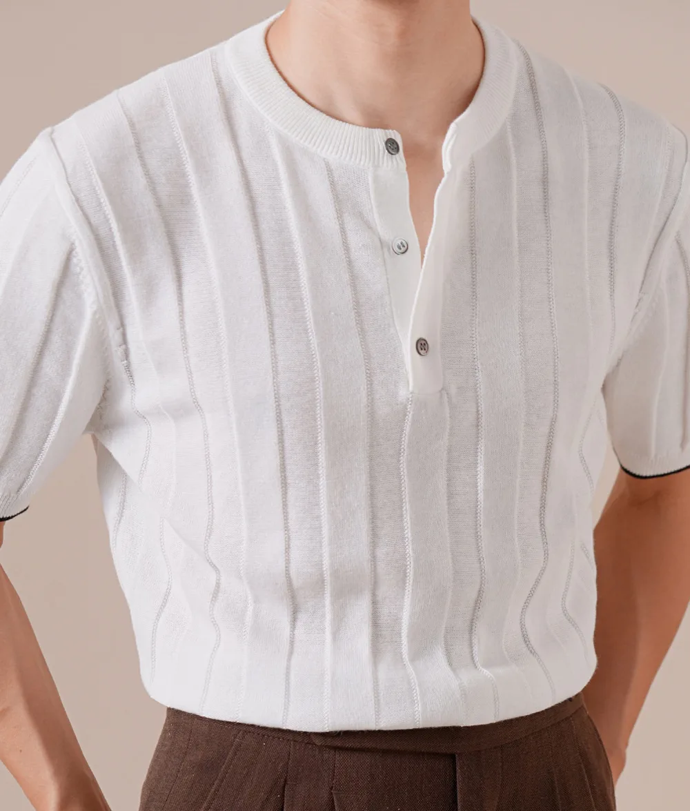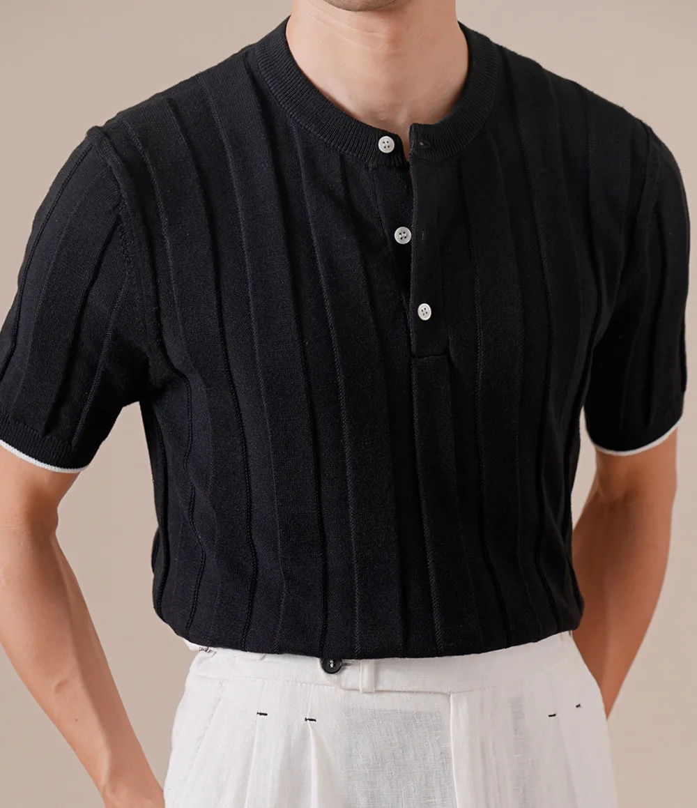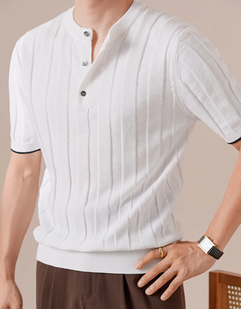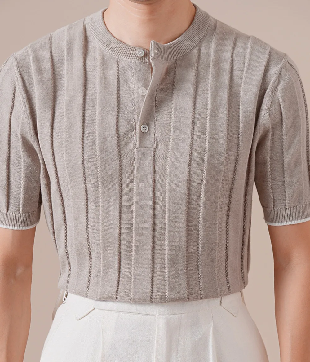 HEARUJOY - Cotton Linen Blend Italian Henley Collar Short Sleeve Polo Shirt Men Social Club Outfits Summer Top Thin T-Shirt Tee Shirt Homme