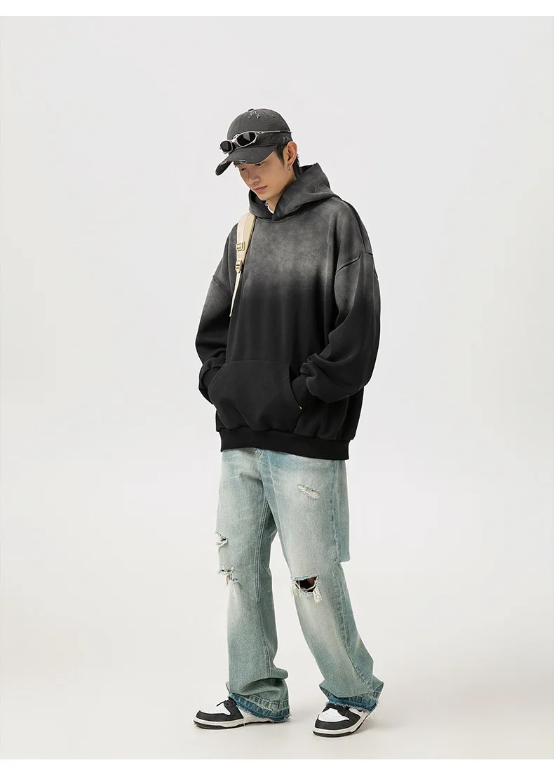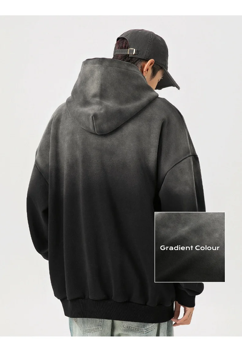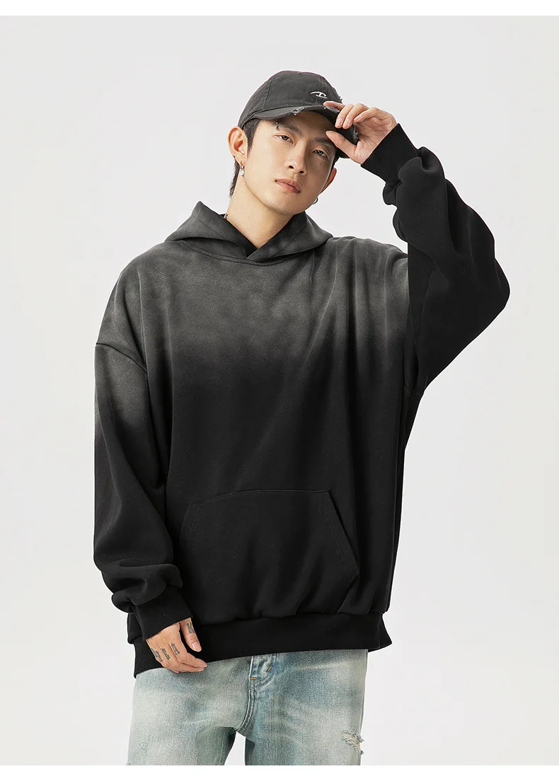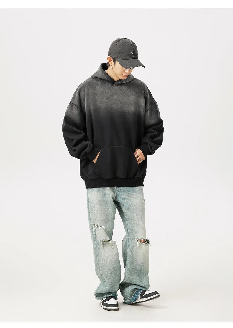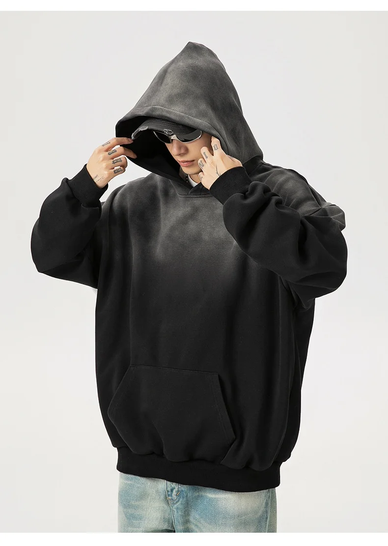 Hearujoy Cotton Washed Gradient Sweatshirt Autumn Winter Retro Loose Men's Women's Hooded Pullover Sweatshirt Tops