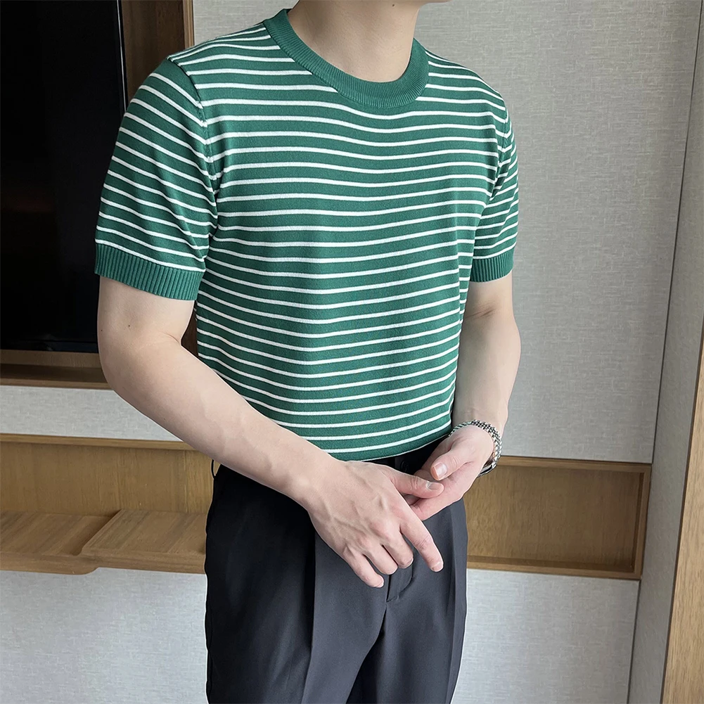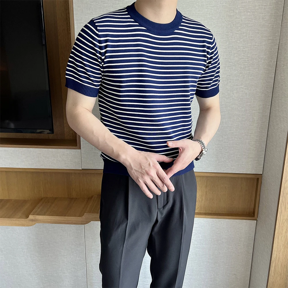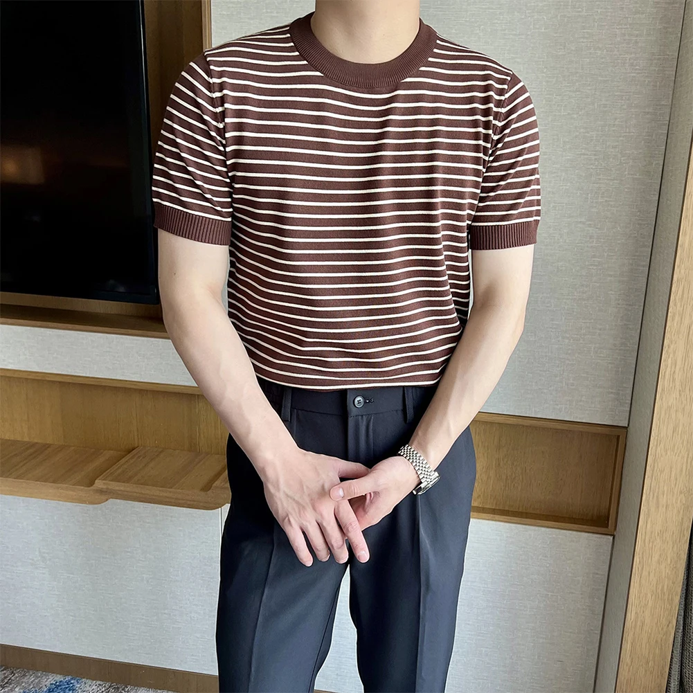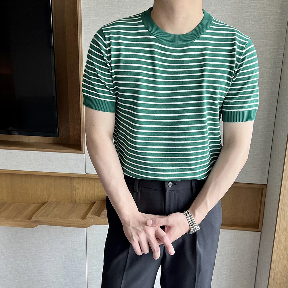 HEARUJOY - Crew Neck Blouse Men Korean Style T-shirt Applicable Gender Men Brand New Condition Korean Style Fashion Summer Casual Outfit
