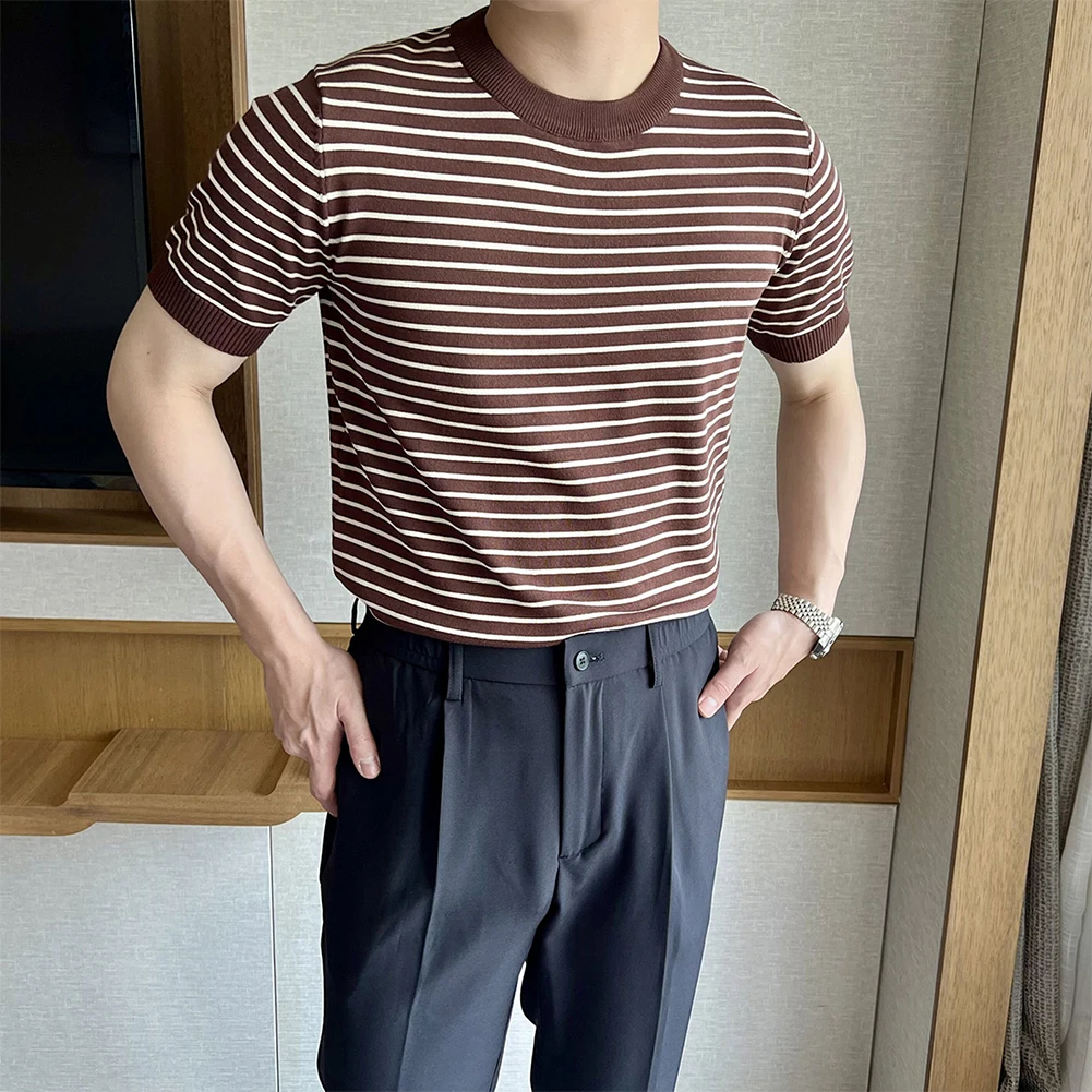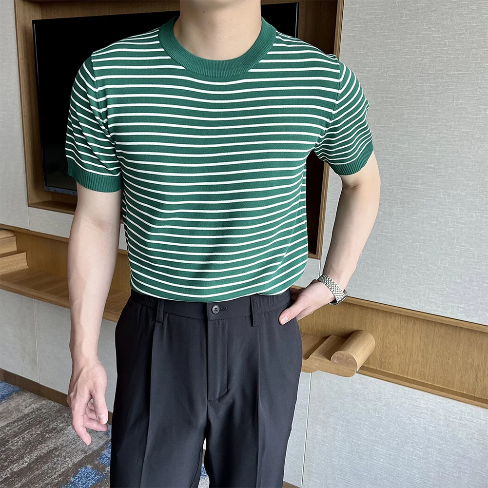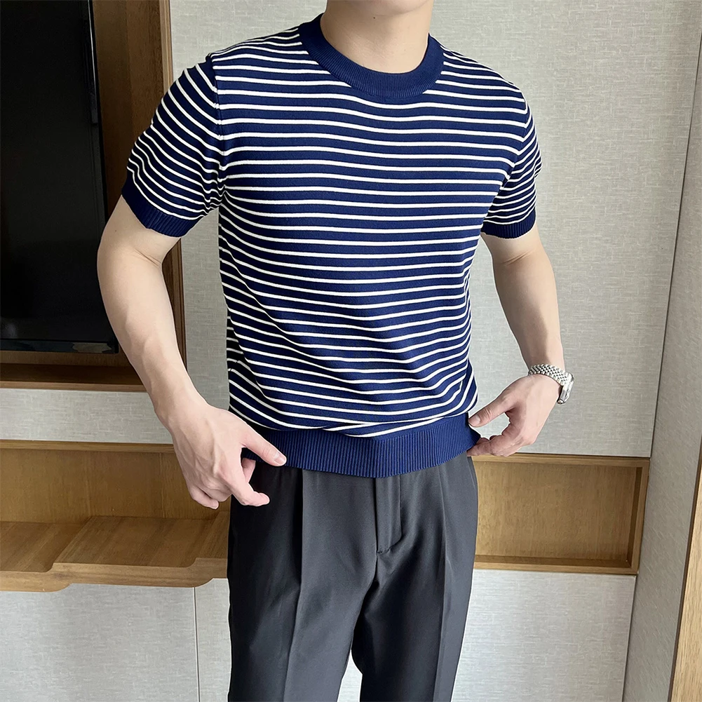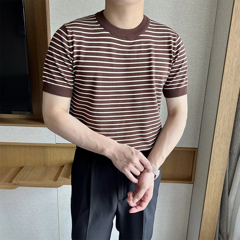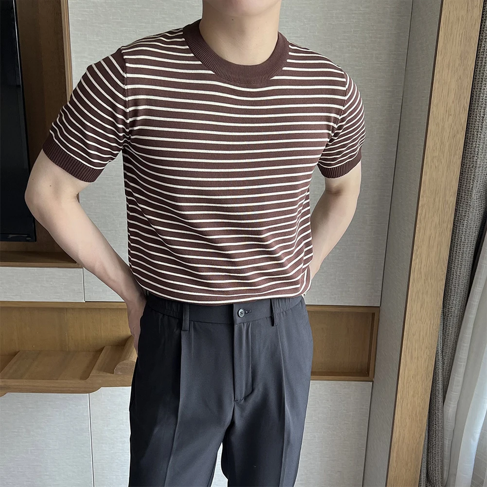 HEARUJOY - Crew Neck Blouse Men Korean Style T-shirt Applicable Gender Men Brand New Condition Korean Style Fashion Summer Casual Outfit