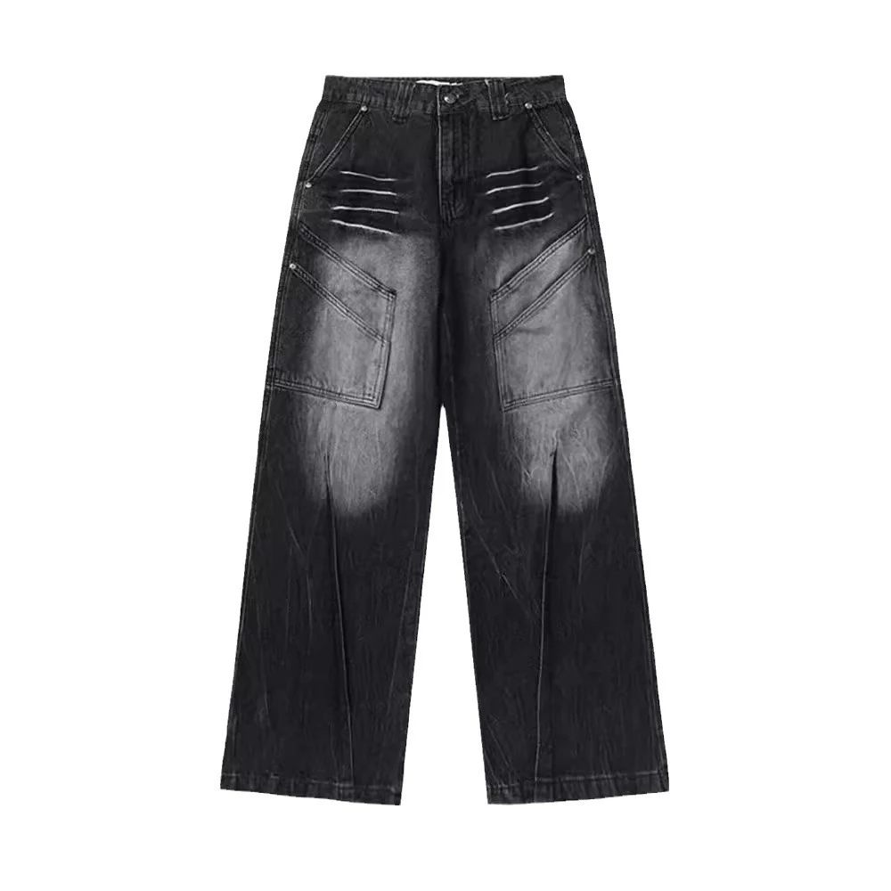 Hearujoy Dark Men's Trousers Washed Gradient Large Pocket Workwear Jeans Design Autumn Fashion Casual Streetwear Sensual Unisex Clothing