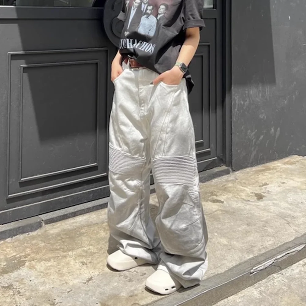 Hearujoy Dirty Dyed Patchwork Wide Leg Baggy Jeans for Men and Women Straight Y2k Ropa Hombre Denim Trousers Oversized Casual Cargo Pants