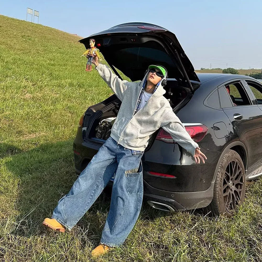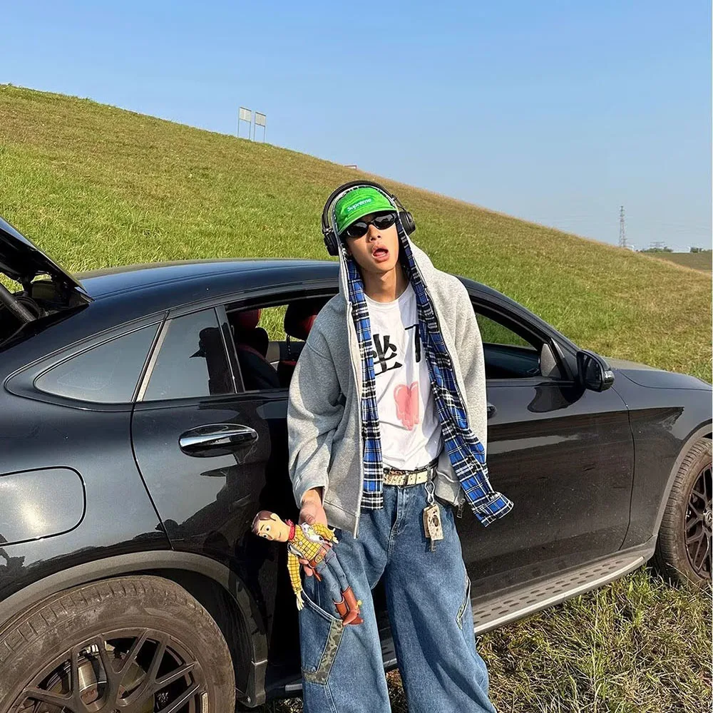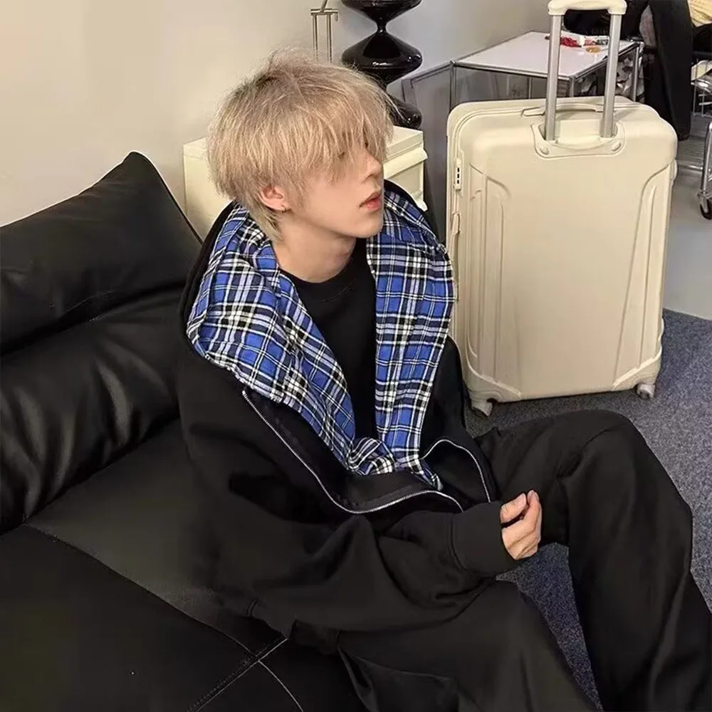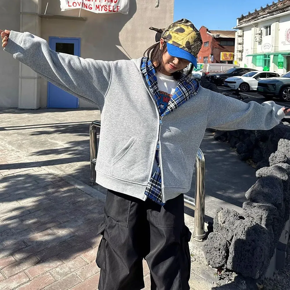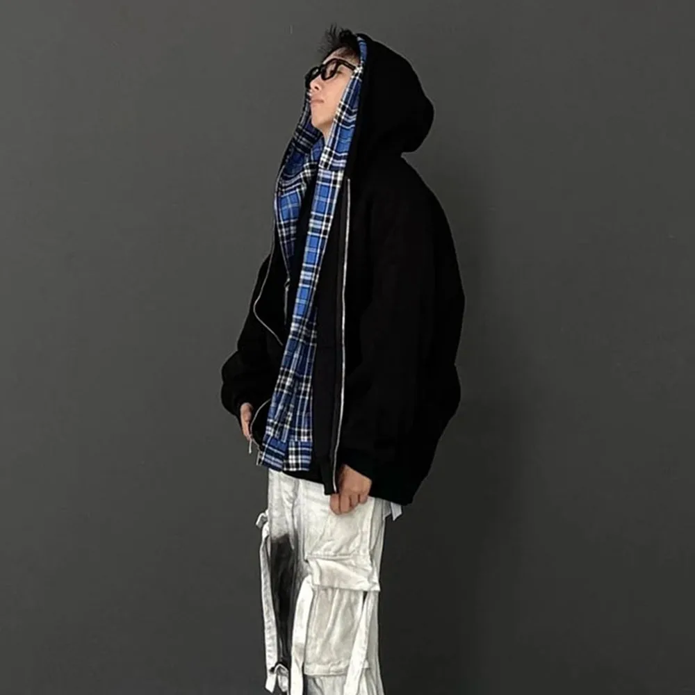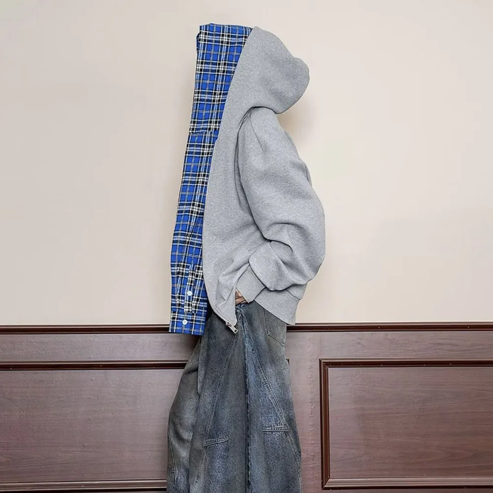 Hearujoy Fake Two Pieces Double Layer Zipper Hooded Jacket for Men and Women Cardigan Casual Loose Windbreaker Hoodies Oversized