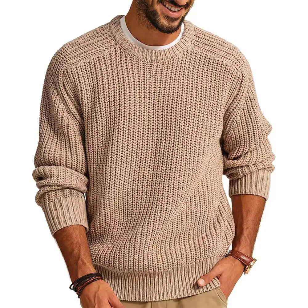 HEARUJOY - Fashion Autumn Winter New Men's Sweater Long Sleeve Round Neck Casual Men Knitted Jacquard Pullover Solid Tshirt Man Tops
