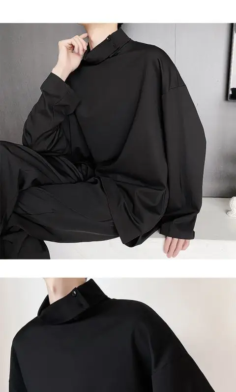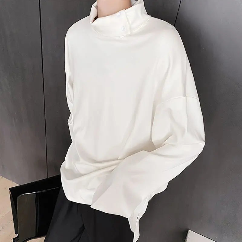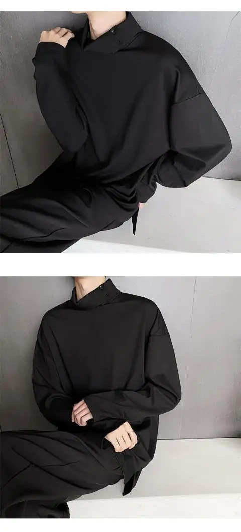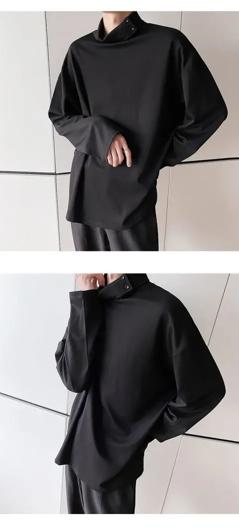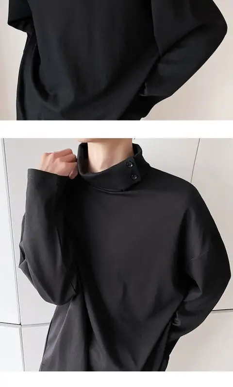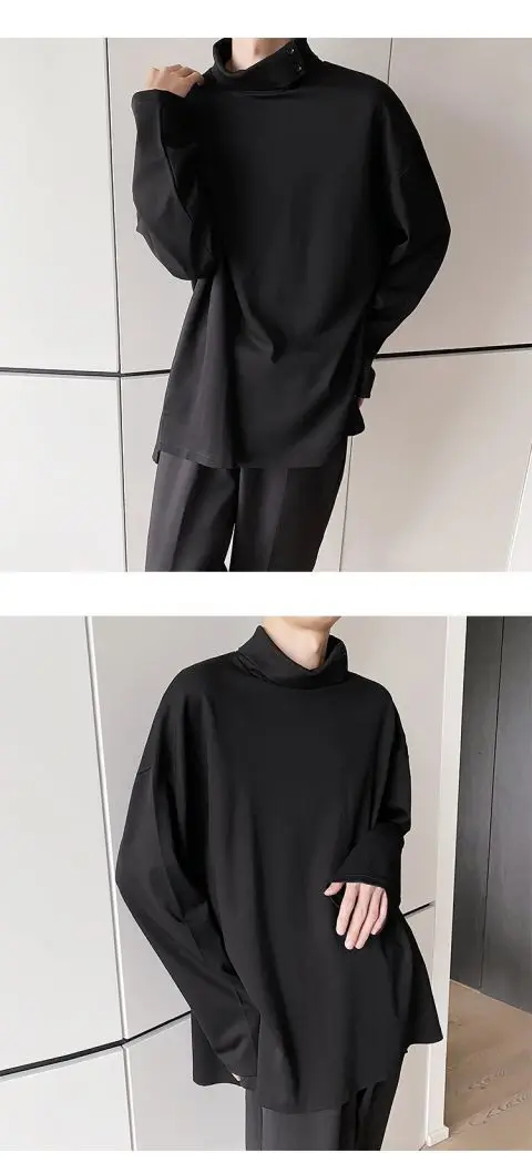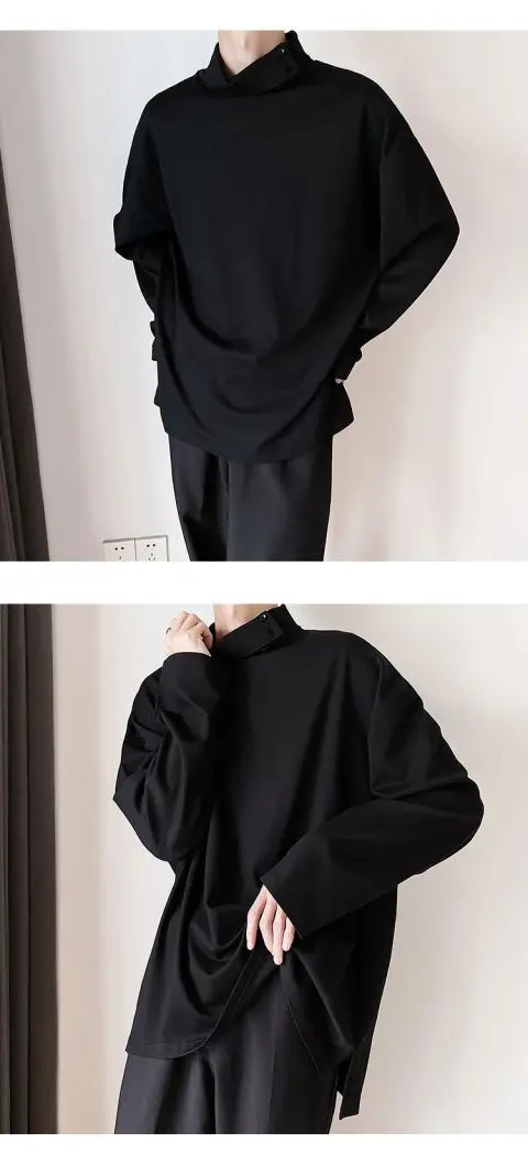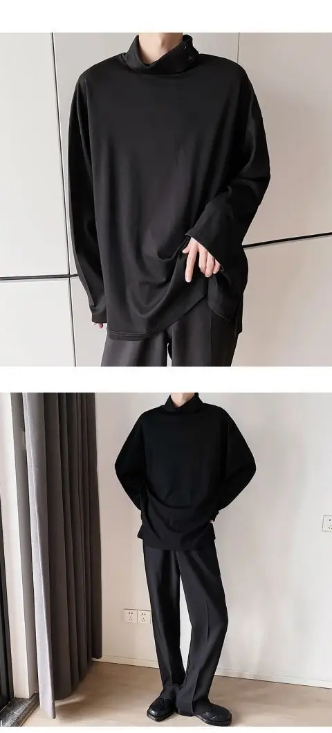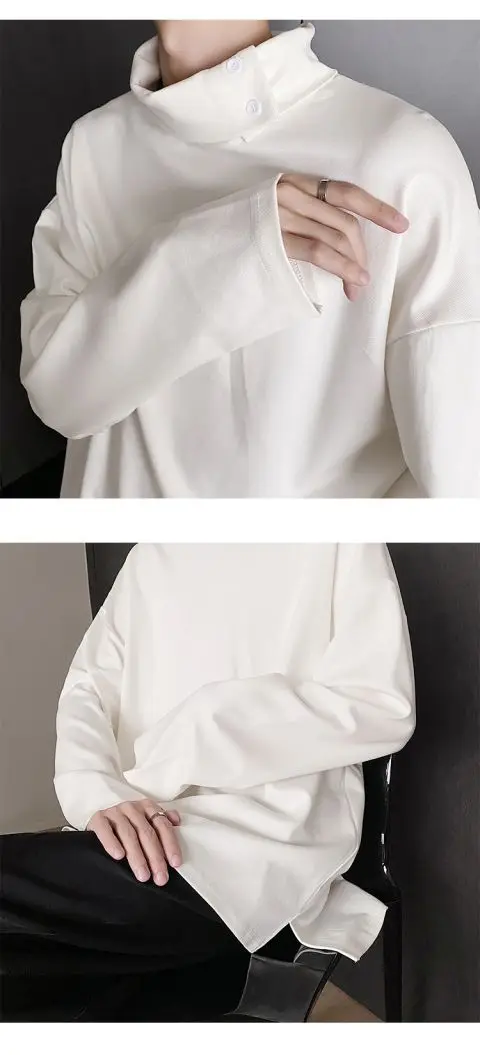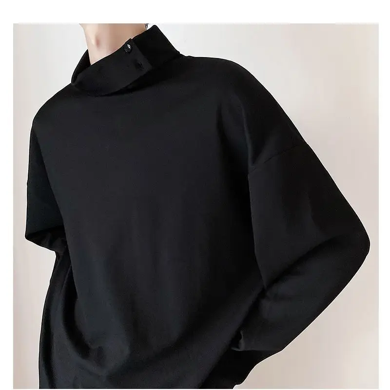 HEARUJOY - Fashion Style Spring Autumn New Men's Japanese Simple Sweatshirt Loose Personality Half Turtleneck Bottoming Shirt Male Clothes