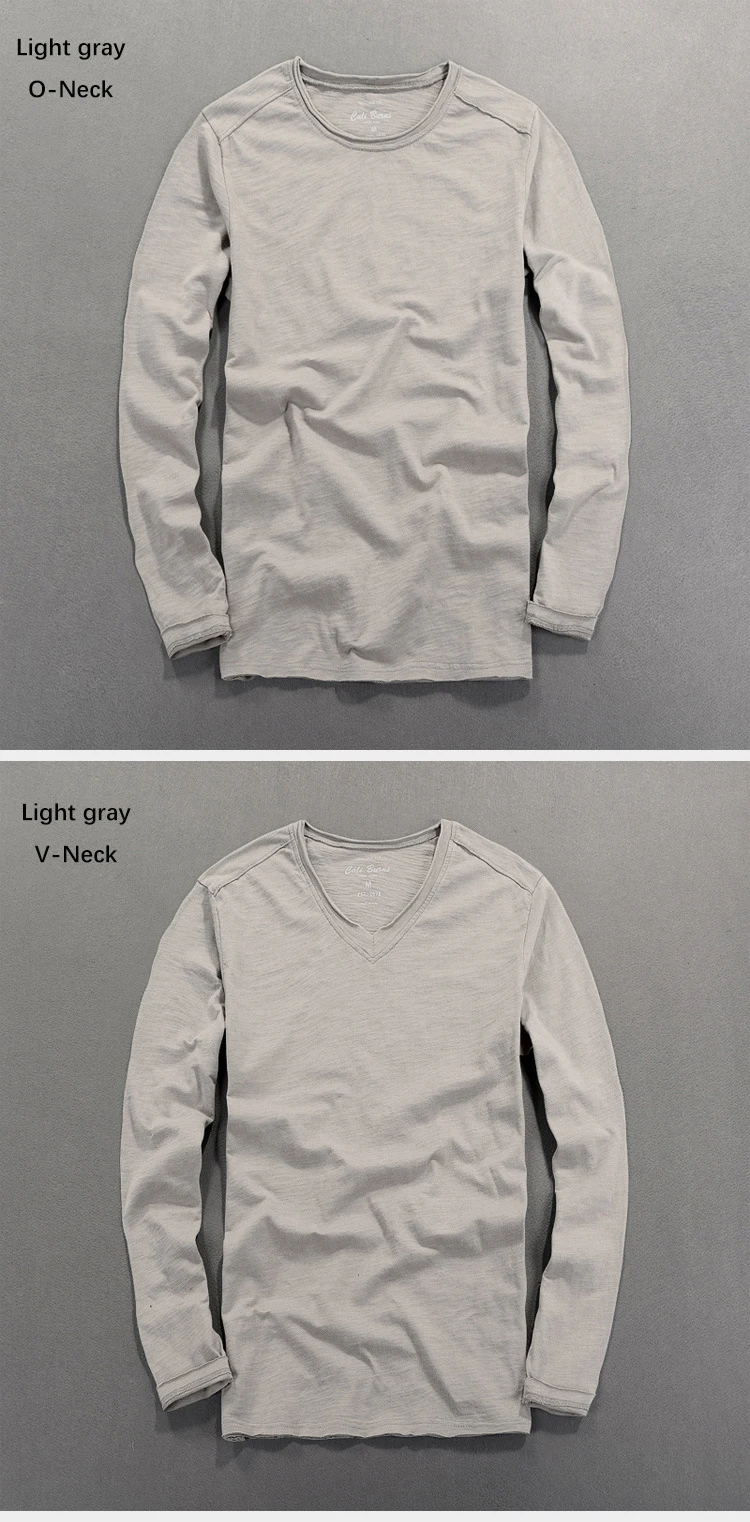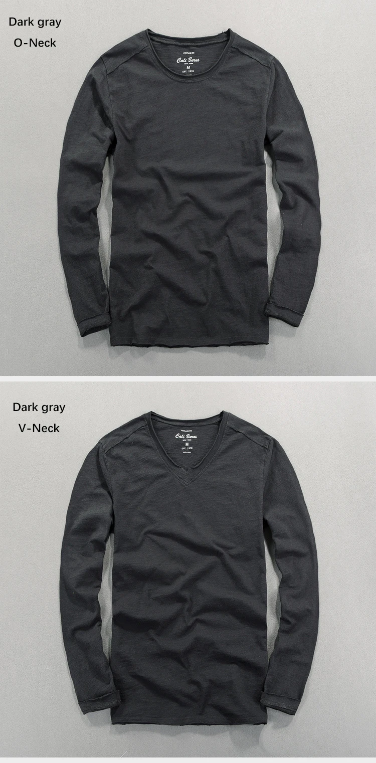 HEARUJOY - Fashionable Bamboo Cotton Long Sleeve Vintage T-shirts Men Casual Thin Tops Tees Comfortable Tshirt Distressed T-shirt