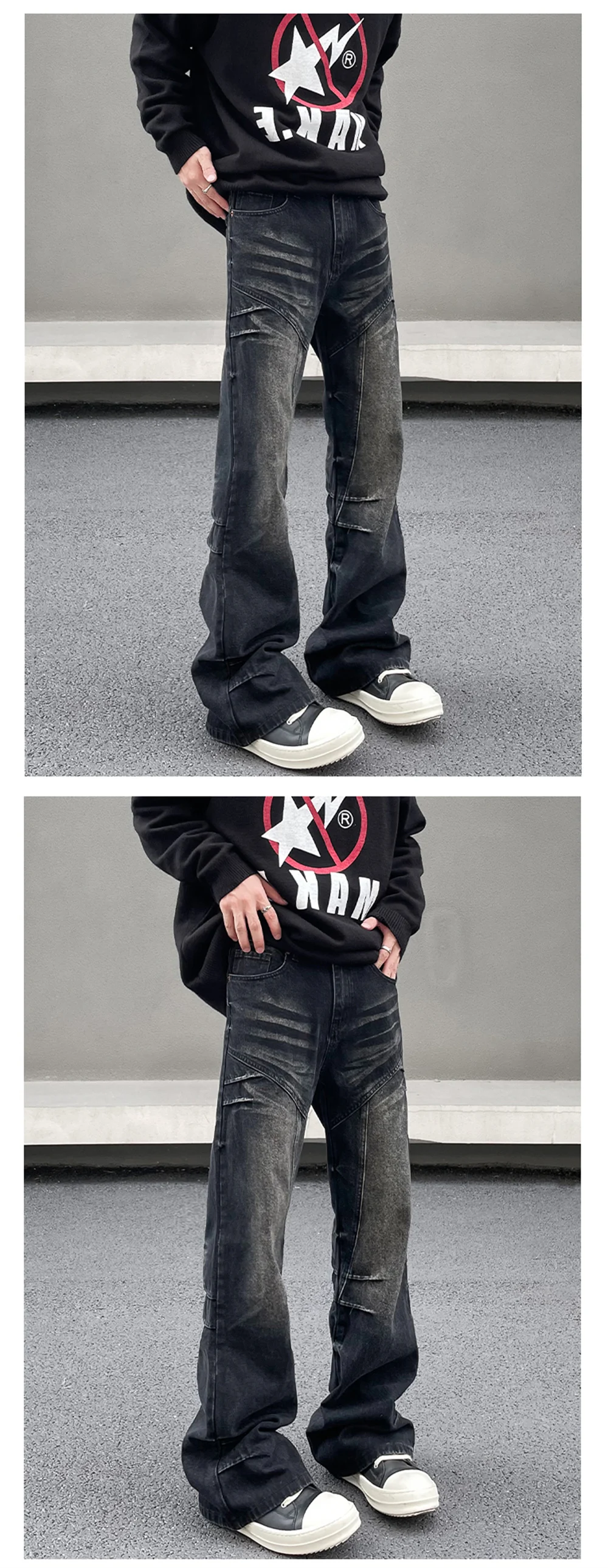 Hearujoy Flare Jeans Men Autumn Baggy High Street Casual Fashion Wide Leg Y2k Straight-leg Trousers Streetwear Winter Black Denim Pants