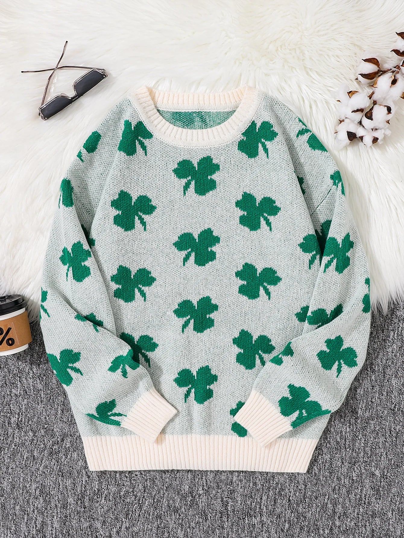 HEARUJOY - Four-Leaf Clover Jacquard Pattern Pullover Sweater Casual Round Neck Contrast Color Knitted Men's Pullover