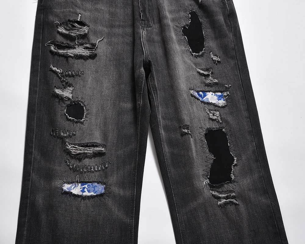 Hearujoy Frayed Hole Washed Pantalones Hombre Baggy Jeans Men's Straight Hip Hop Casual Ropa Y2k Denim Pants Oversized Cargo Trousers