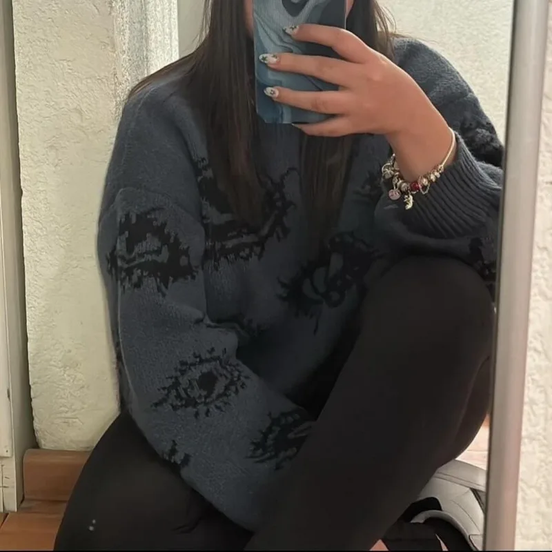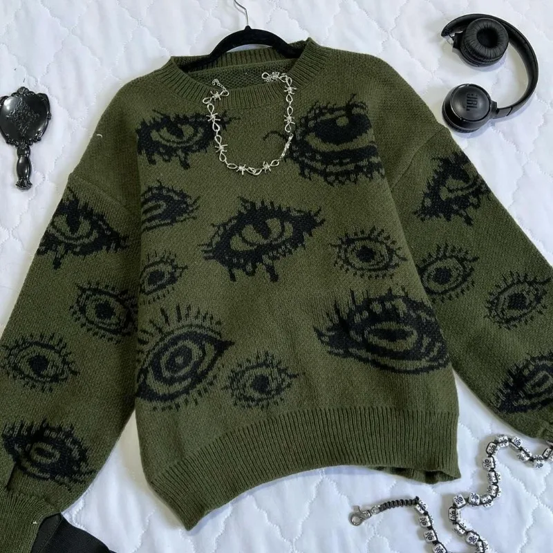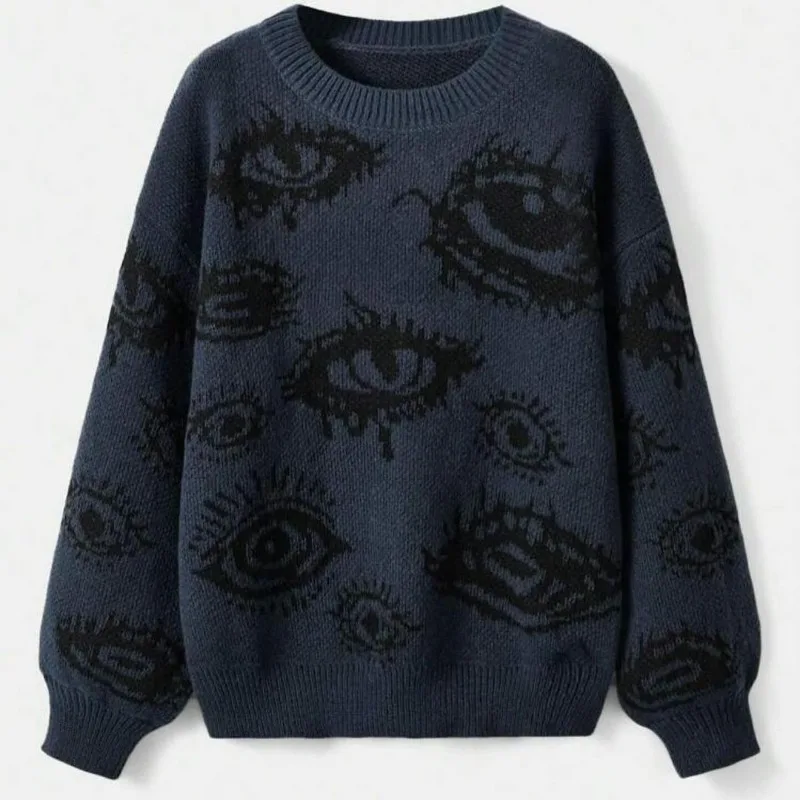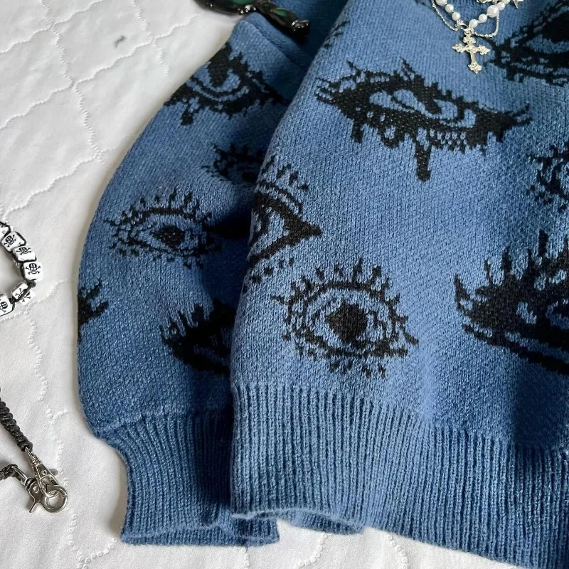 Hearujoy Gothic Punk Oversized Eye Pattern Sweaters for Men and Women Autumn and Winter Thickened Sweatshirts Knitted Sweater Streetwear