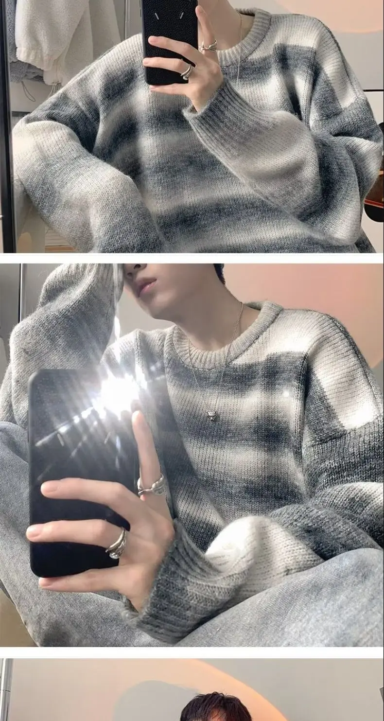 Hearujoy Gradient Sweater Men's Korean Version Trendy Loose and Lazy Style Line Jacket Cool and Versatile Round Neck Knitted Sweater
