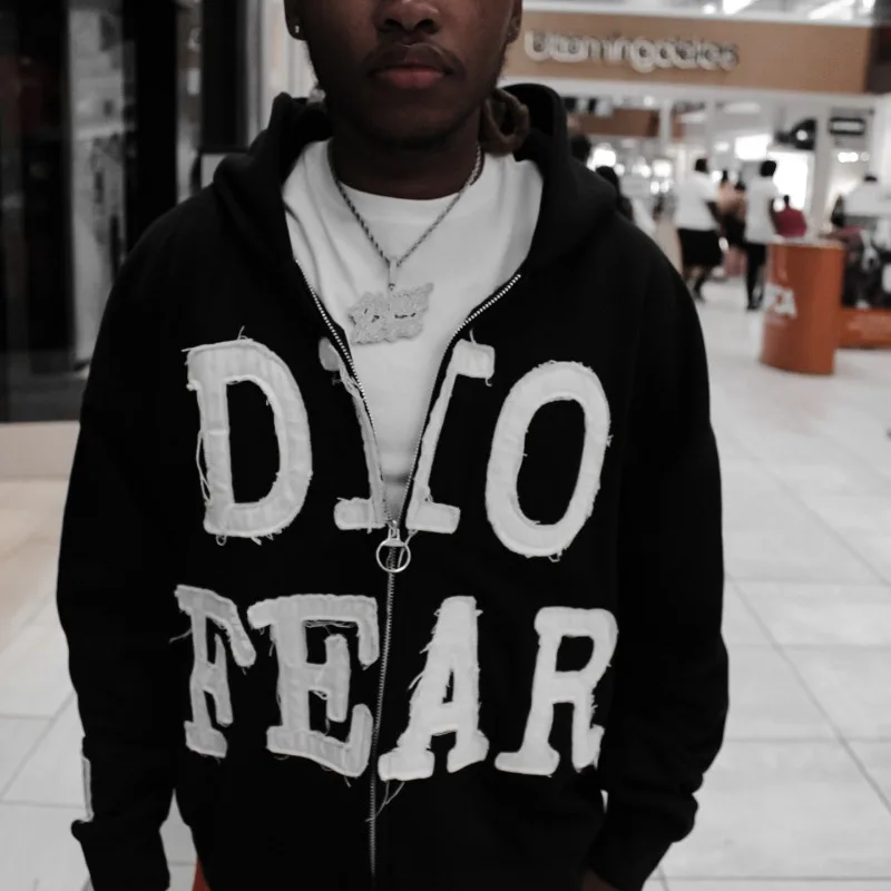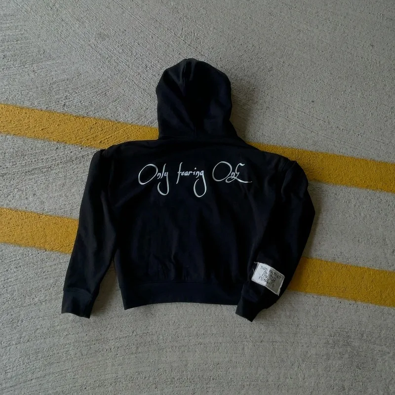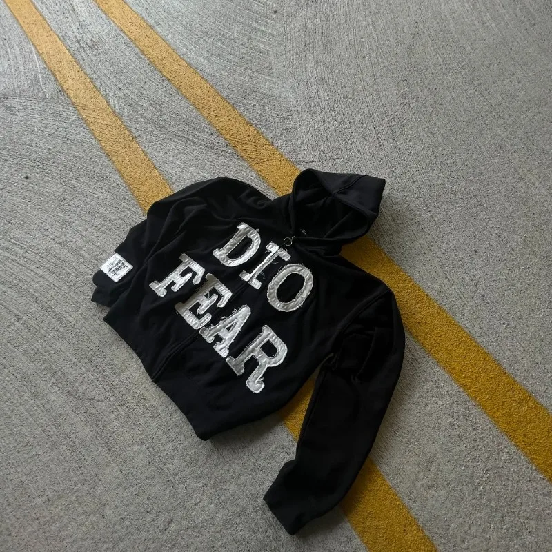 Hearujoy Harajuku American Vintage Alphabet Embroidery zipper hoodie Hip Hop fashion Street Y2K Men casual black oversized sweatshirt