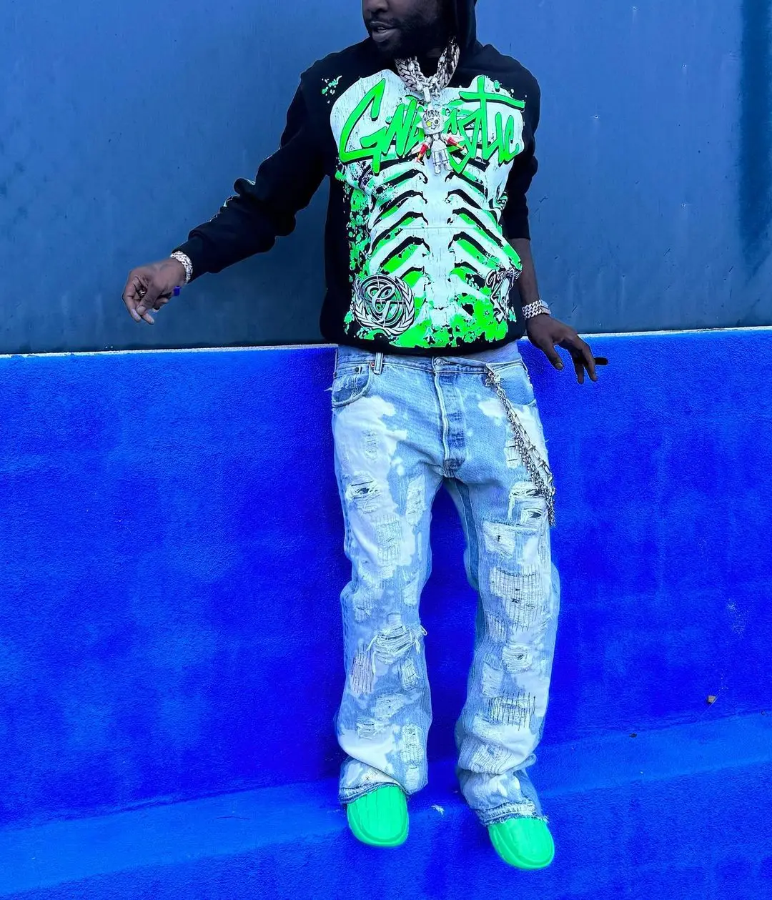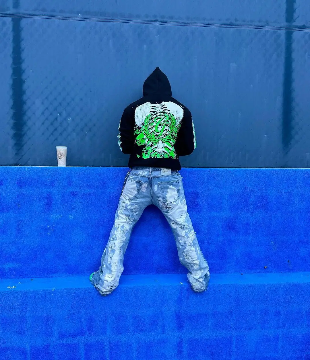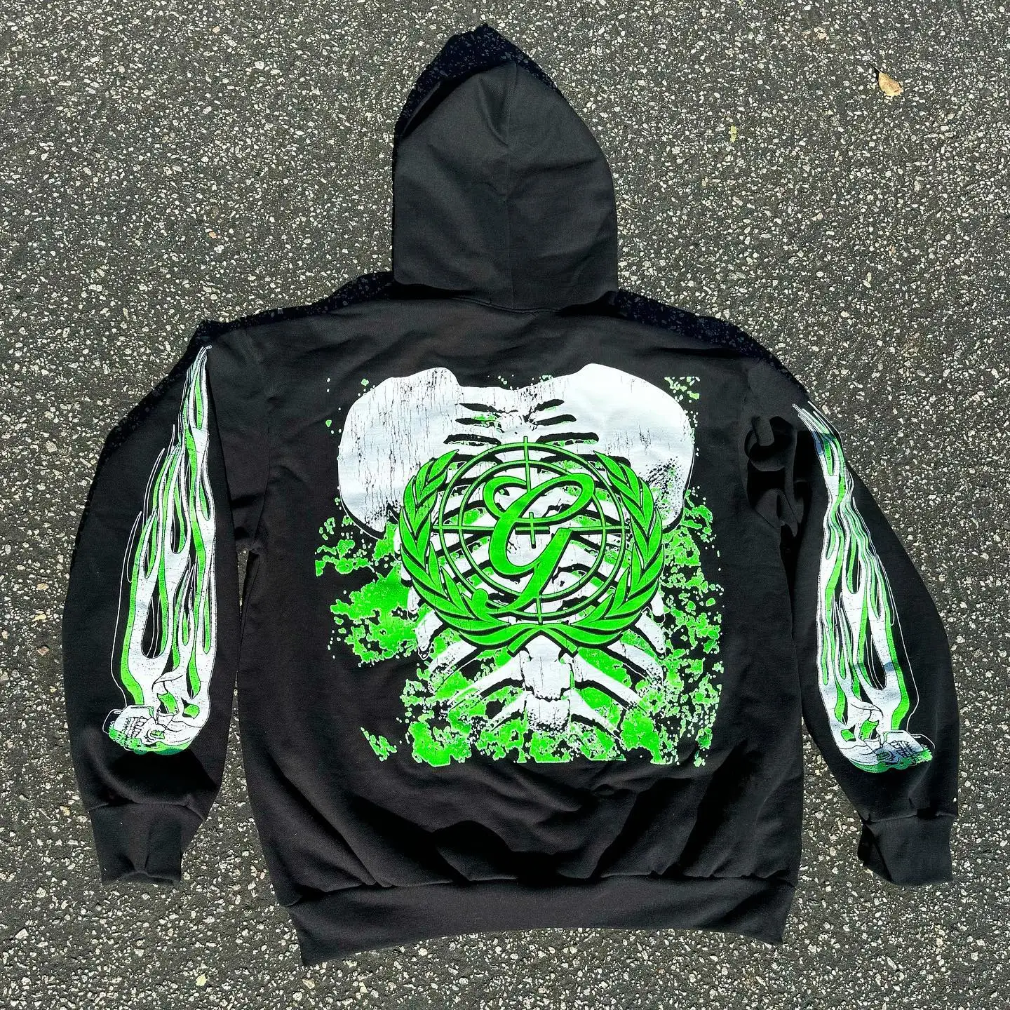 Hearujoy Harajuku Green Punk Ribs Painting Printed Sweatshirt Oversized Tracksuit Men Y2k Hoodies Women Streetwear Tops Men Clothing