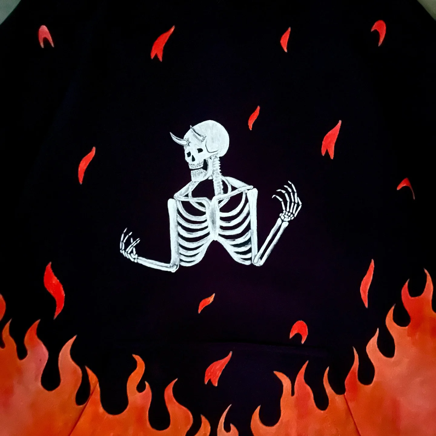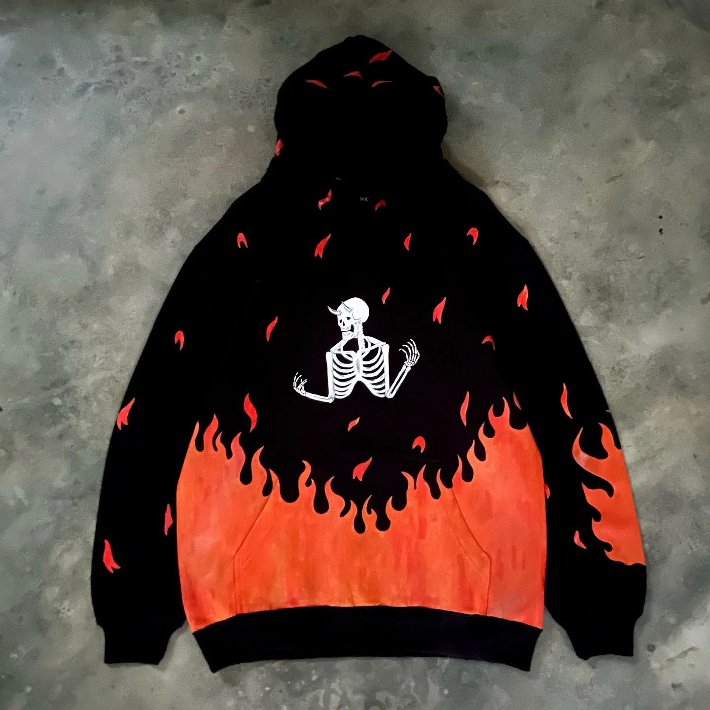 Hearujoy Harajuku Punk Style Fashion Hoodies Women Brand Flame Skulls Print Hoodie Digital Print Streetwear Clothing Sweatshirts Y2k Tops