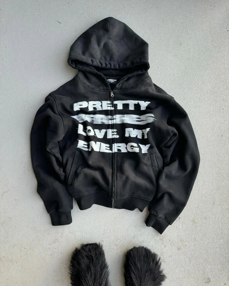 Hearujoy Harajuku Street Punk style Alphabet Print Coat Men Y2k Streetwear Jacket Fashion loose zipper hoodie Hip Hop casual sweatshirt