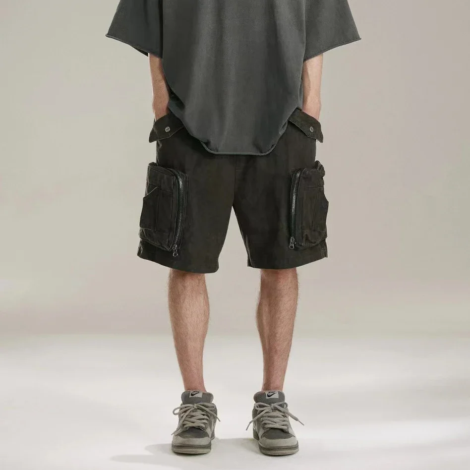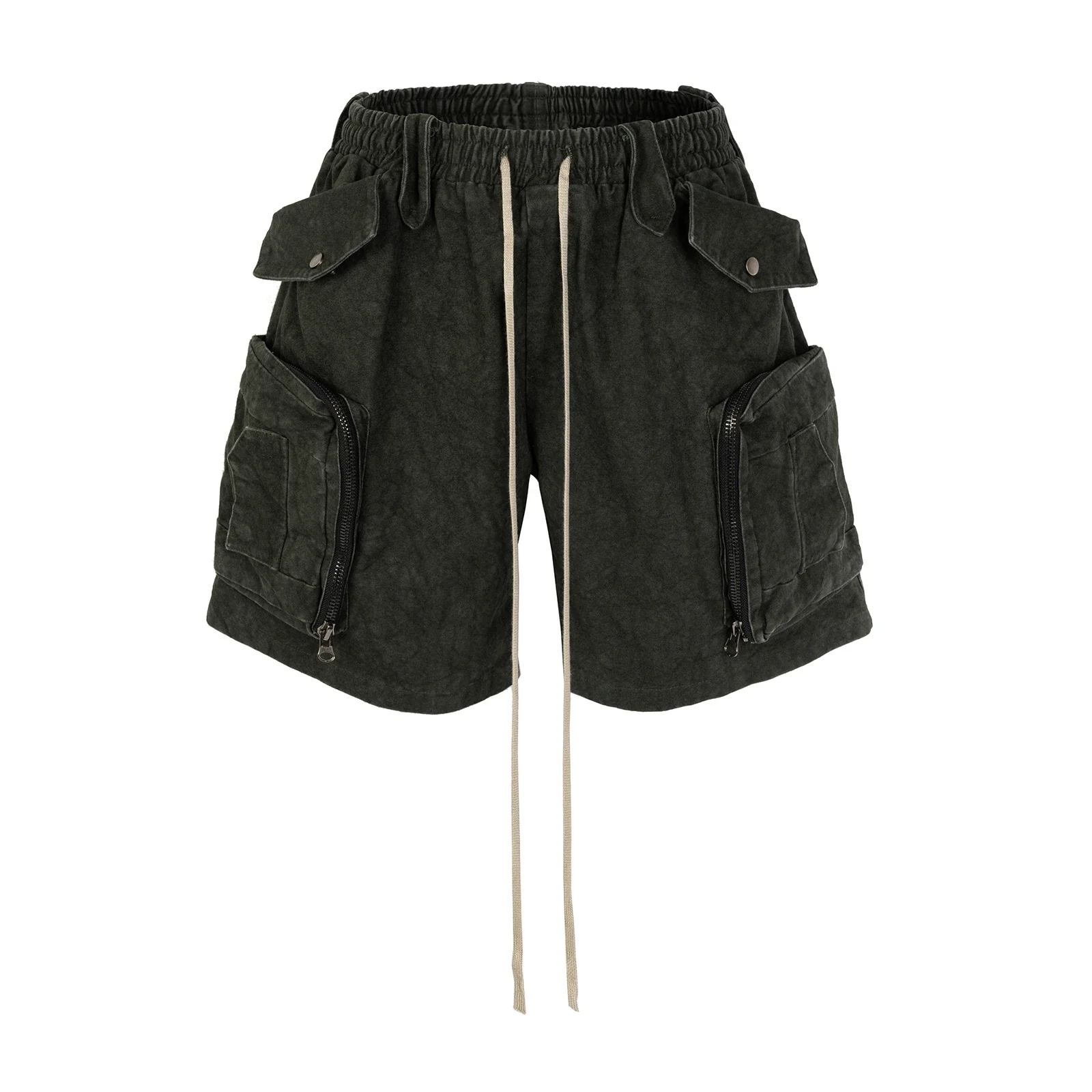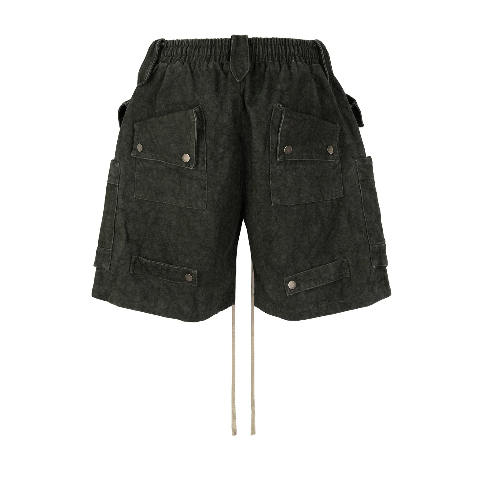 Hearujoy Heavy Industry Tie Dyed Canvas Washed Shell Shorts for Men and Women Wide Leg Baggy Cargo Short Oversize Loose Knee Length Pants