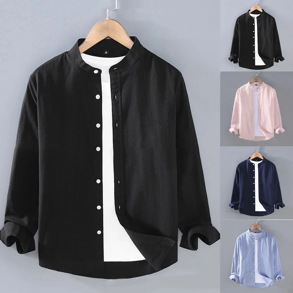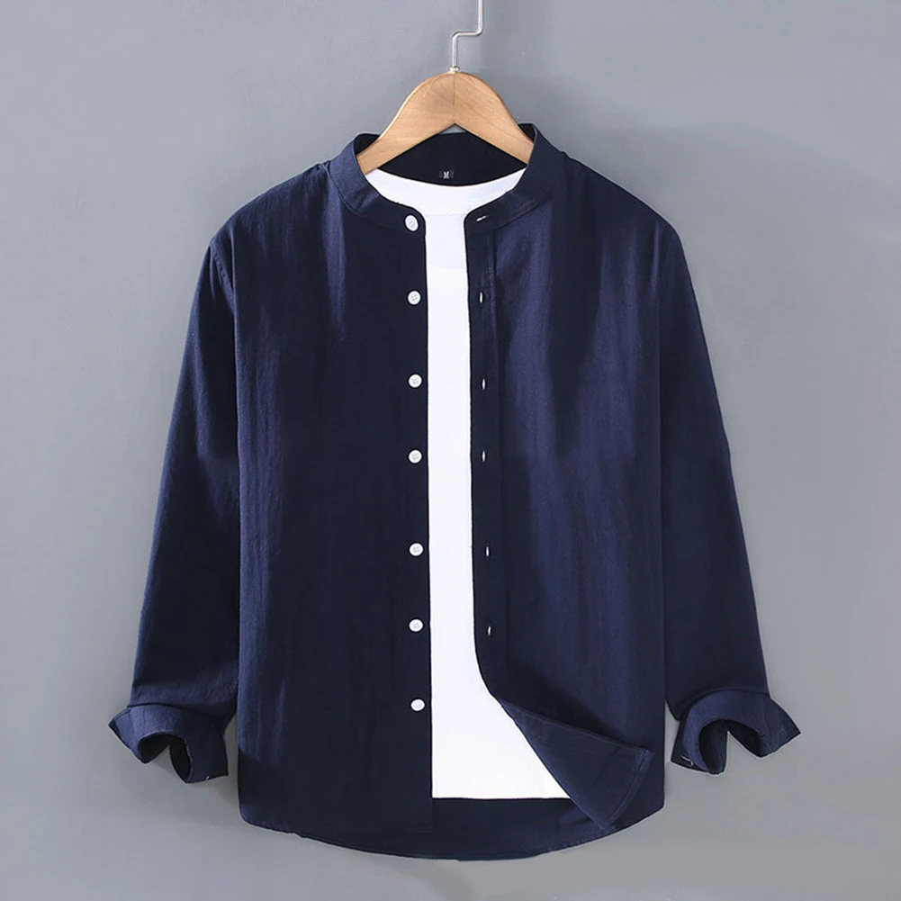 HEARUJOY - High Quality Hot Sale Comfortable Holiday Vacation Daily Men Shirt Tops Stand Collar Summer Autumn Long Sleeve