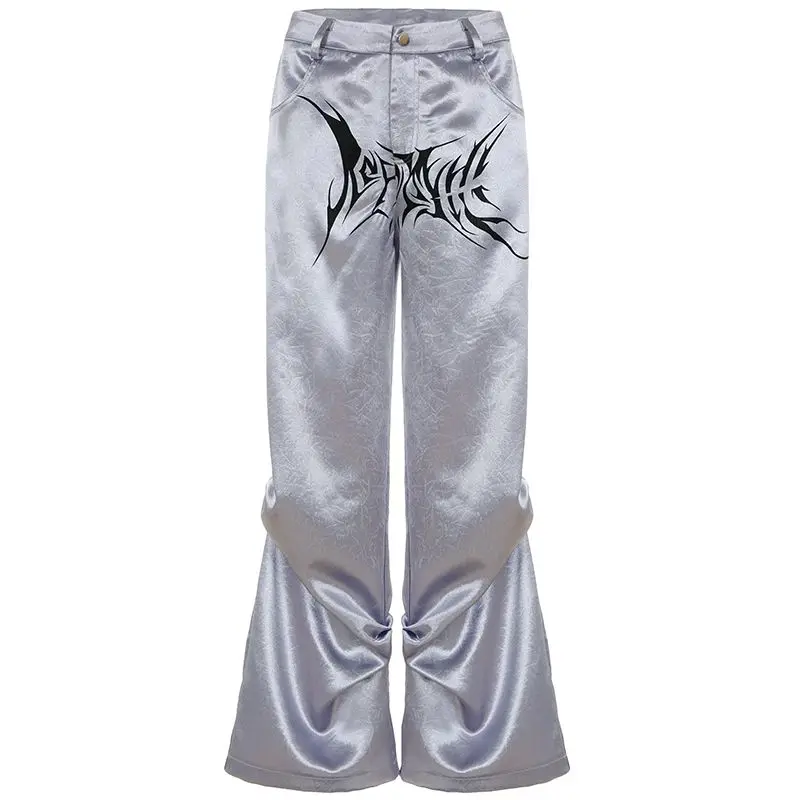 Hearujoy High Street Babes Silver Satin Print Casual Loose Cargo Pants Women Hip Hop Goth Joggers Women Straight Wide Leg Sweatpants
