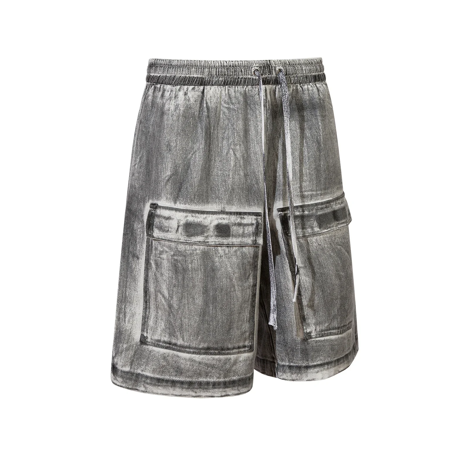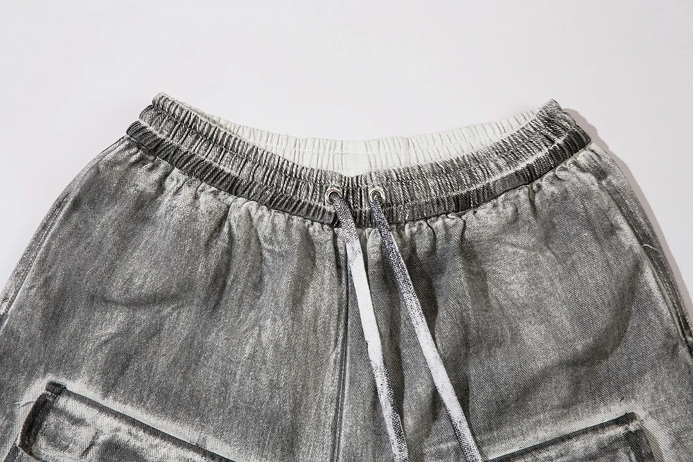 Hearujoy High Street Front Pockets Graffiti Painted Drawstring Cargo Shorts for Men and Women Straight Baggy Casual Five Point Pants