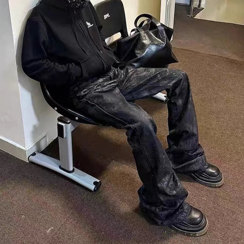 Hearujoy High Street Hand Brushed Glue Sparkling Baggy Flare Jeans for Men Y2k Pantalones Hombre Leather Pants Oversized Denim Trousers