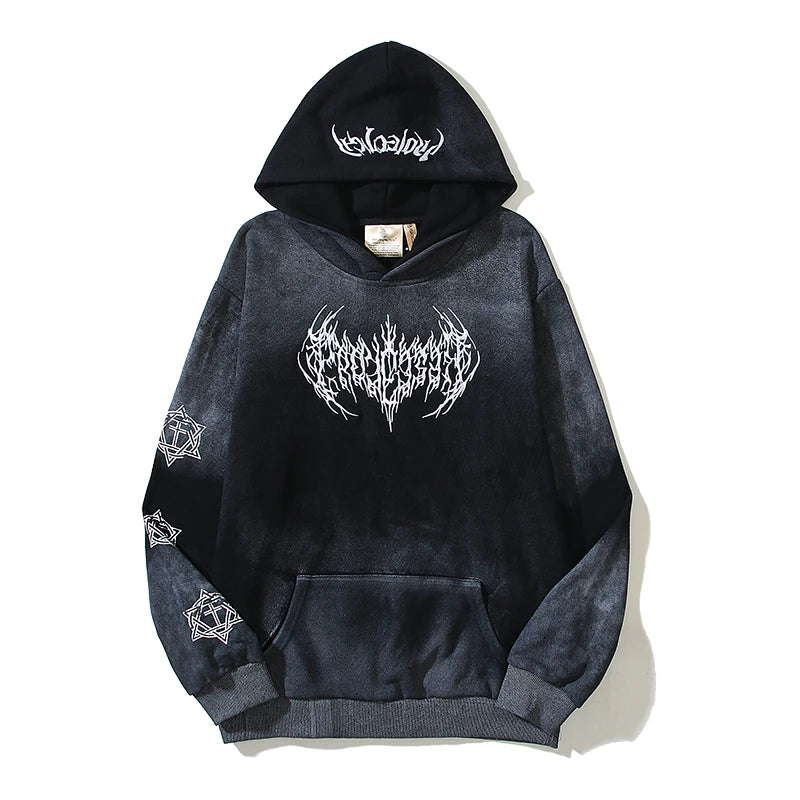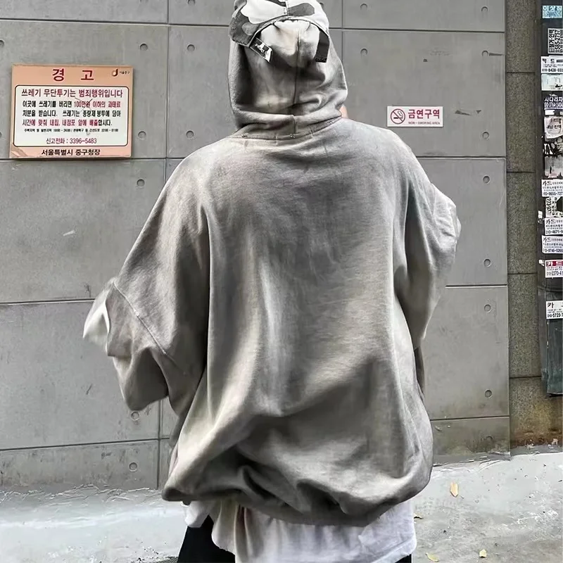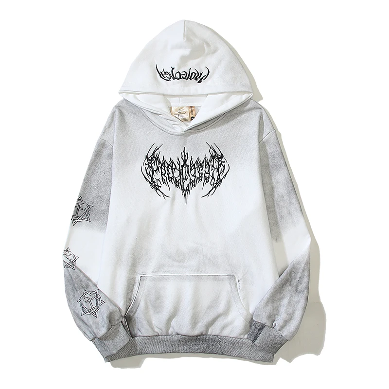 Hearujoy High Street Tie Dye Letter Embroidery Terry Hooded Hoodies for Men and Women Pullover Distressed Baggy Casual Sweatshirts