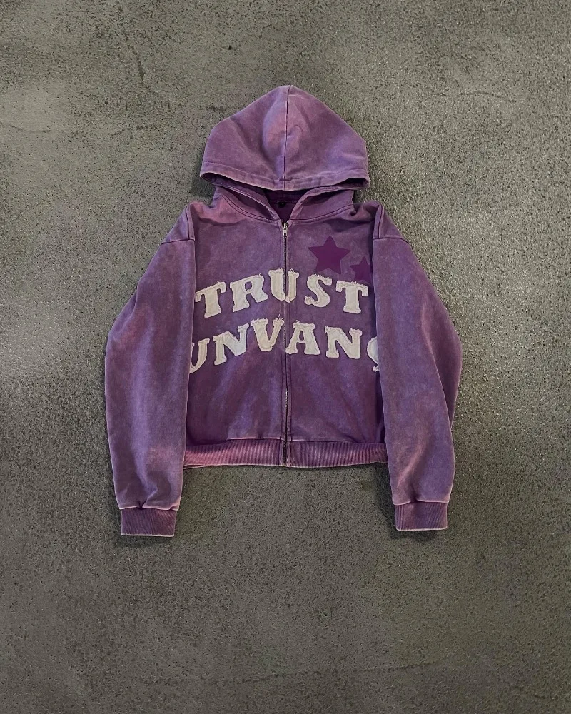Hearujoy Hip Hip Gothic Vintage Alphabet Embroidered Coat Jacket Streetwear Men Y2k zipper hoodie Harajuku trend oversized sweatshirt