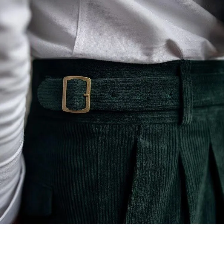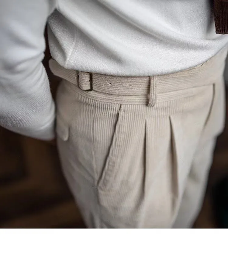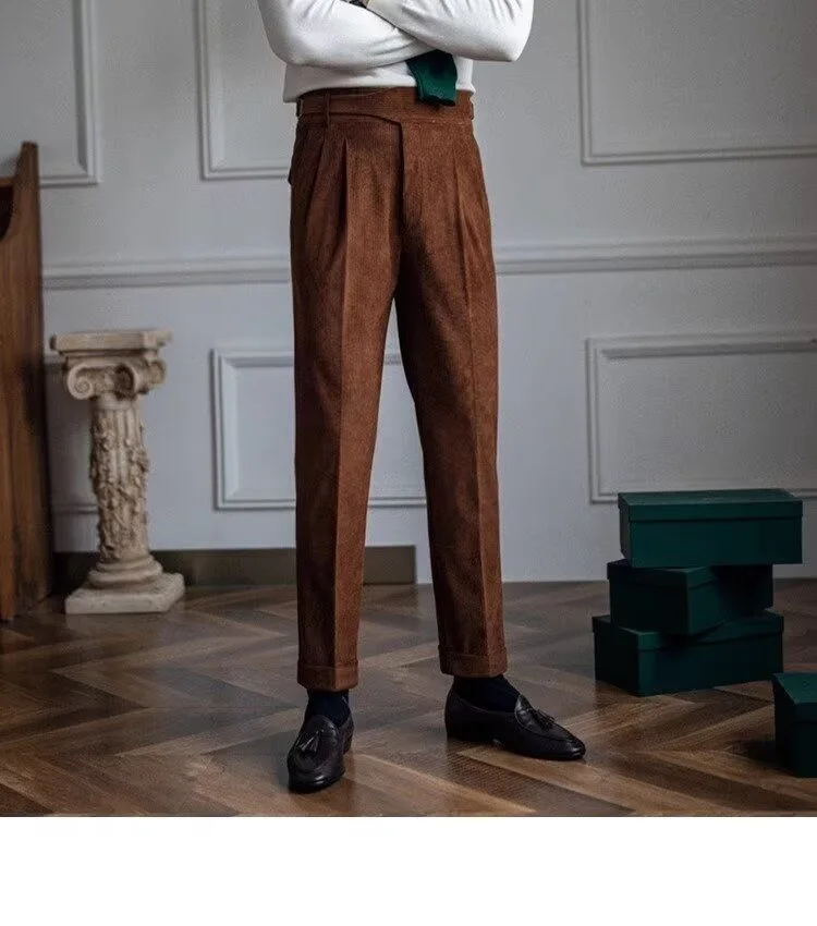 HEARUJOY - Italian Style Corduroy Naples Suit Pants Men High-waisted Adjustable Belt Straight Trousers Autumn England Business Casual Pant